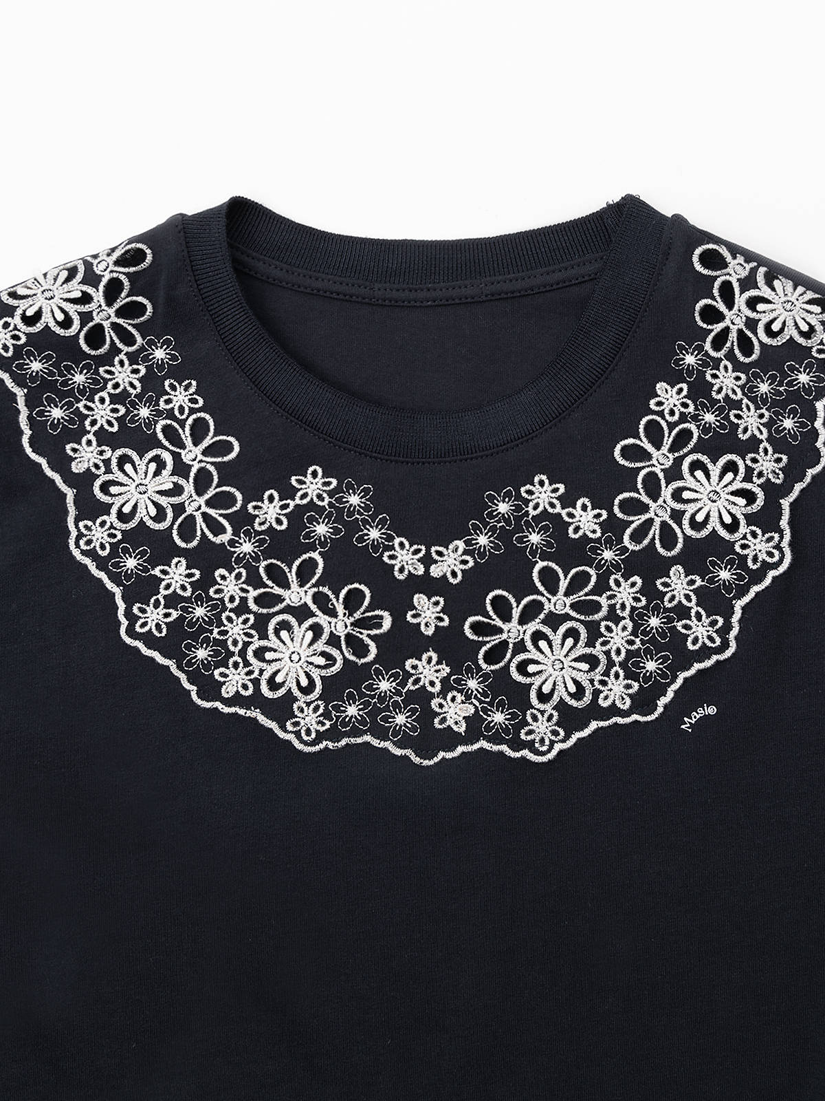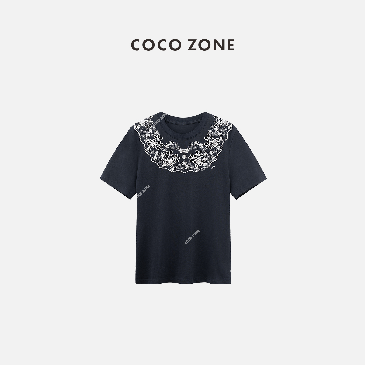 COCO ZONE2024刺绣镂空设计短袖T恤百搭通勤圆领上衣CC2A0413