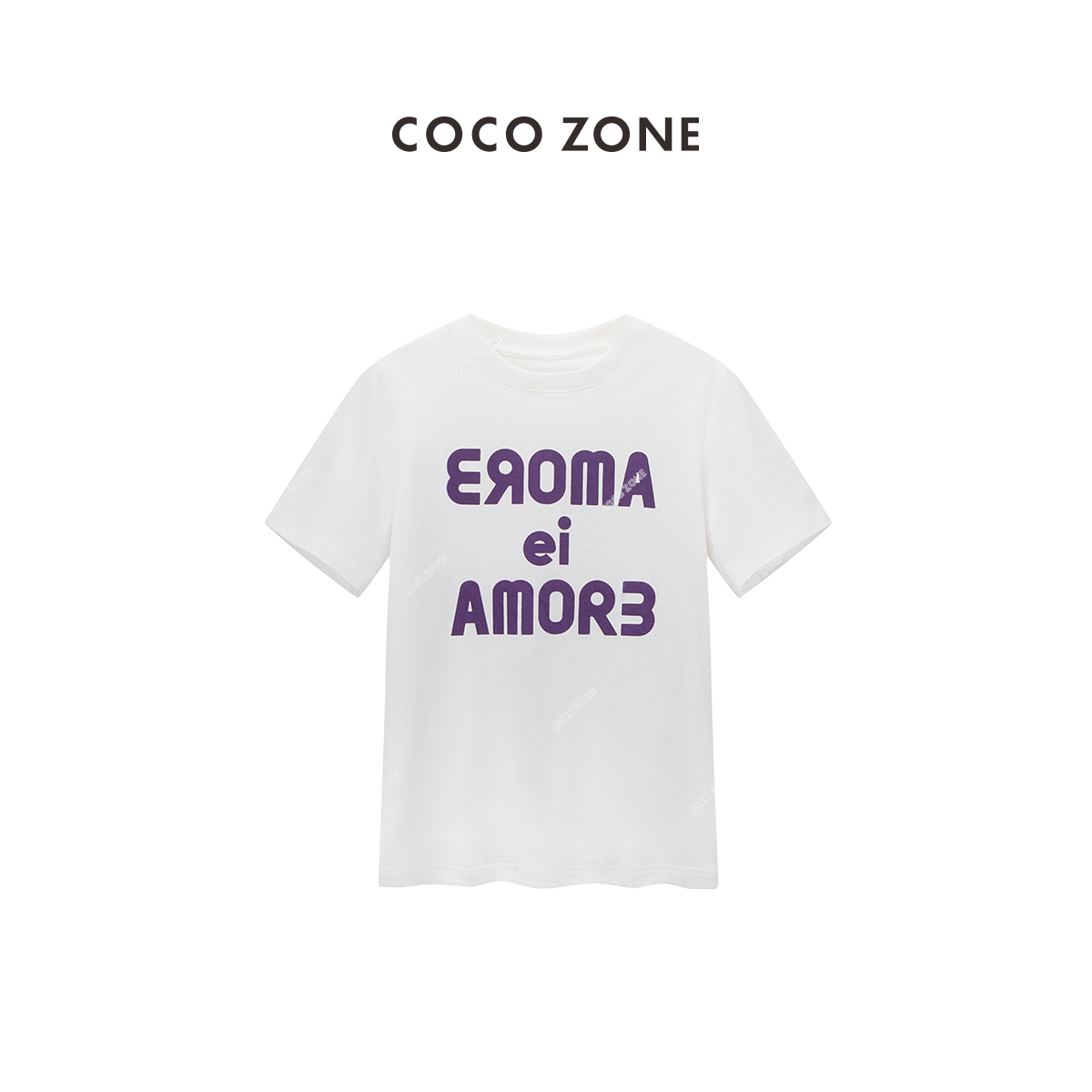 COCO ZONE2024"A米T"夏季字母印花短袖T恤时尚圆领百搭上衣CC2B0756
