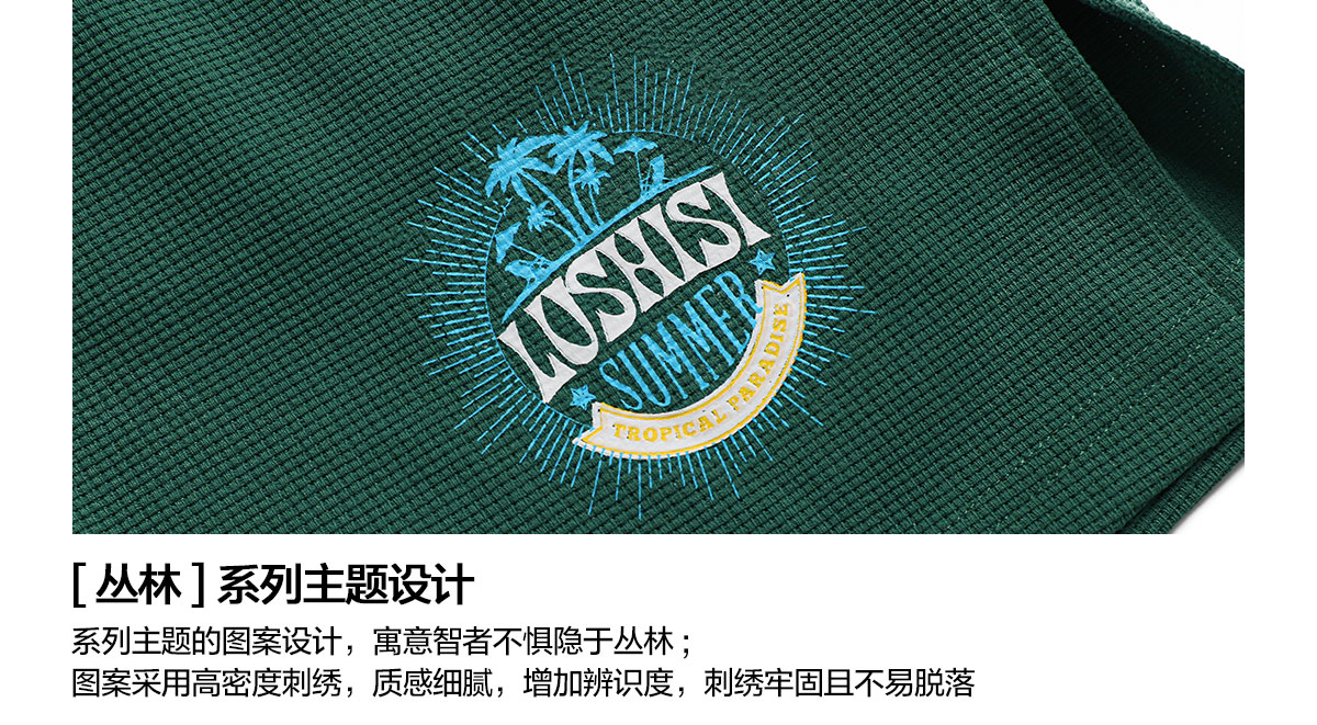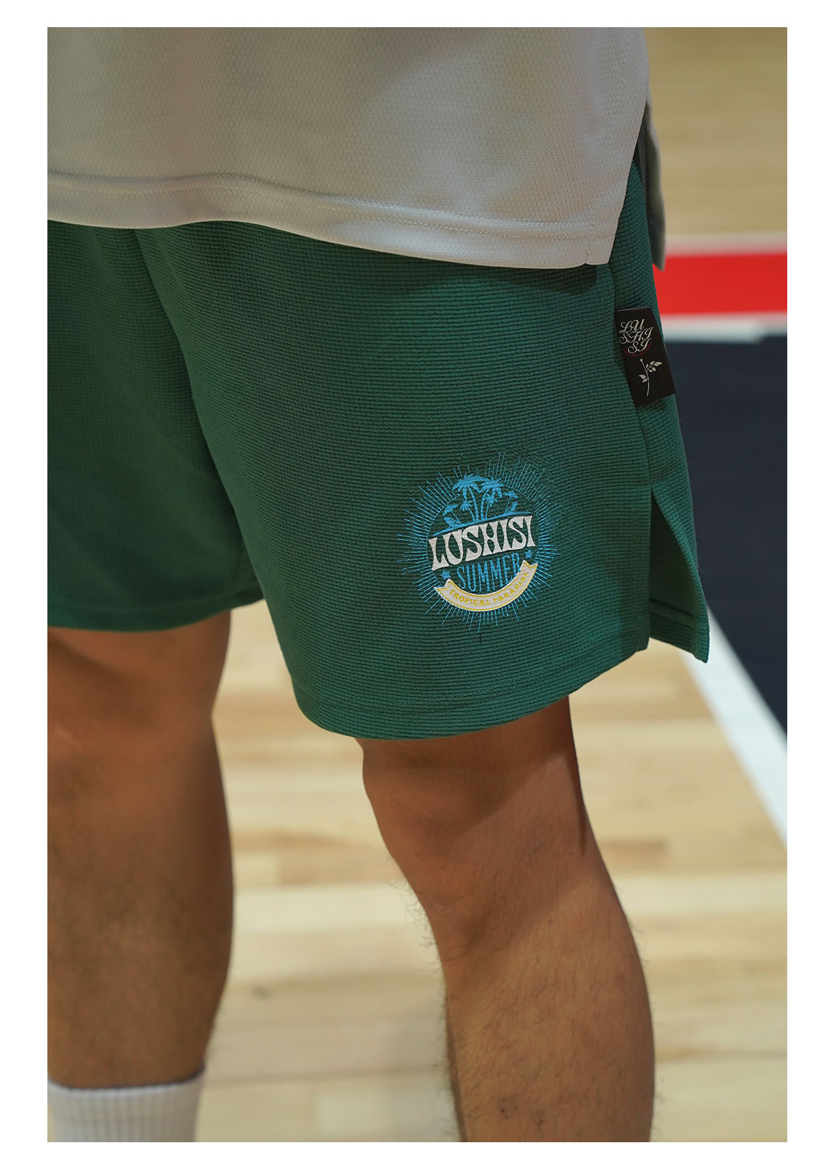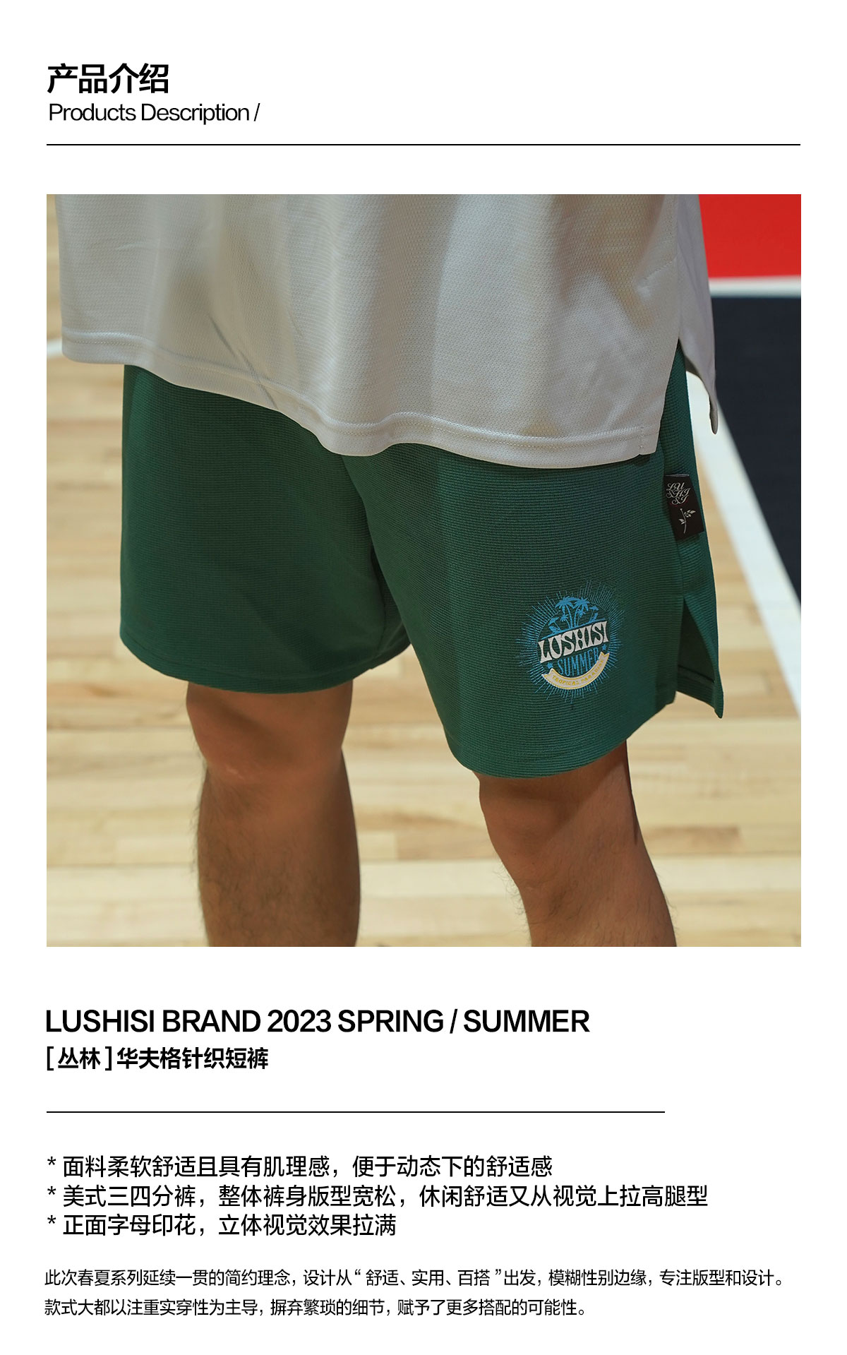LUSHISI美式休闲宽松运动华夫格短裤男夏季篮球休闲四分裤[丛林]