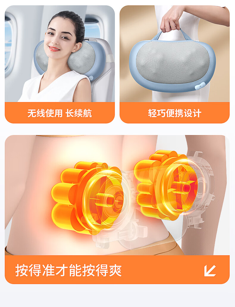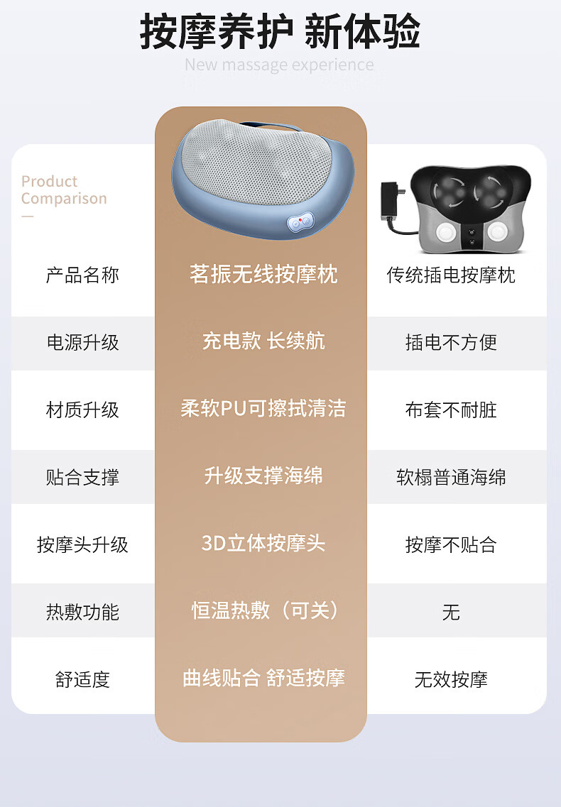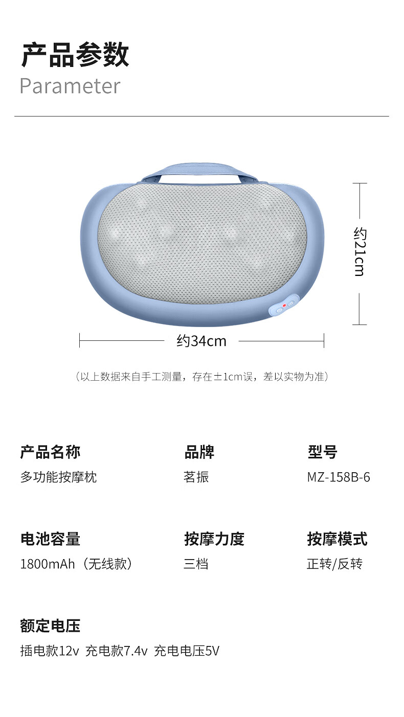 茗振按摩枕按摩器充电款【天蓝色-充电款】MZ-158B-6