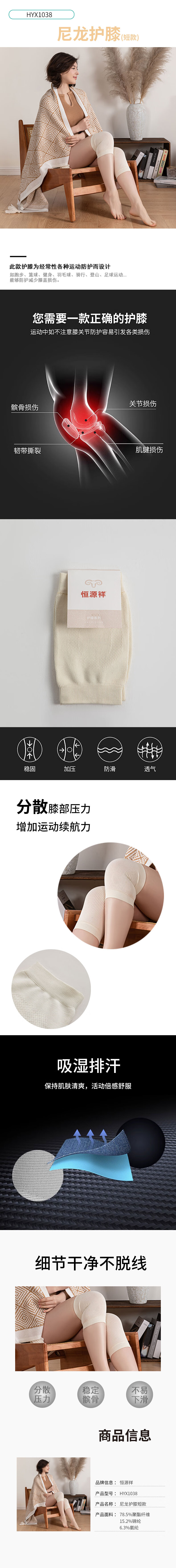 恒源祥 HYX1038 尼龙护膝短款 单位:对