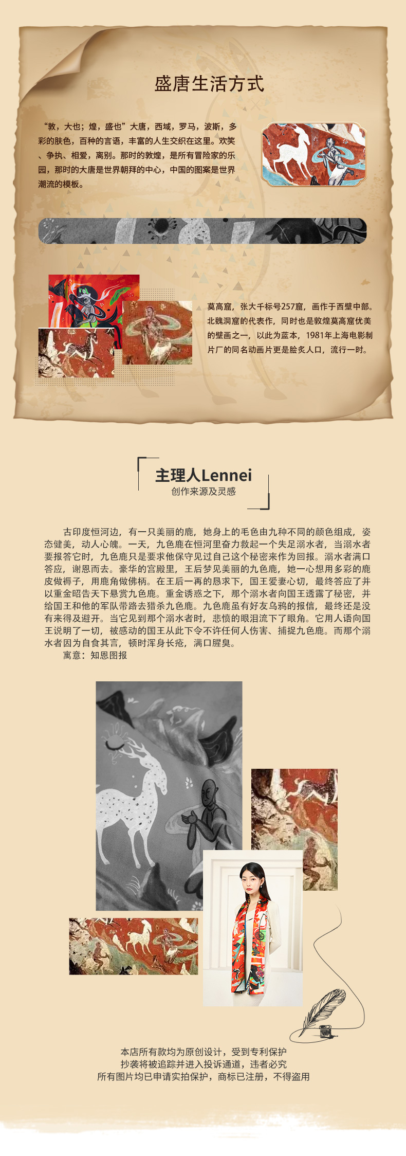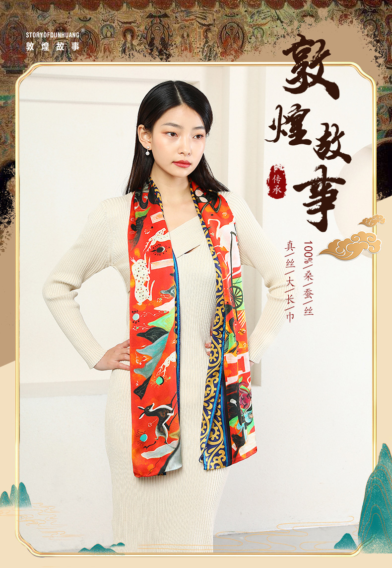 敦煌故事桑蚕丝春秋印花送礼中国风女丝巾