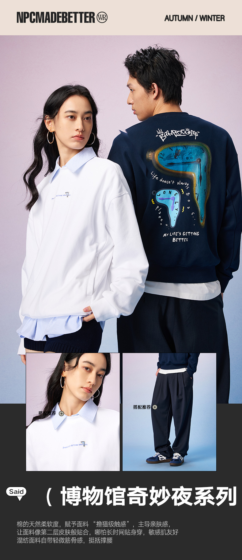NPC潮牌棉混纺印花圆领长袖卫衣男宽松秋季上新NP57ST46