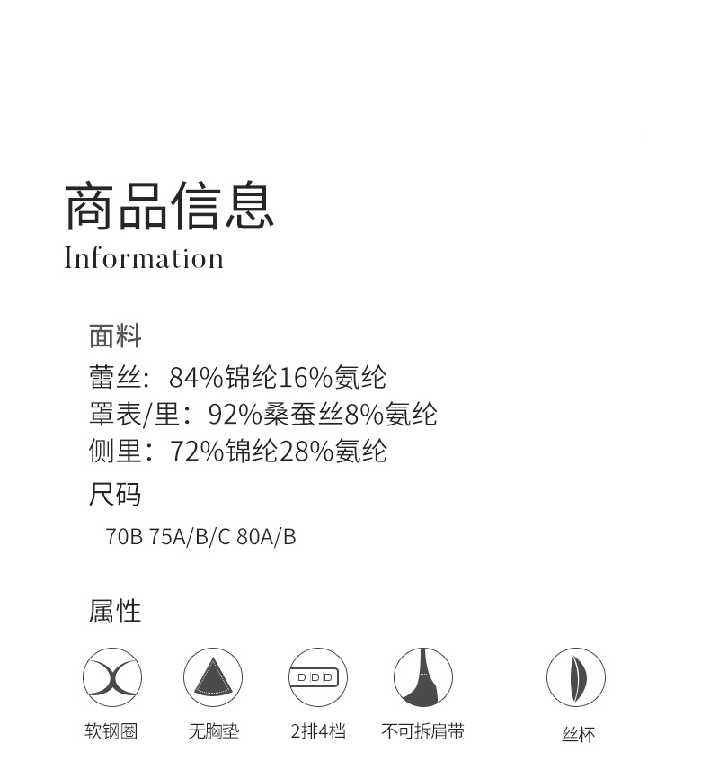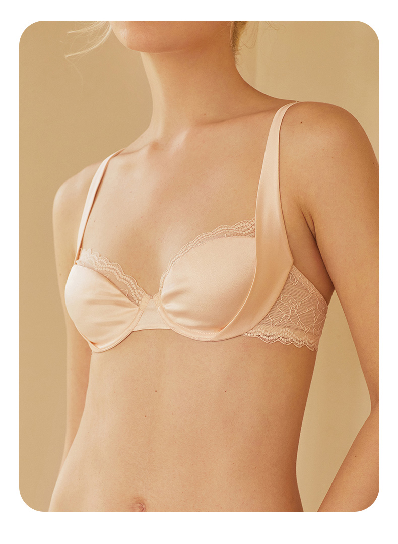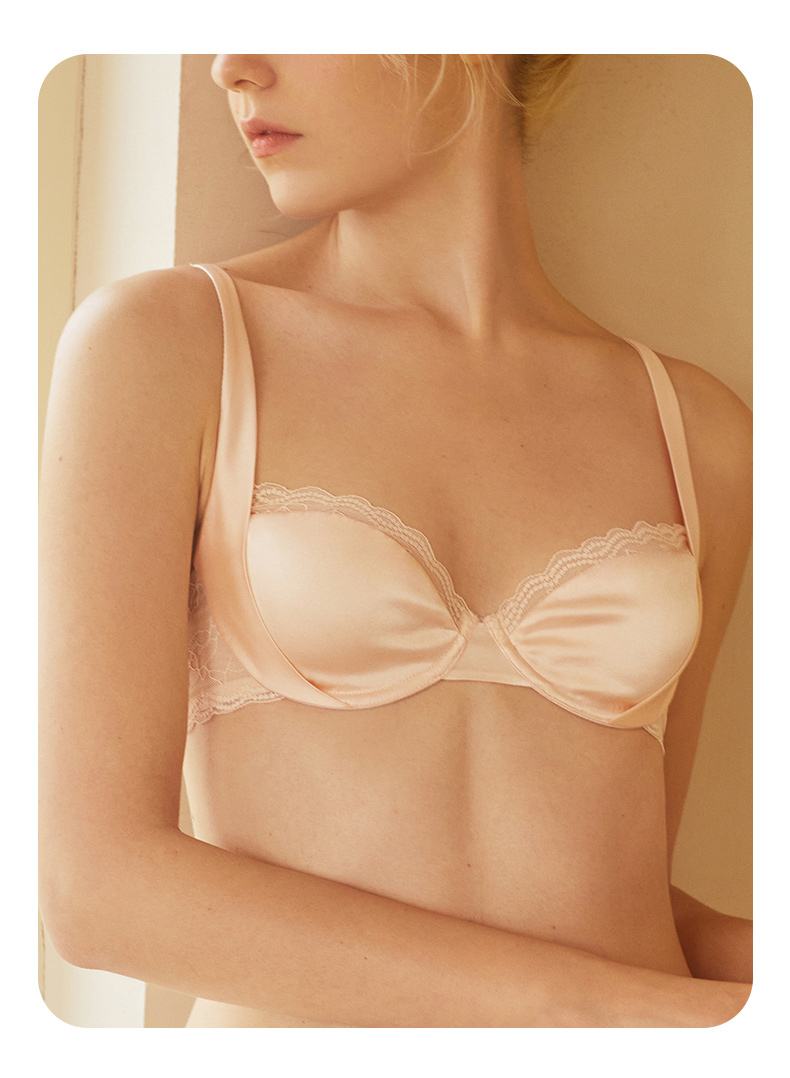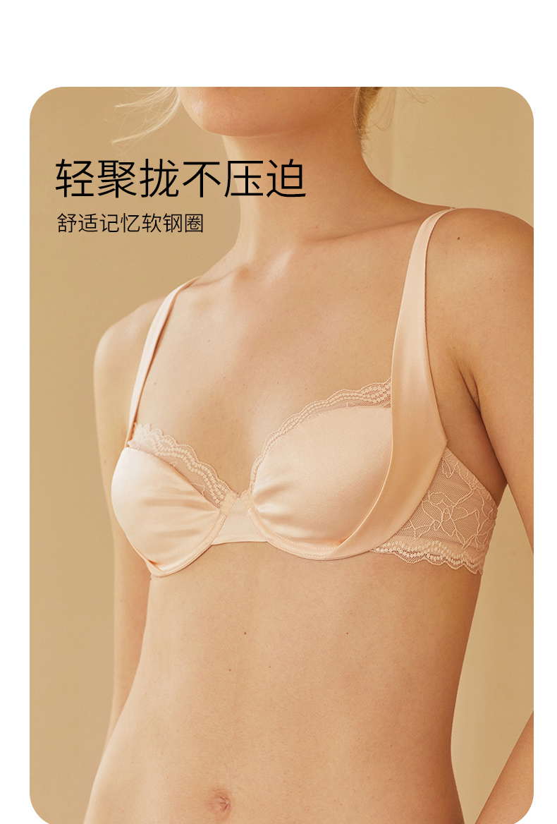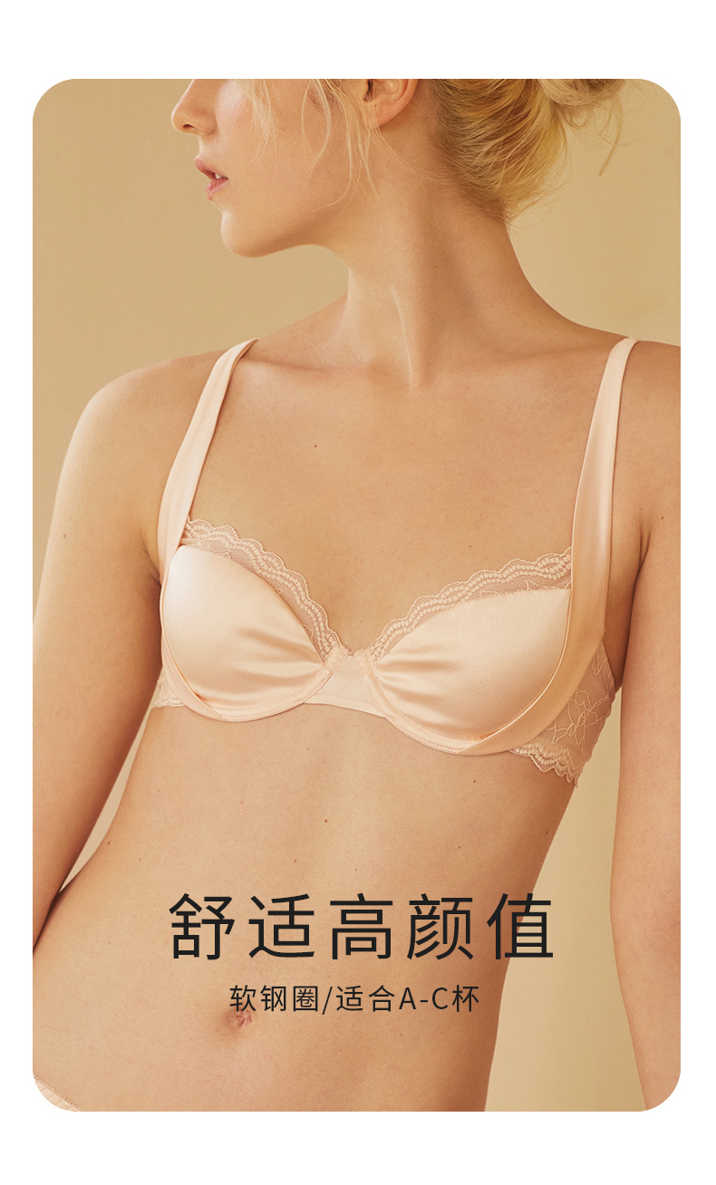 金三塔里外高弹桑蚕丝女绸缎软钢圈舒适包容聚拢承托文胸内衣新品 NZFDB399