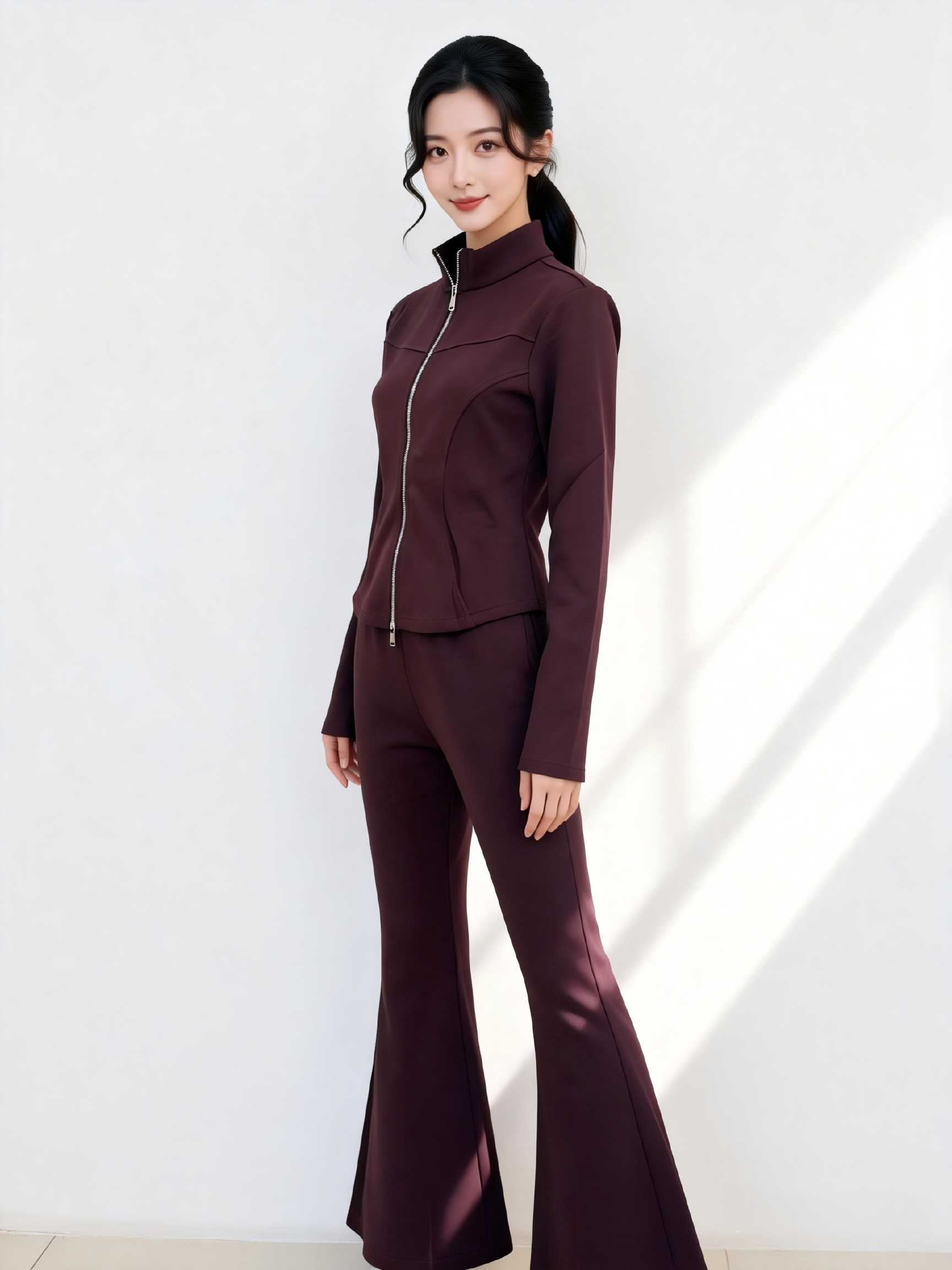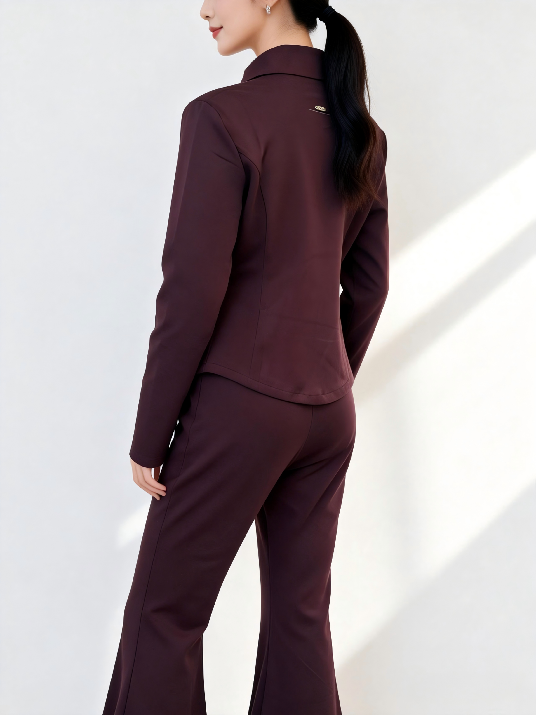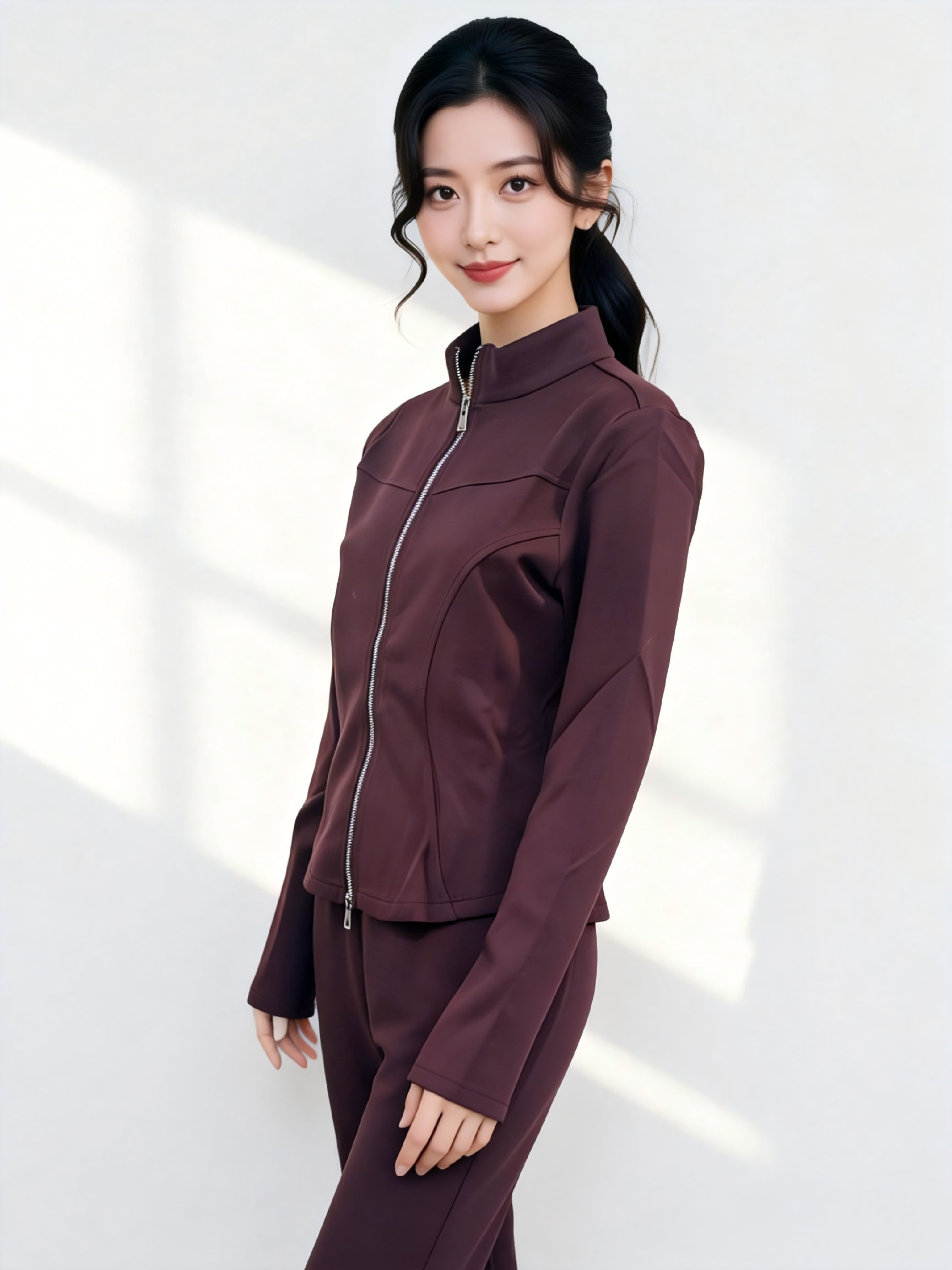 SC1AL01_紫檀色_外套_春季_立领拉链收腰修身长袖休闲_高级女装_BERNIEELEN 伯妮斯茵
