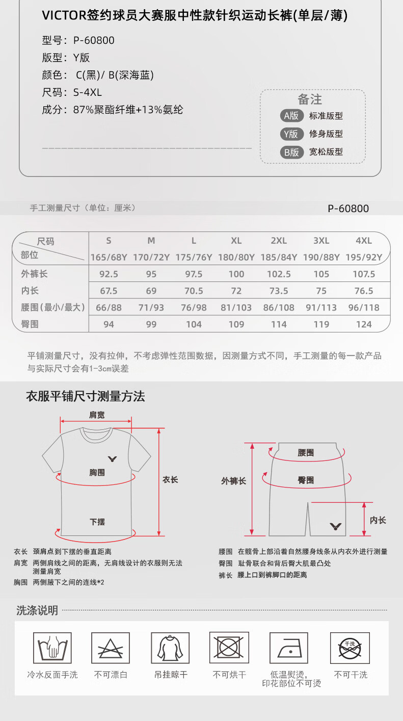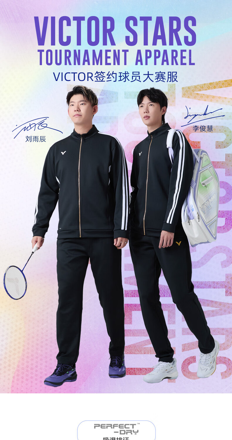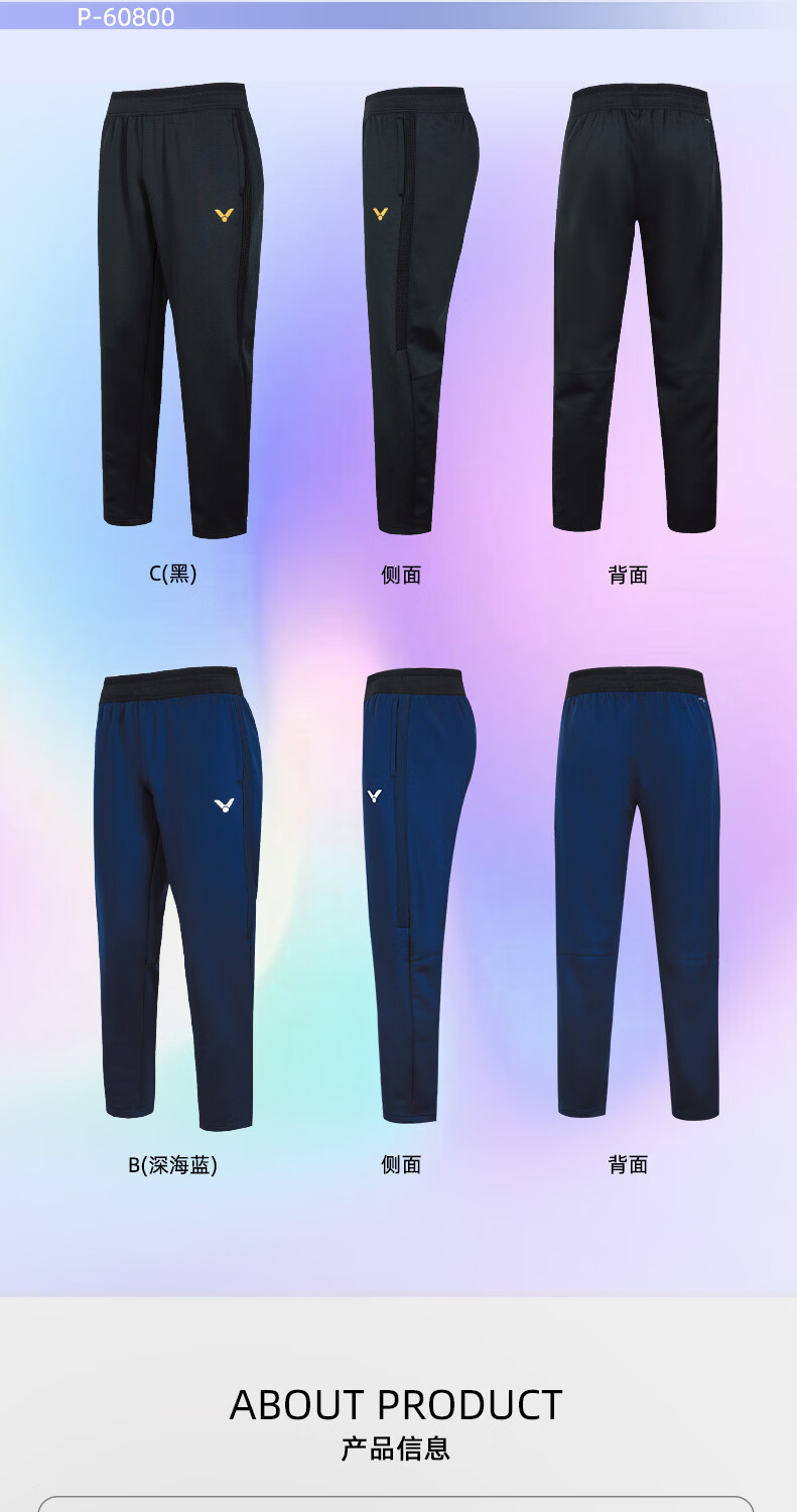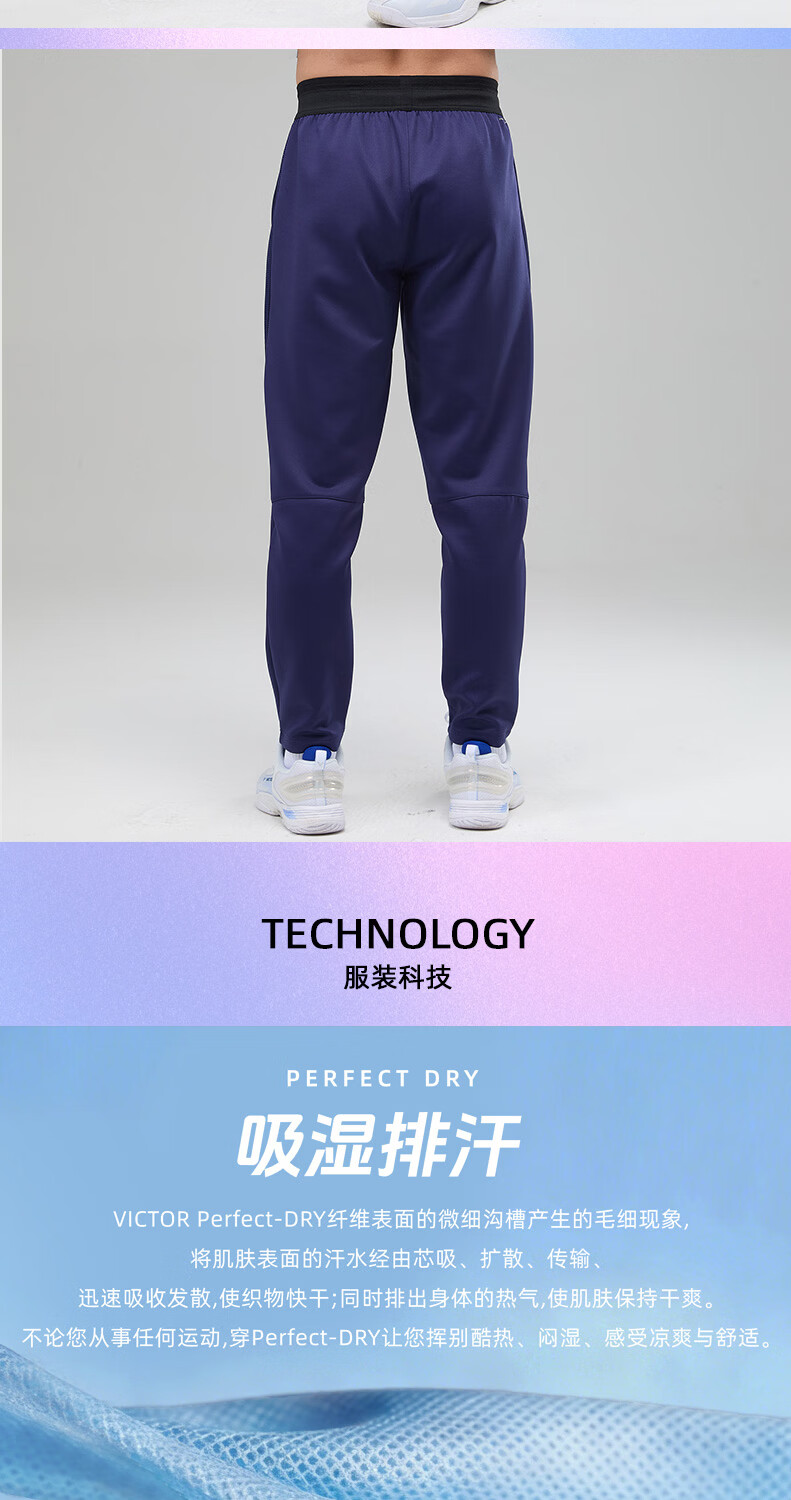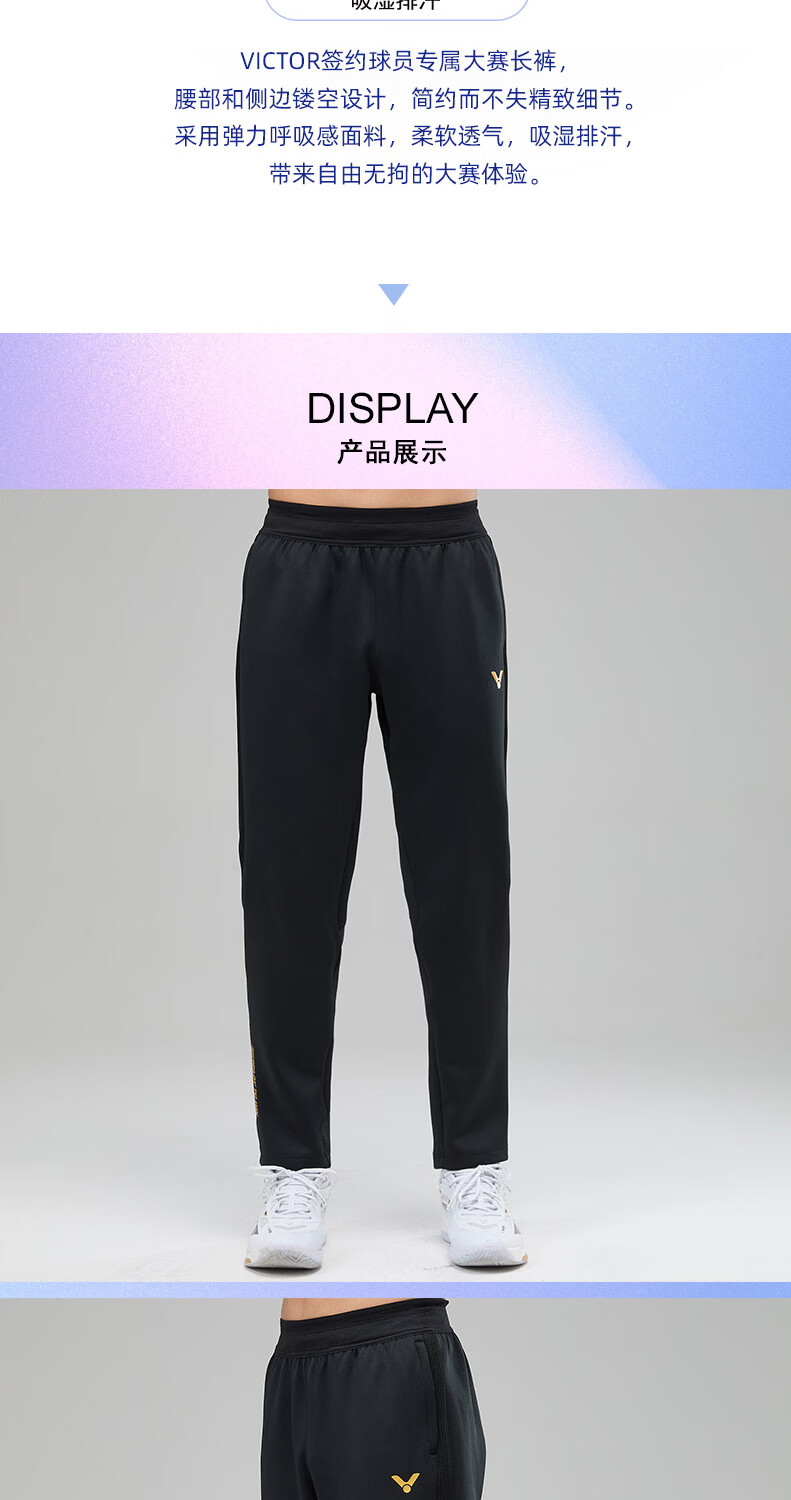 VICTOR威克多羽毛球服大赛款运动针织排汗长裤男女款P-60800裤子