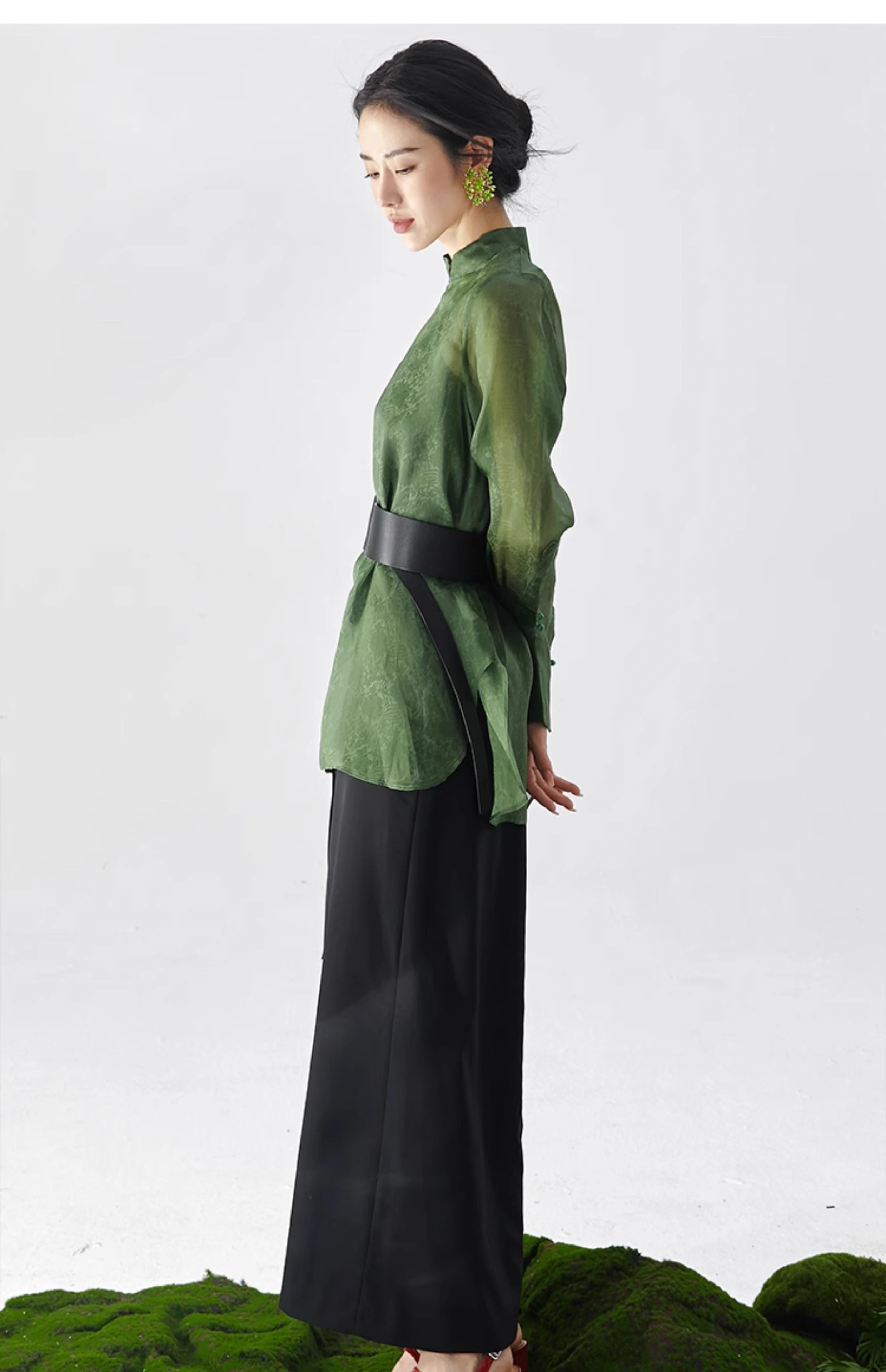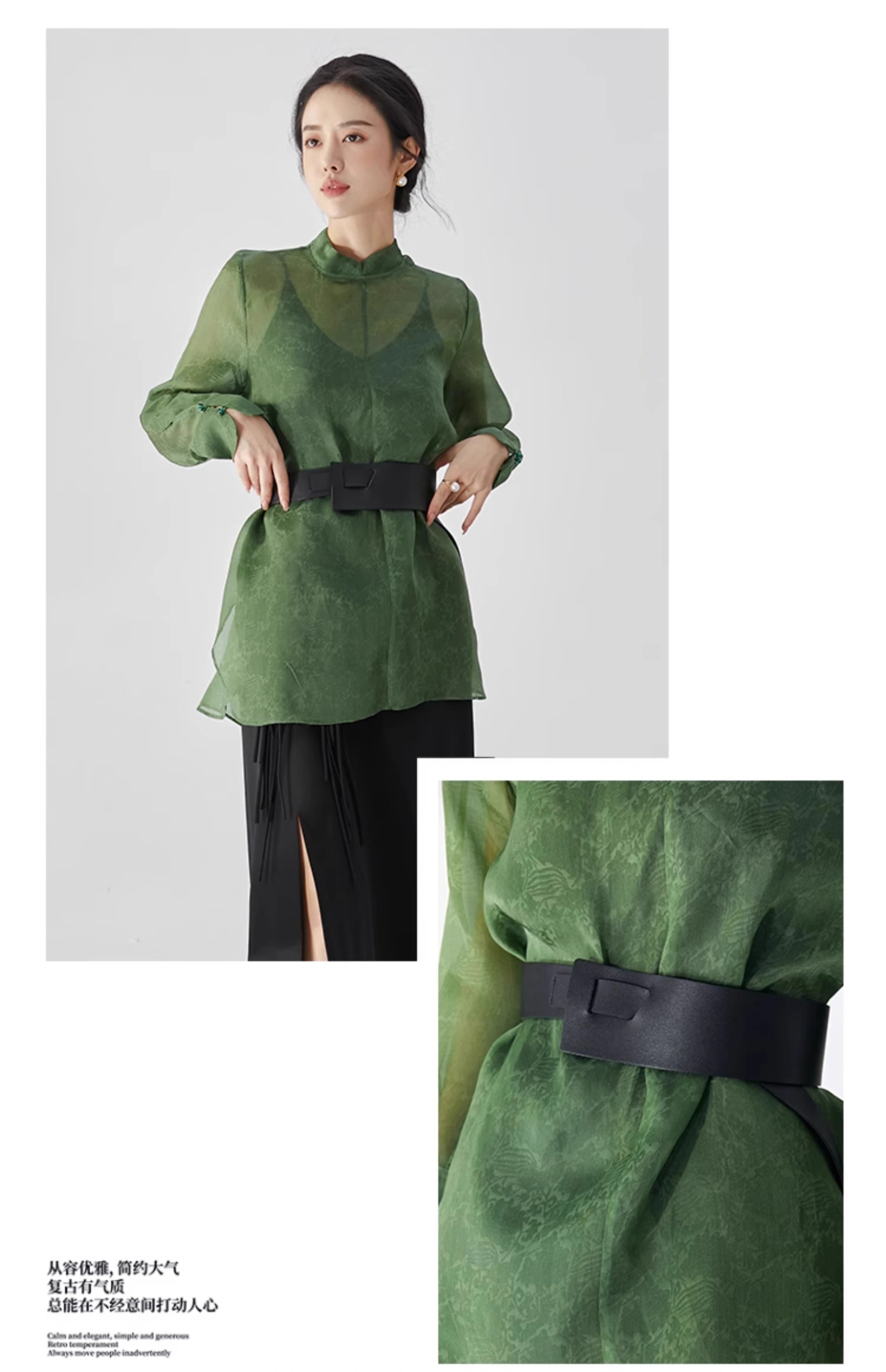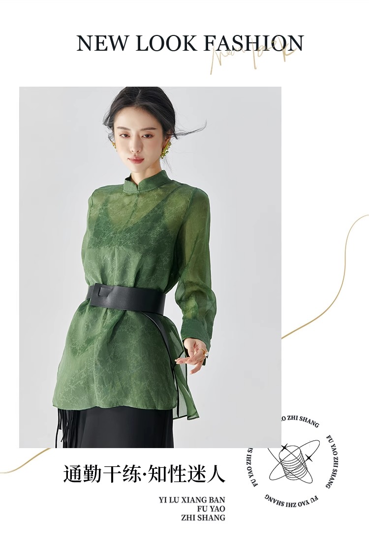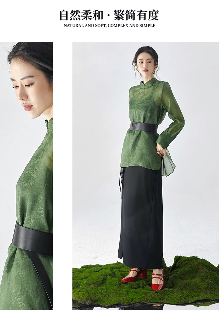 扶摇 独特小众新中式清冷绿古典纹样低调轻奢轻薄桑蚕丝衬衫