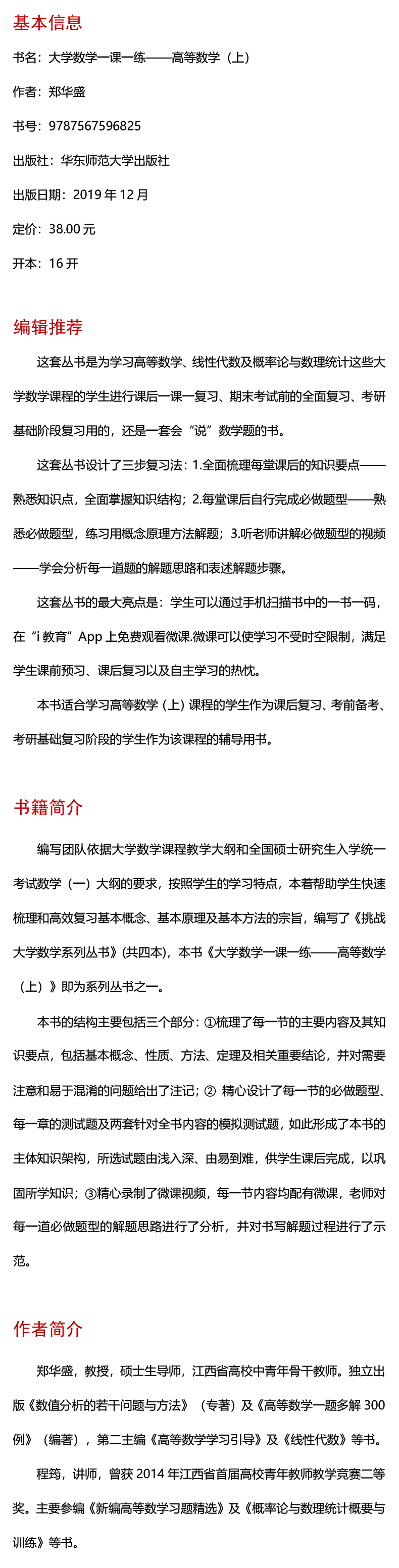 大学数学一课一练 高等数学上下 概率论与数理统计 线性代数 四册套装 挑战大学数学系列丛书 赠微课视频 正版 华东师范大学出版社