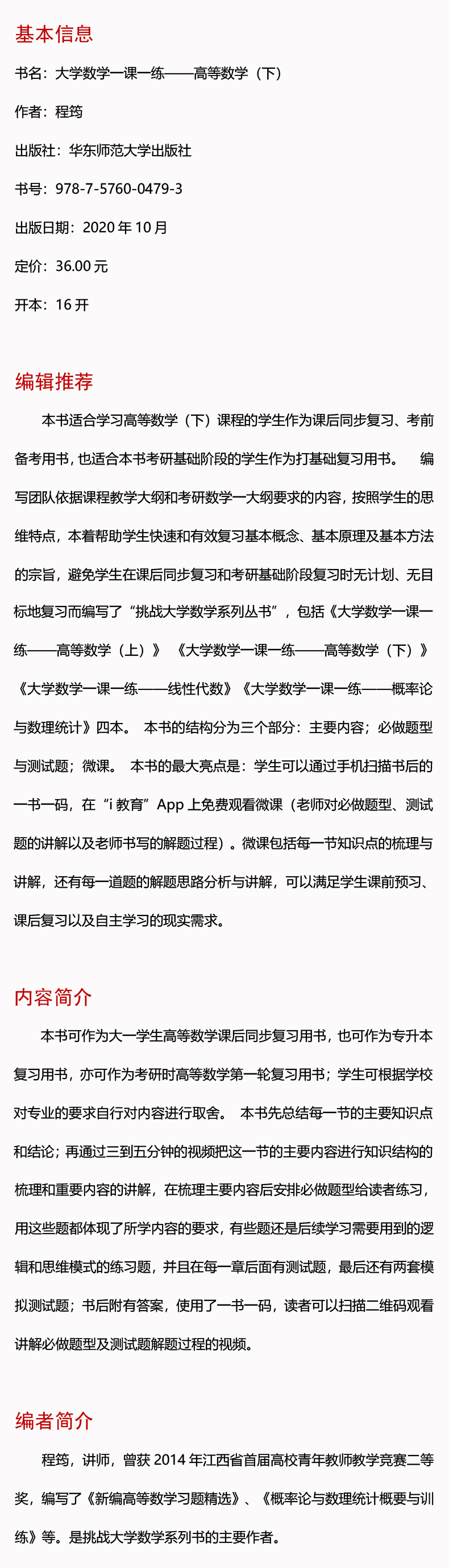 书名:大学数学一课一练 高等数学上下2册+概率论与数理统计+线性代数