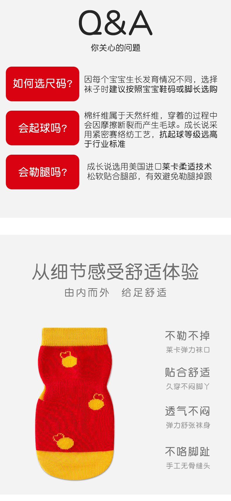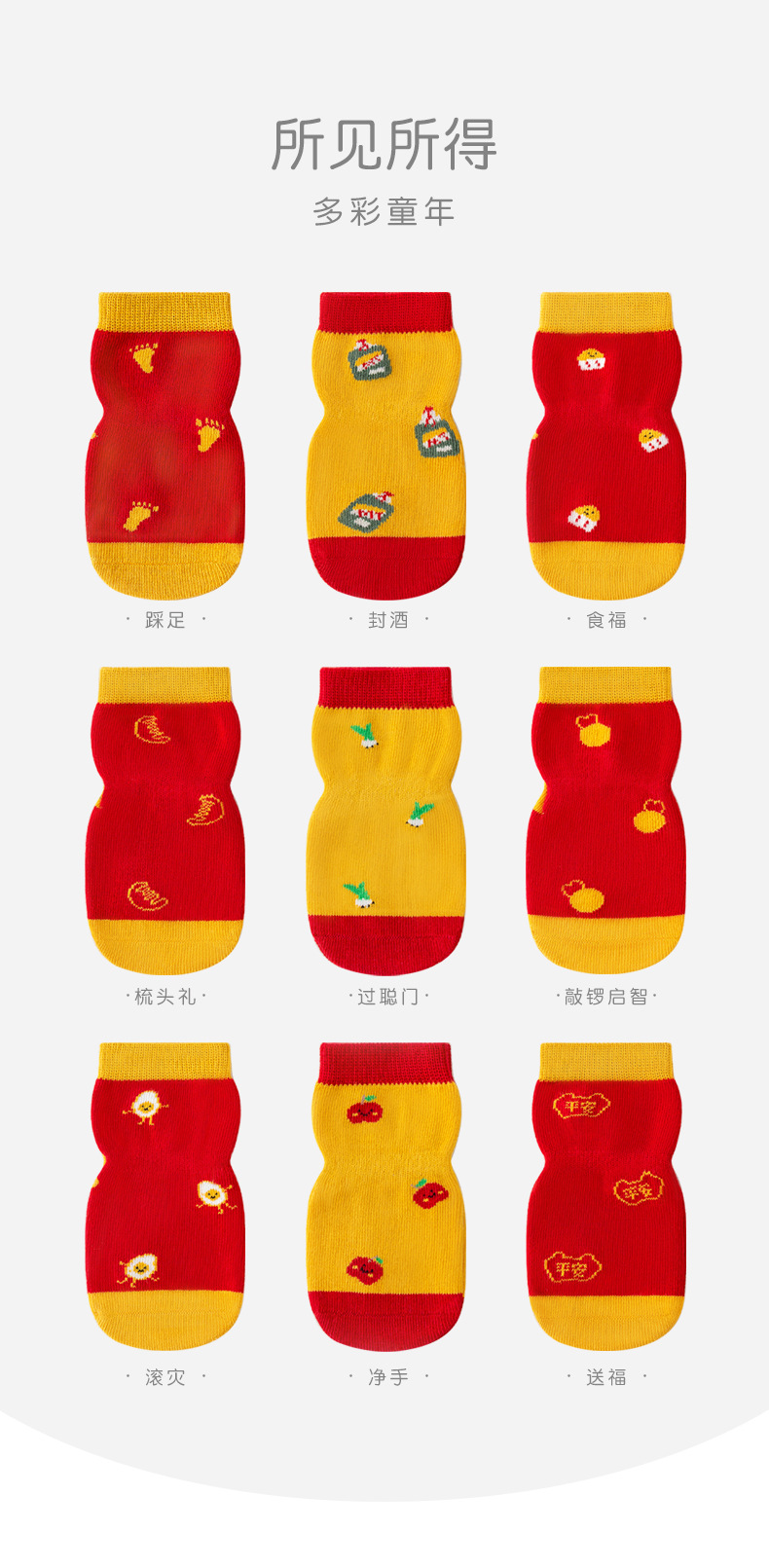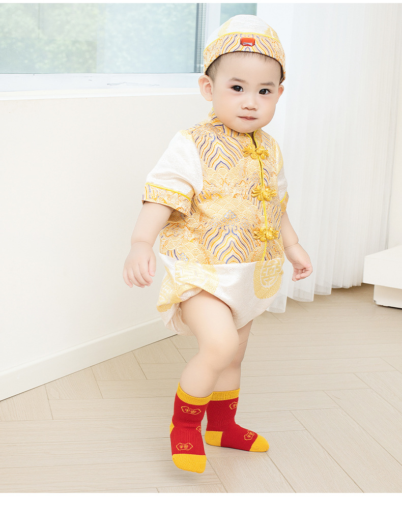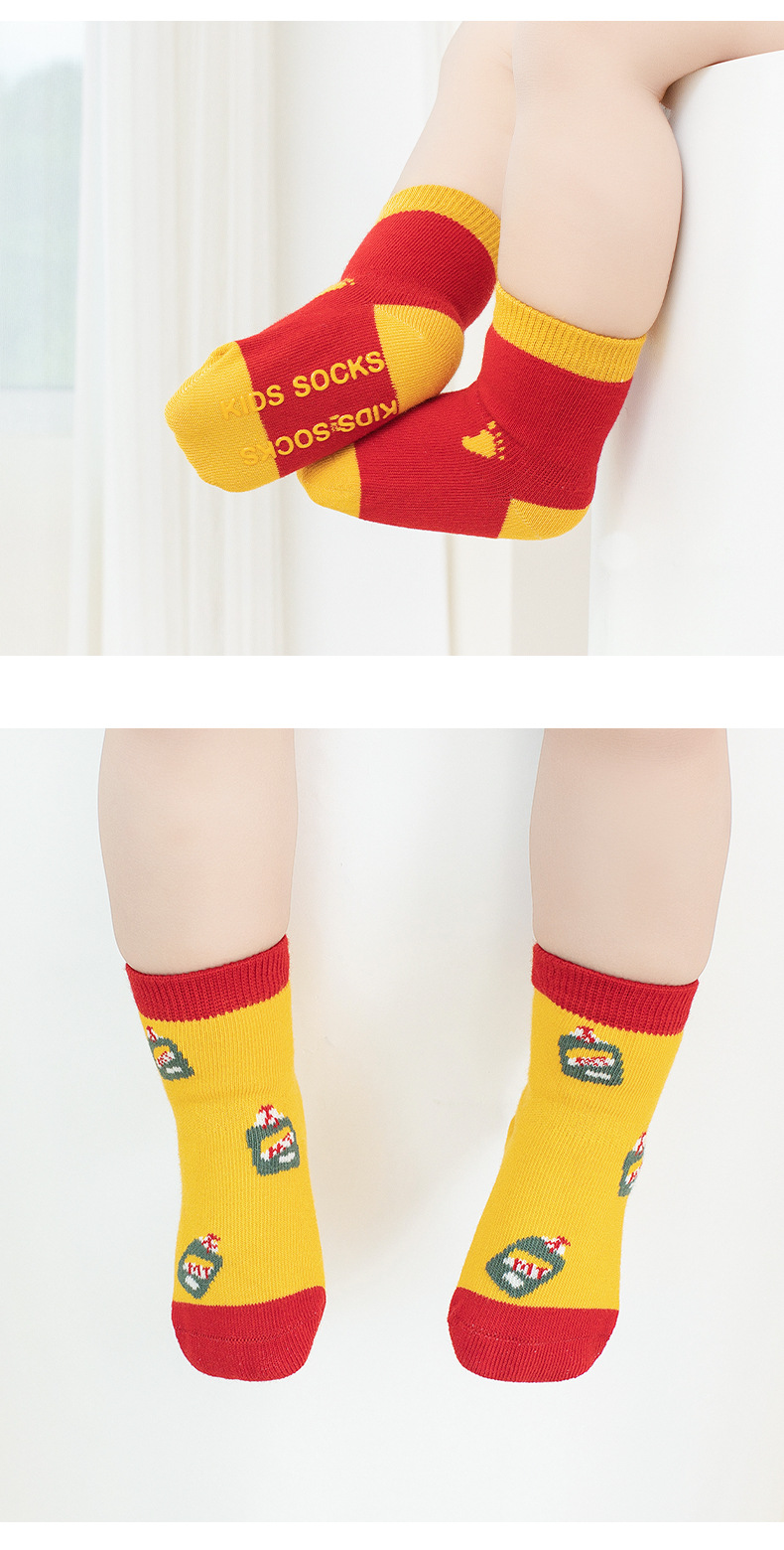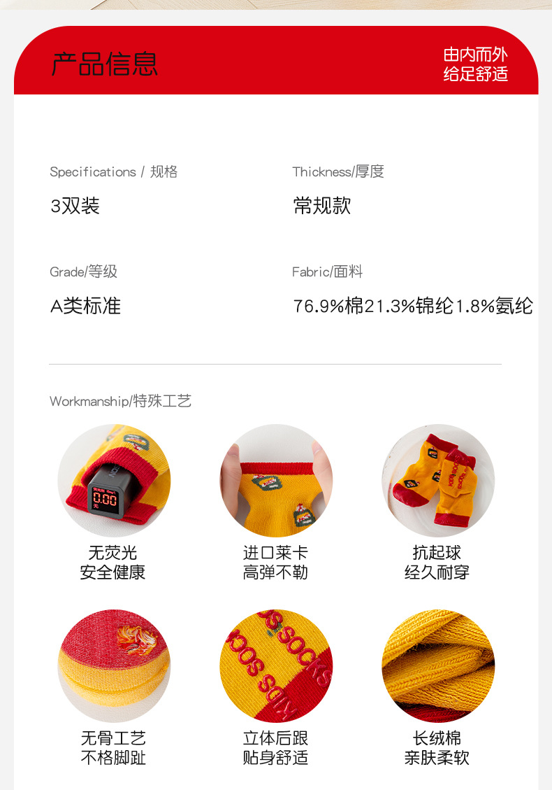 【3双装】婴儿袜子秋季a类无骨不勒周岁满月新年男童女童宝宝 儿童大红袜子