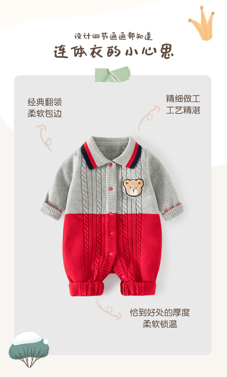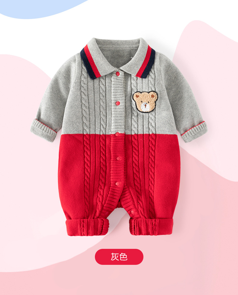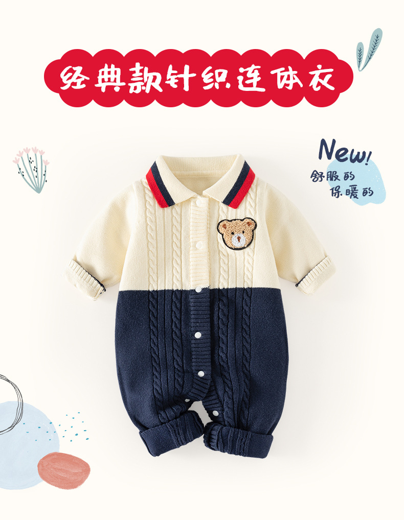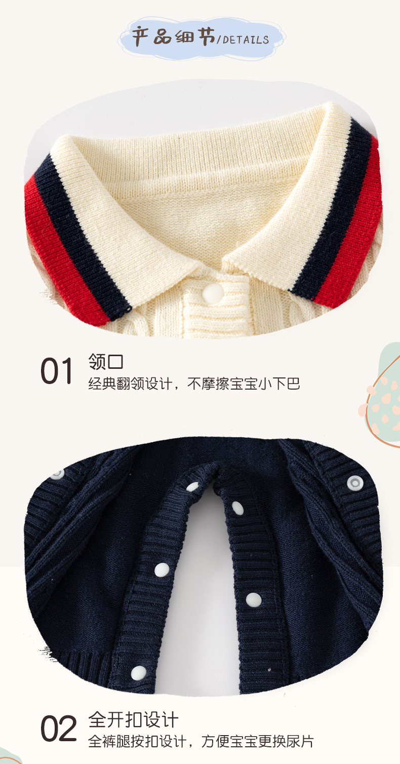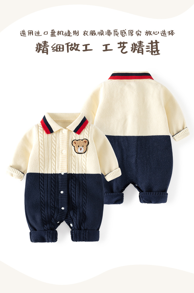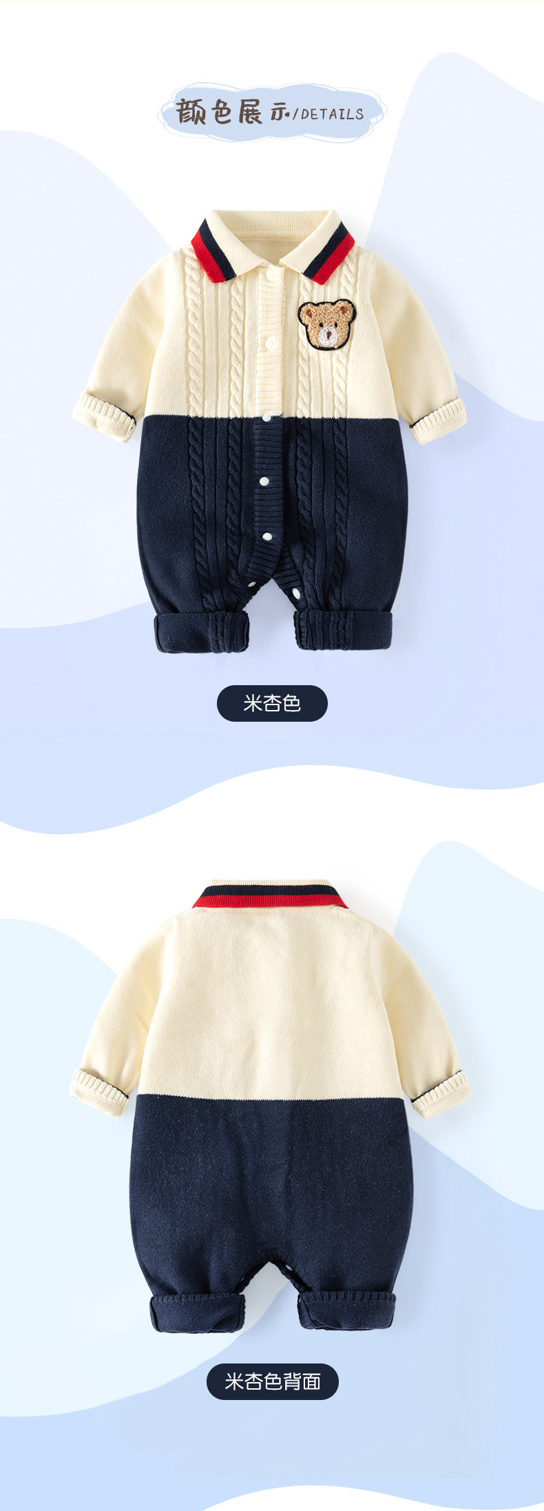 巴布雨拼色小绅士婴儿连体衣秋冬纯棉A类婴儿连体衣翻领宝宝爬服