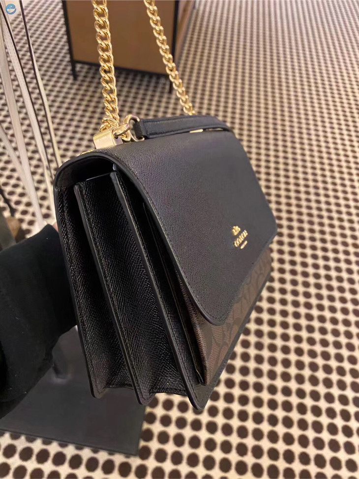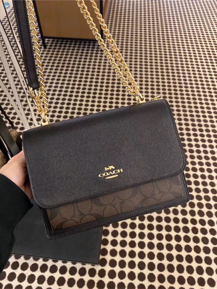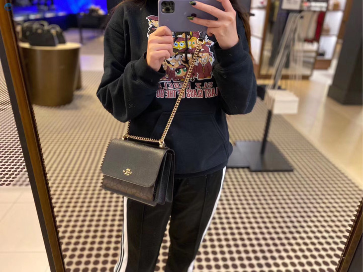 今日上新~ 喜欢的MM要速度了,限量款,~ Coach新款风琴包,可拉伸超大容量设计。链条肩带,可斜挎可双肩。这款完全是专柜的风格,特别像Parker哦~ 黑色牛皮搭配深色老花经典配色~
