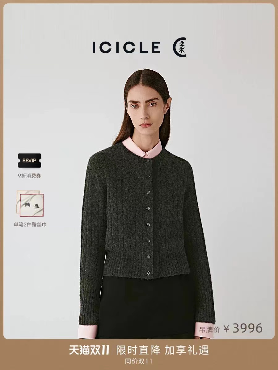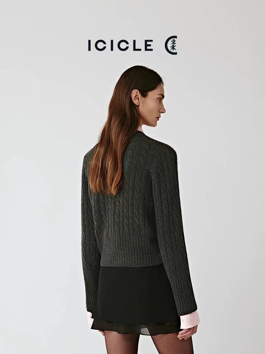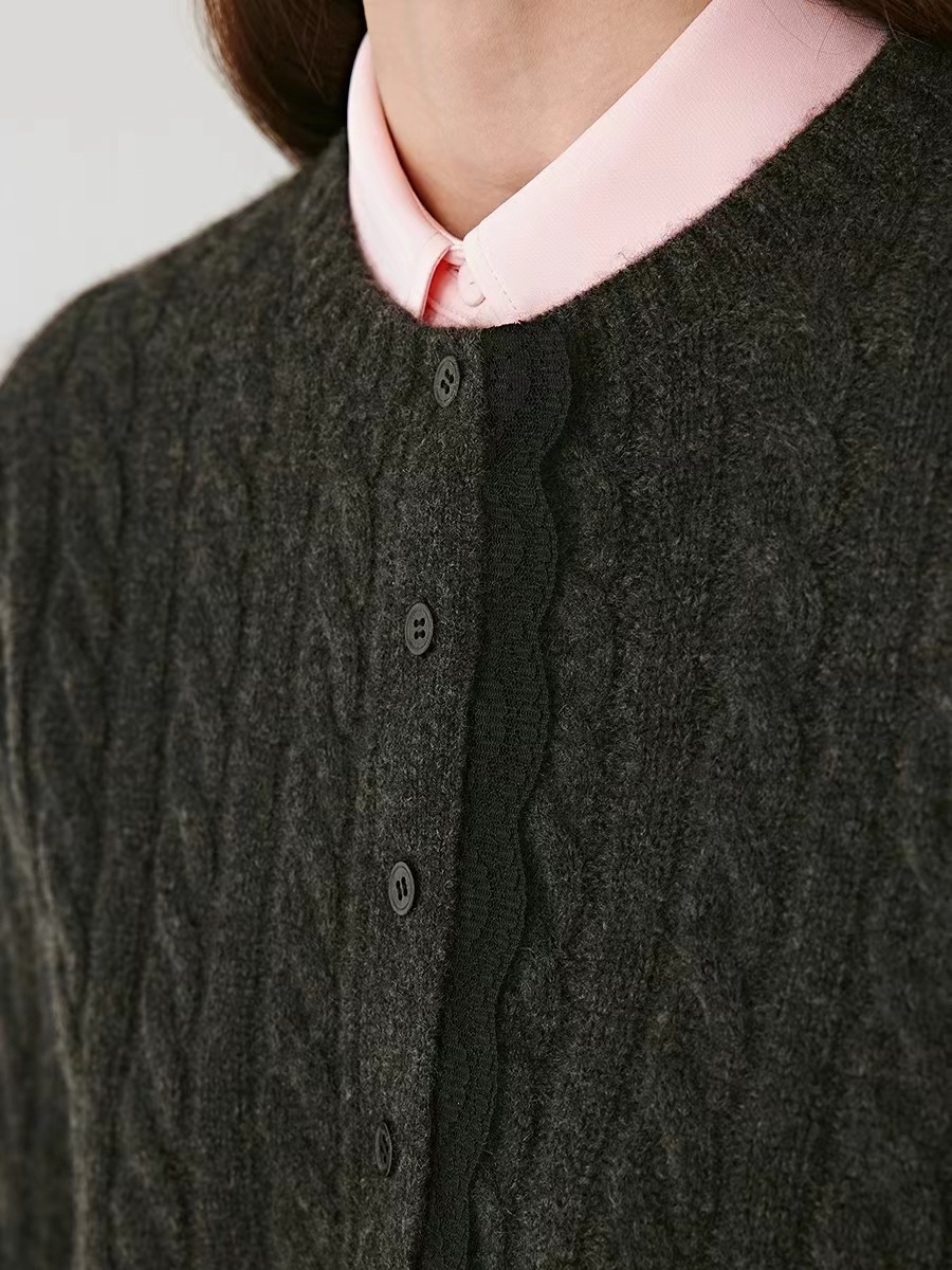 25冬新款羊毛混纺纱针织麻花毛衣 开衫这款开衫胸前花边设计 精典款 百搭