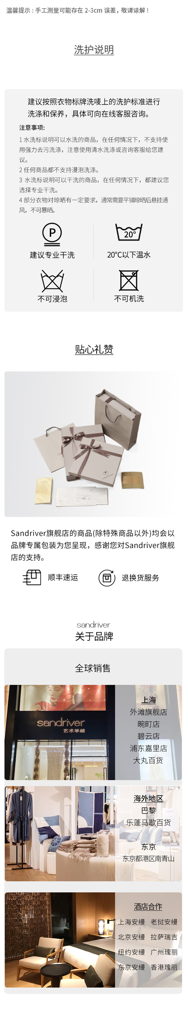 历年在巴黎时装周亮相,享誉世界的艺术羊绒品牌[Sandriver 沙涓]由羊绒布道者郭秀玲女士创立。阿拉善自有牧场纯种羔羊绒,日本国宝设计师小筱顺子,上海自有基地精工细作。承载羊绒情怀,坚持匠人品质。