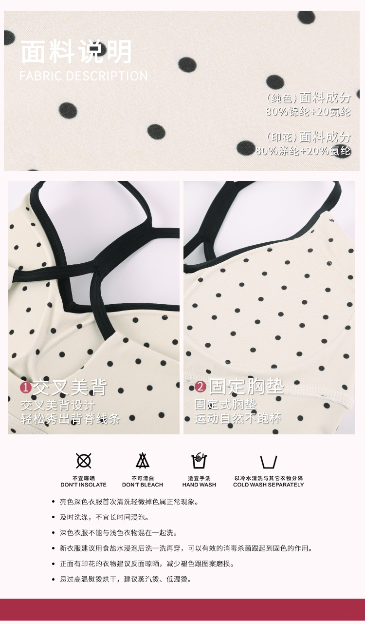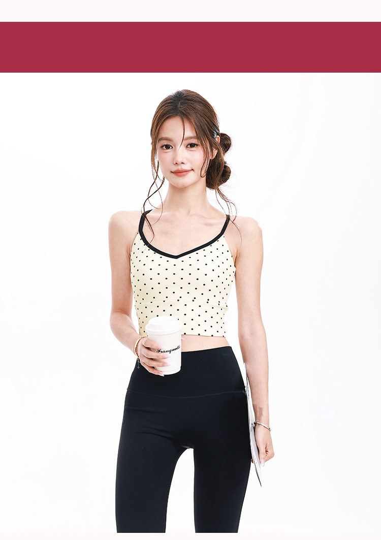 跃牌【海听系列】波点运动内衣女防震收副乳固定杯美背瑜伽服背心XC102