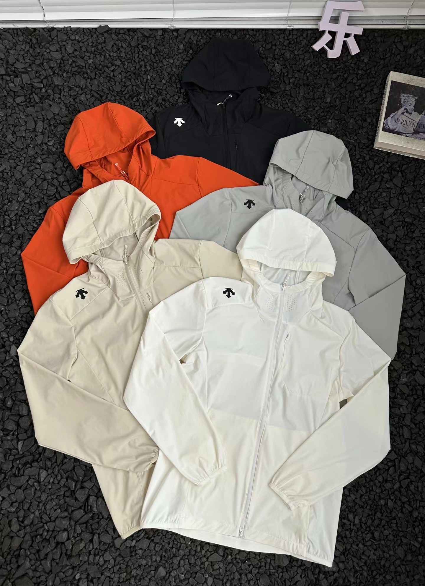 F040744户外运动休闲吸汗透气速干轻薄透气连帽梭织外套夹克防晒衣