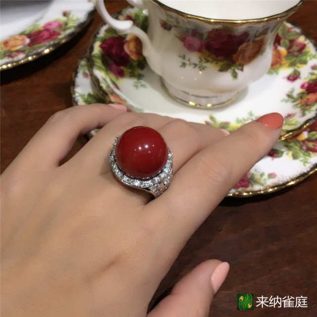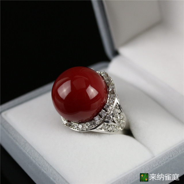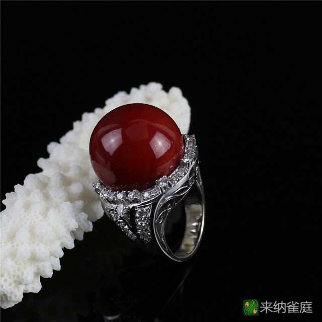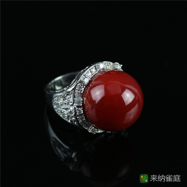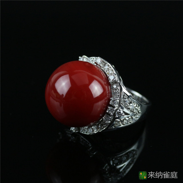 珊瑚材质:阿卡珊瑚 配镶金属:铂金PT900