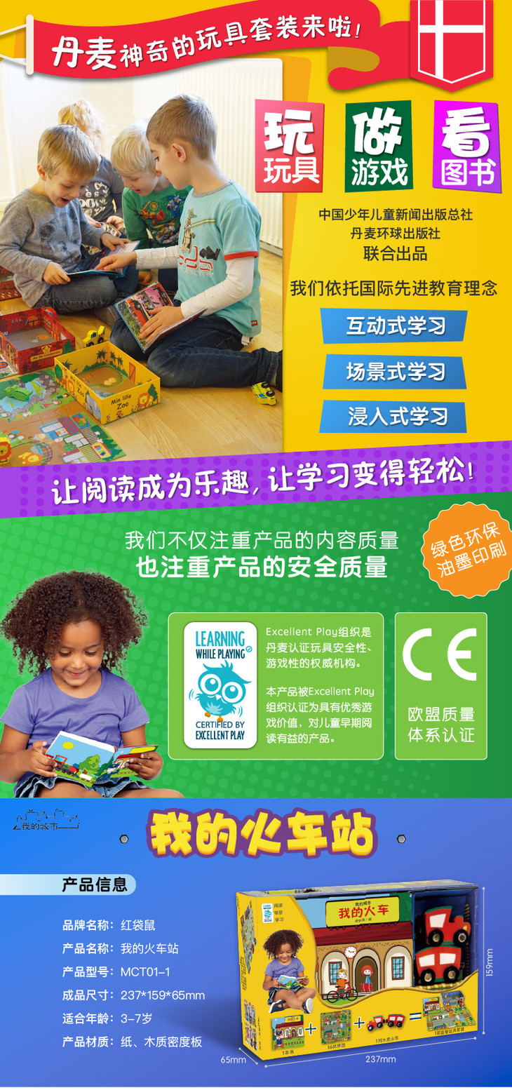 我的城市我的火车站丨拼图、玩具、图书三合一 源自丹麦的畅销儿童启蒙套装 3-7岁适读