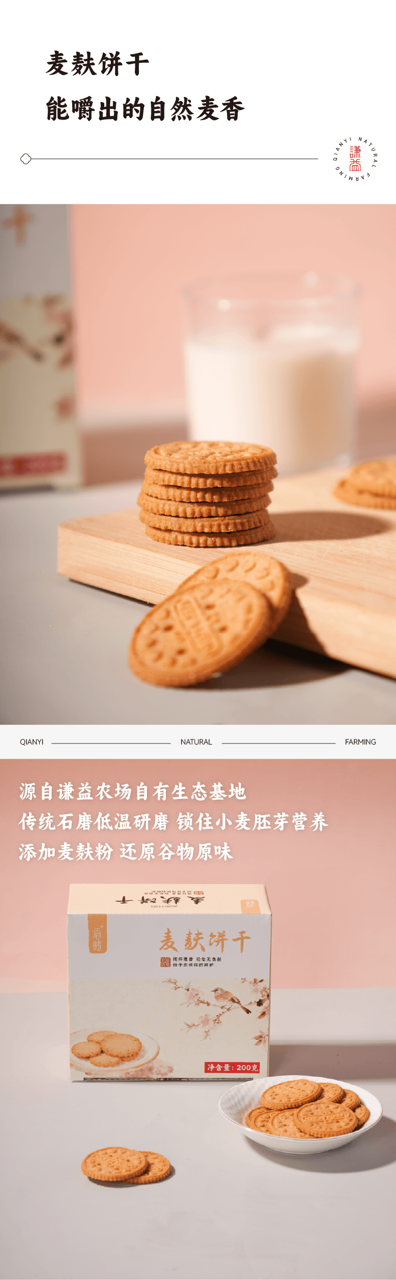【上新】谦益麦麸饼干200g 健康食材 石磨面粉 传统烘焙工艺 自然清香酥脆 轻负担零食