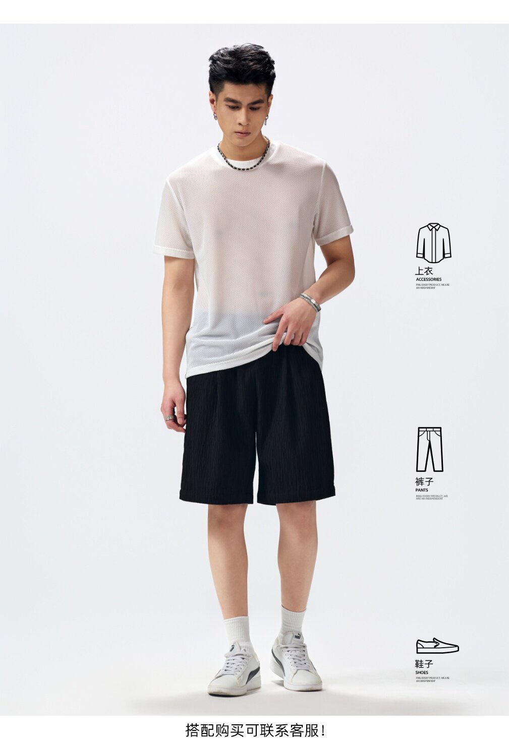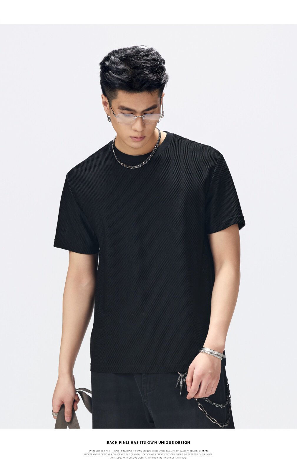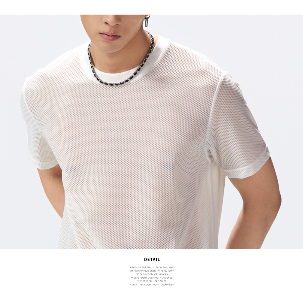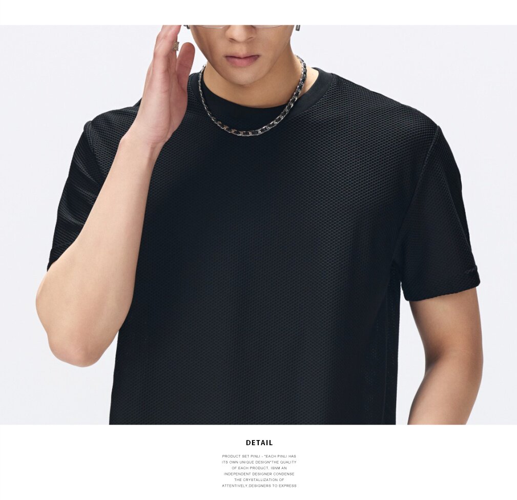 PINLI品立2026夏季新款男士微透轻薄凉感透气高弹圆领短袖T恤上衣GD262111036