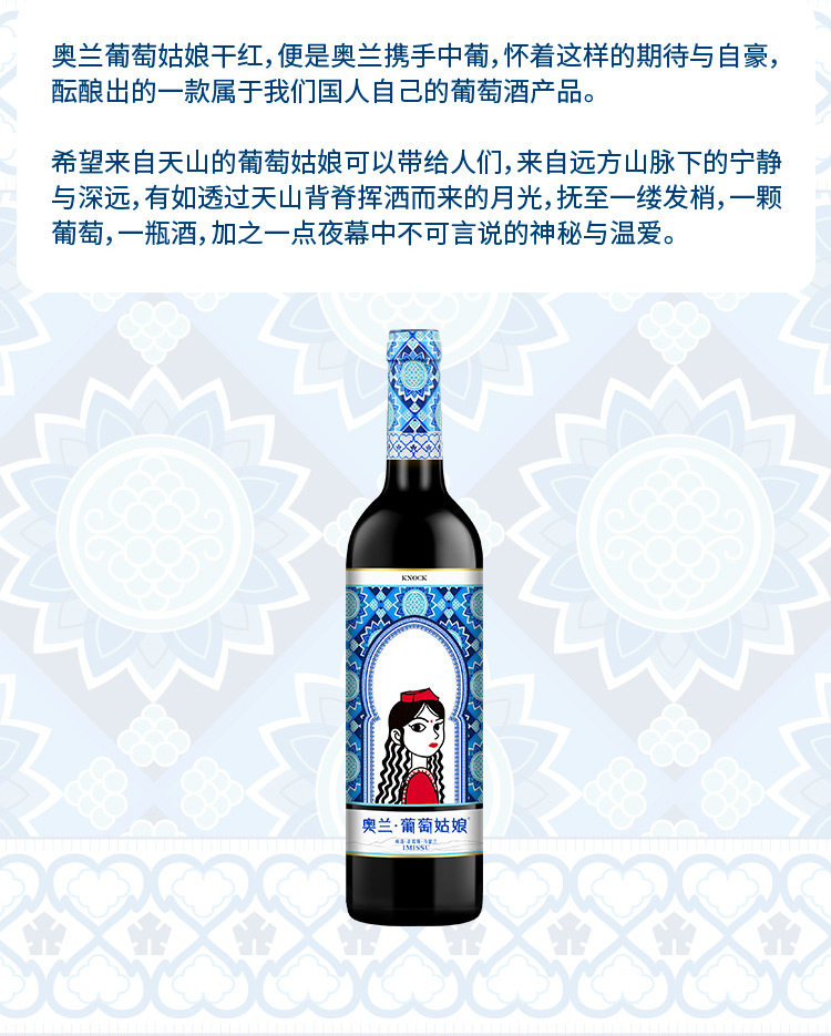 奥兰葡萄姑娘干红葡萄酒 750ml*6瓶