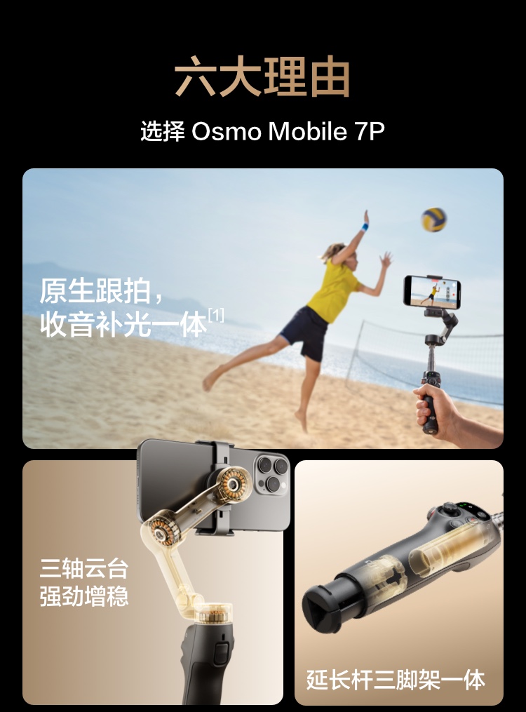 大疆 DJI Osmo Mobile 7P 全场景跟拍手机稳定器OM7智能跟拍直播vlog防抖手持云台折叠自拍杆拍摄神器
