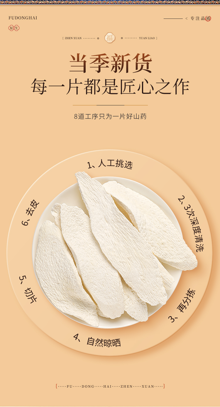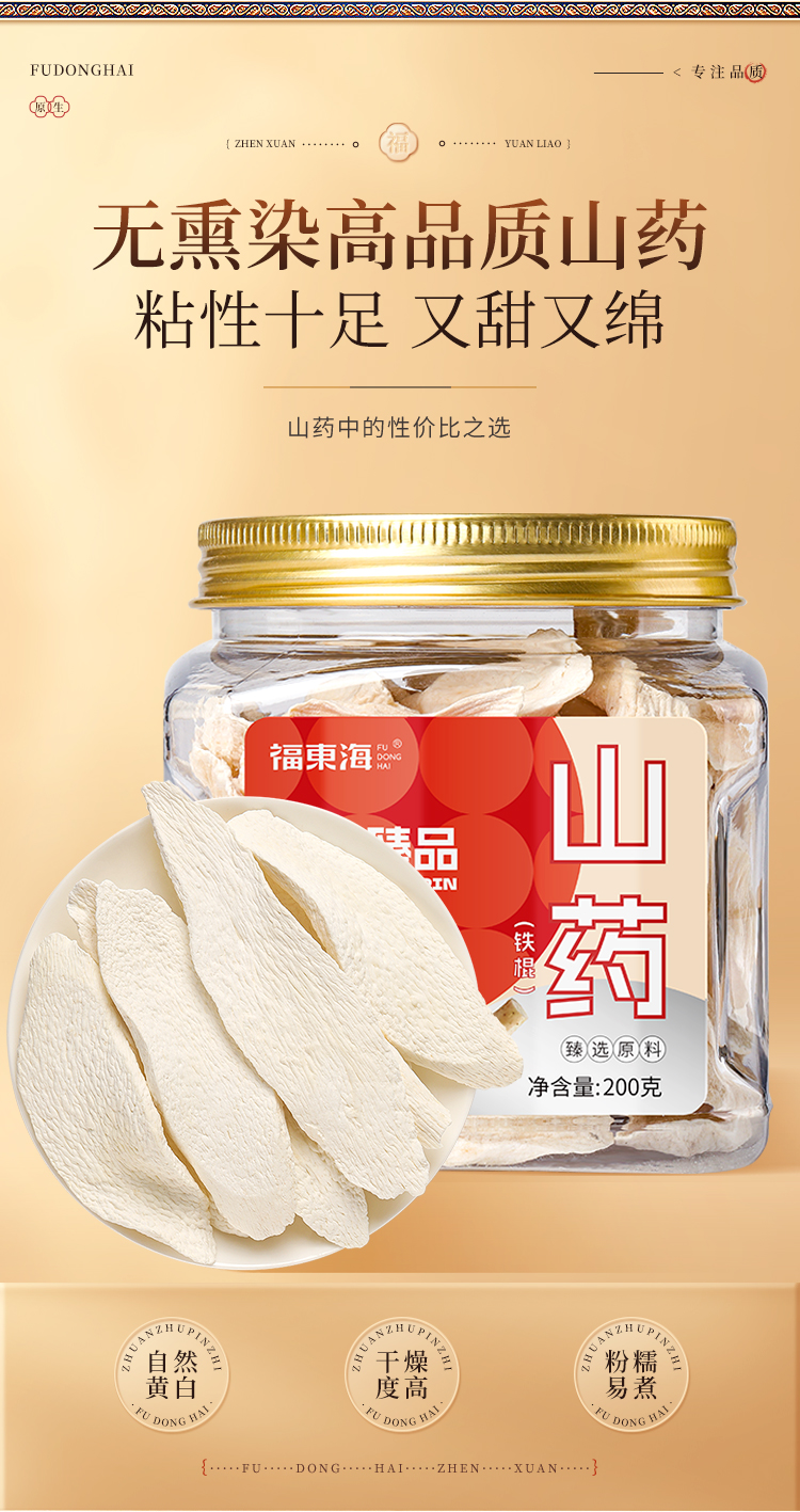 福东海 山药片200g【实体品质】铁棍怀山干淮山药党参玉竹沙参煲汤料食补