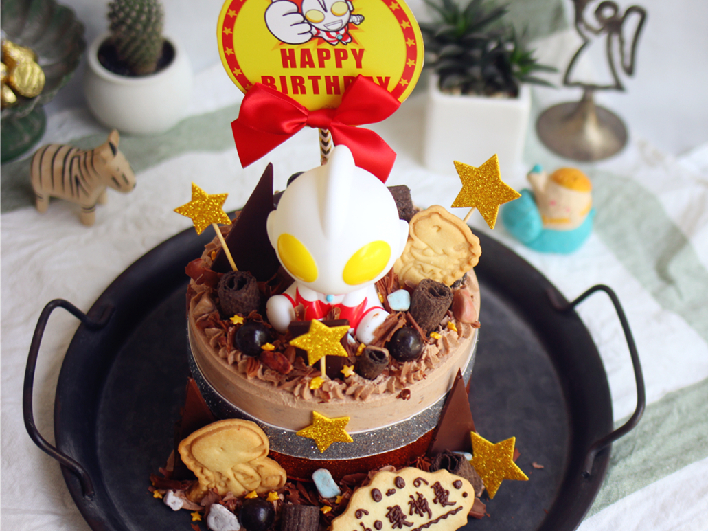 把这个可爱的奥特曼蛋糕