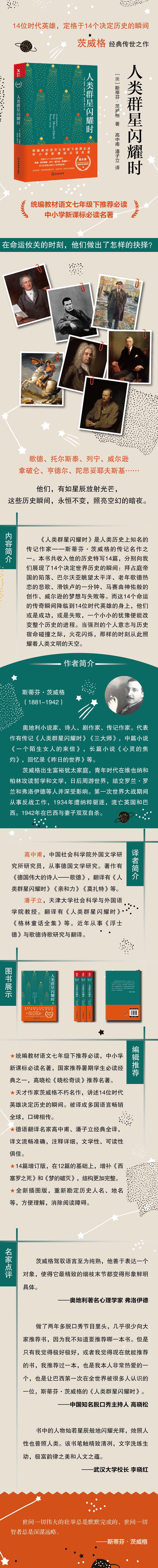 【申怡推荐】人类群星闪耀时 (奥)斯蒂芬·茨威格本书共收入特写14篇课外阅读