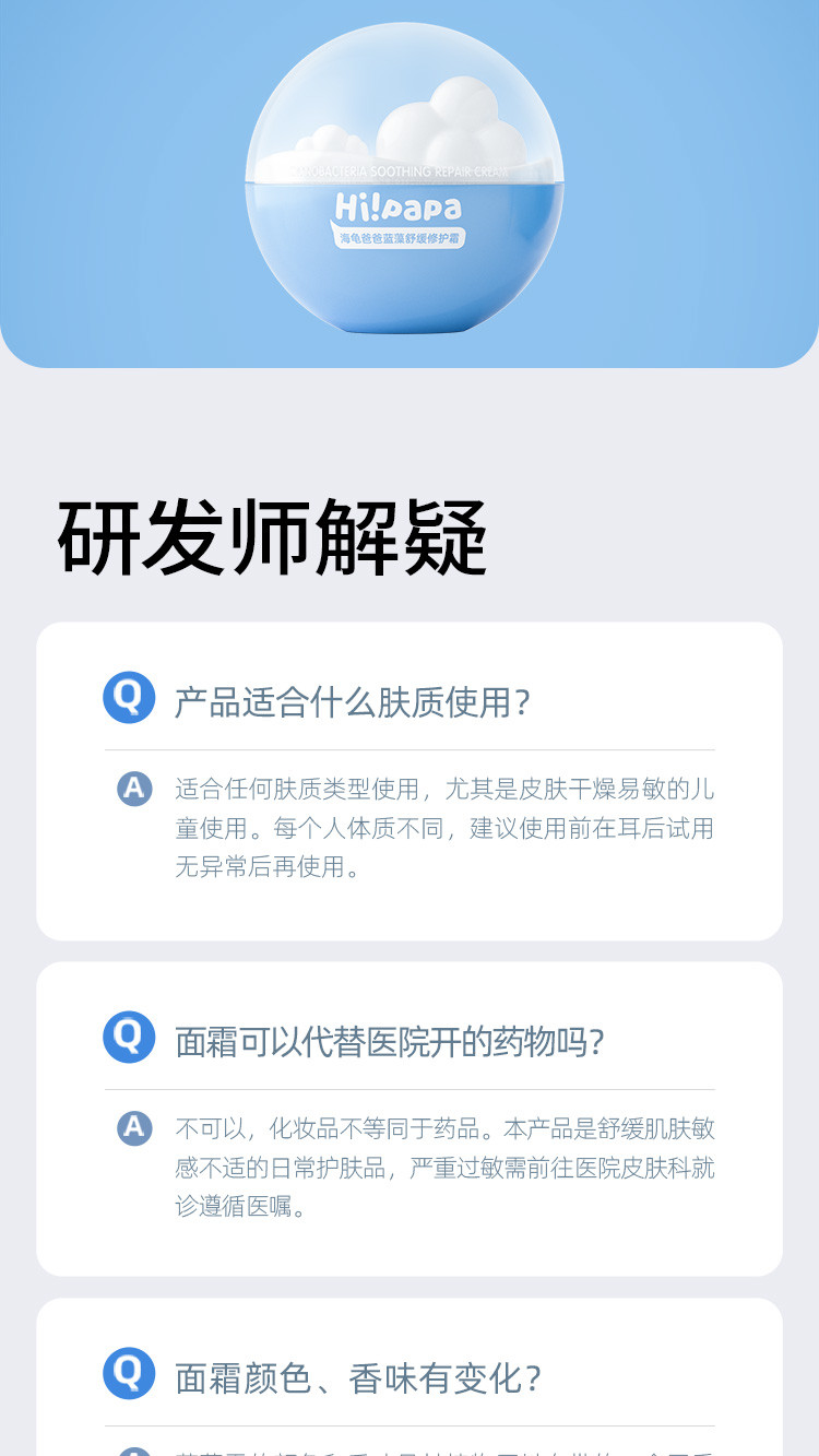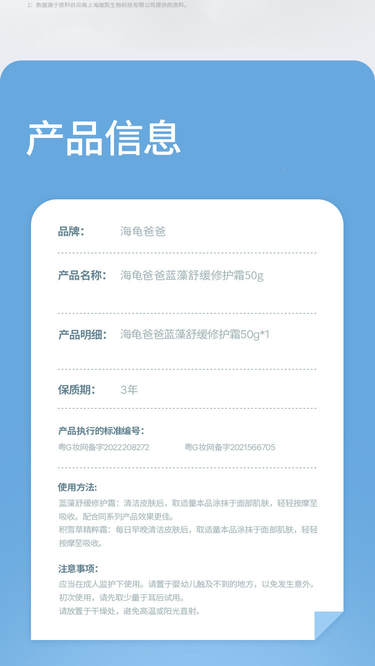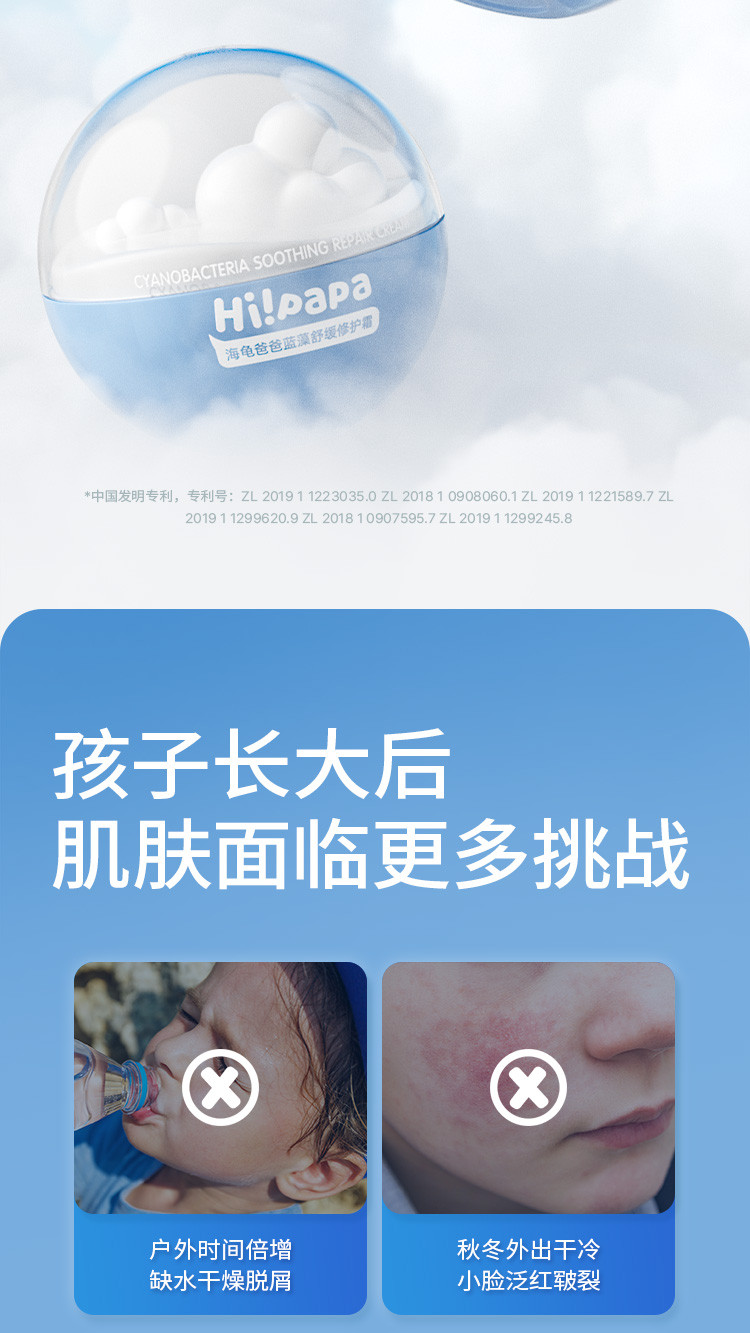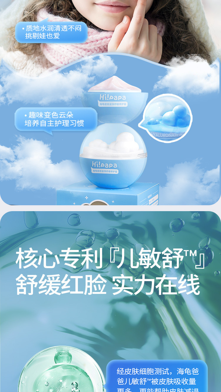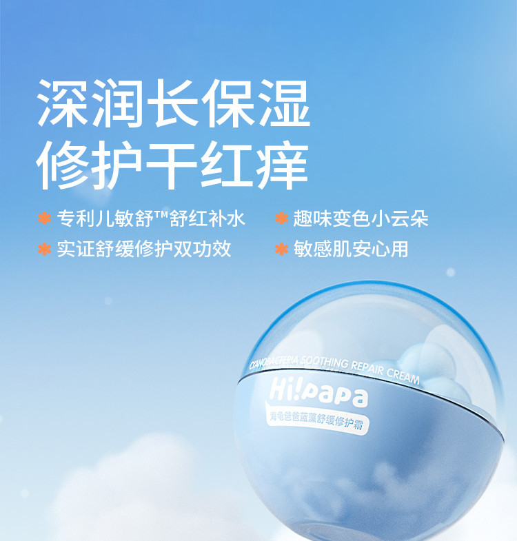 【源码】海龟爸爸蓝藻舒缓修护霜50G小云朵霜儿童面霜宝宝秋冬补水滋润身体保湿霜