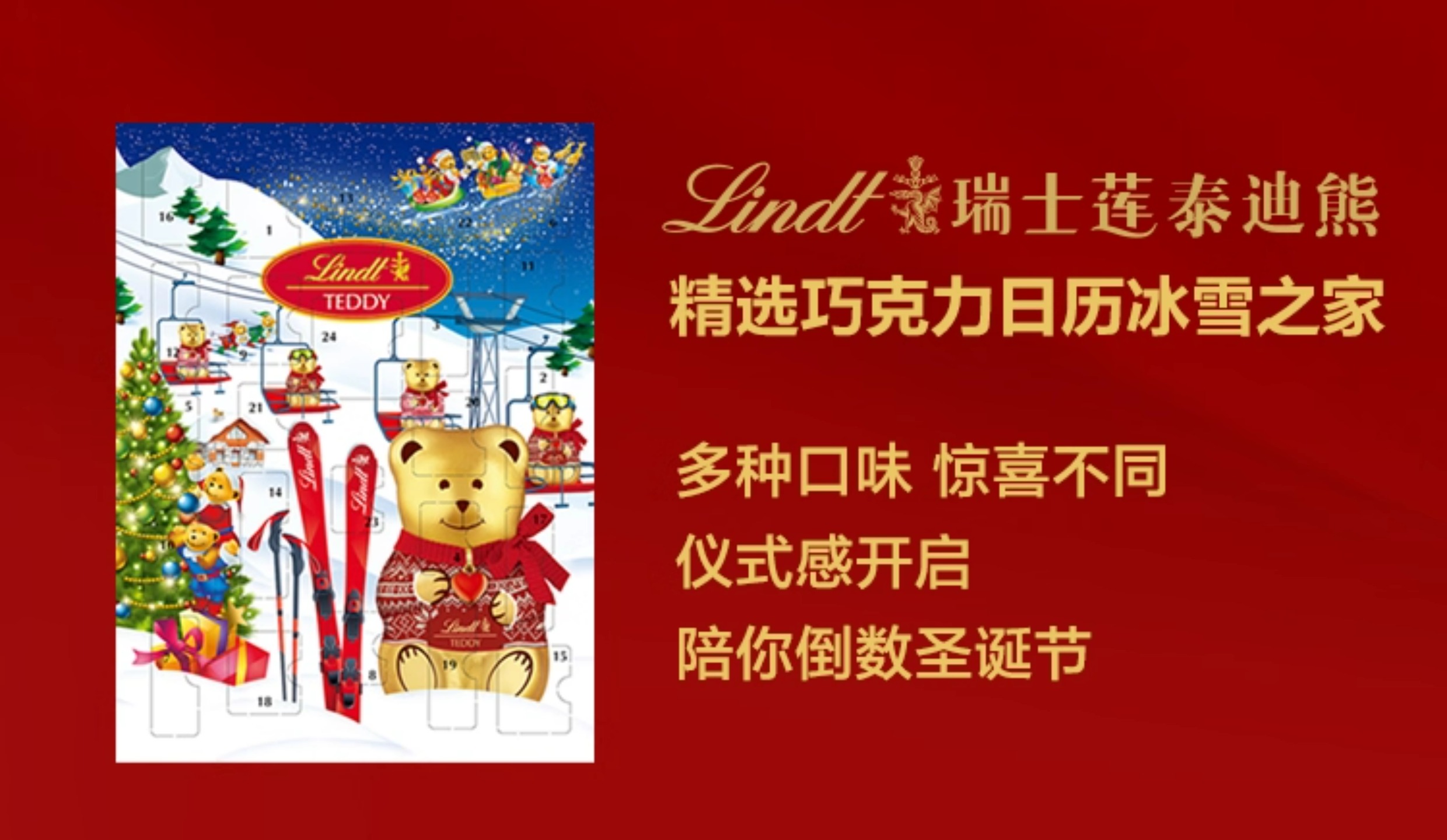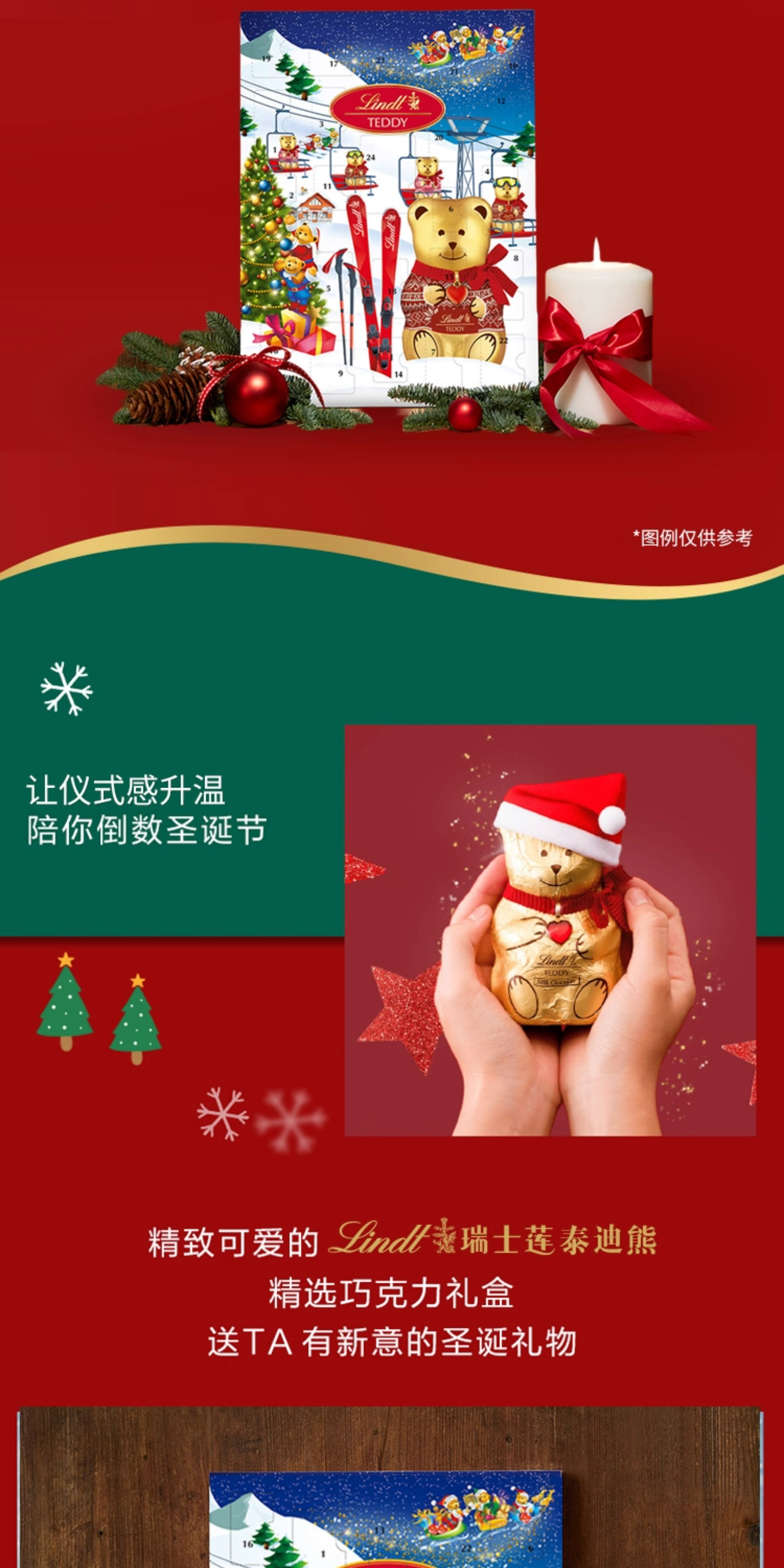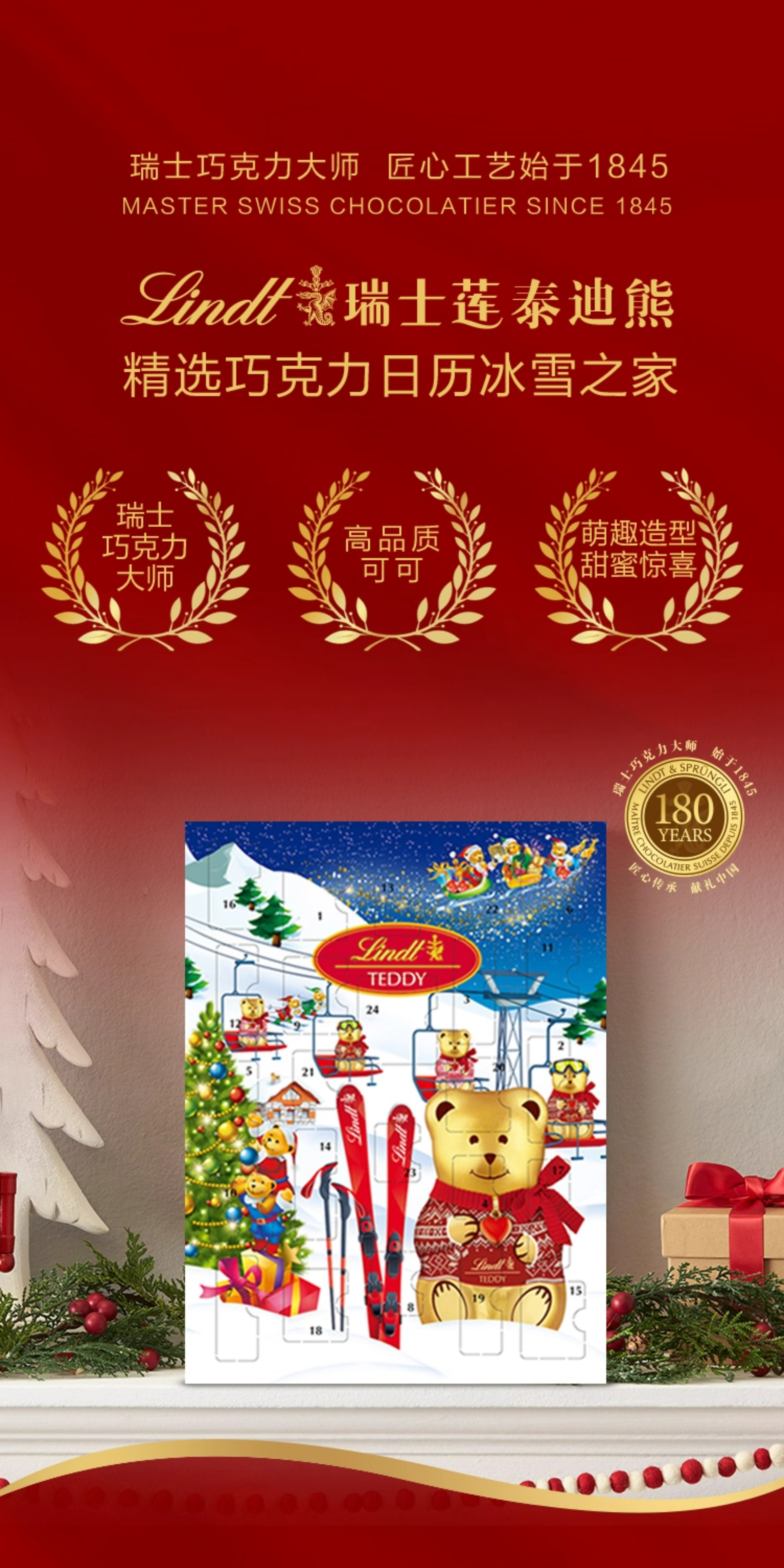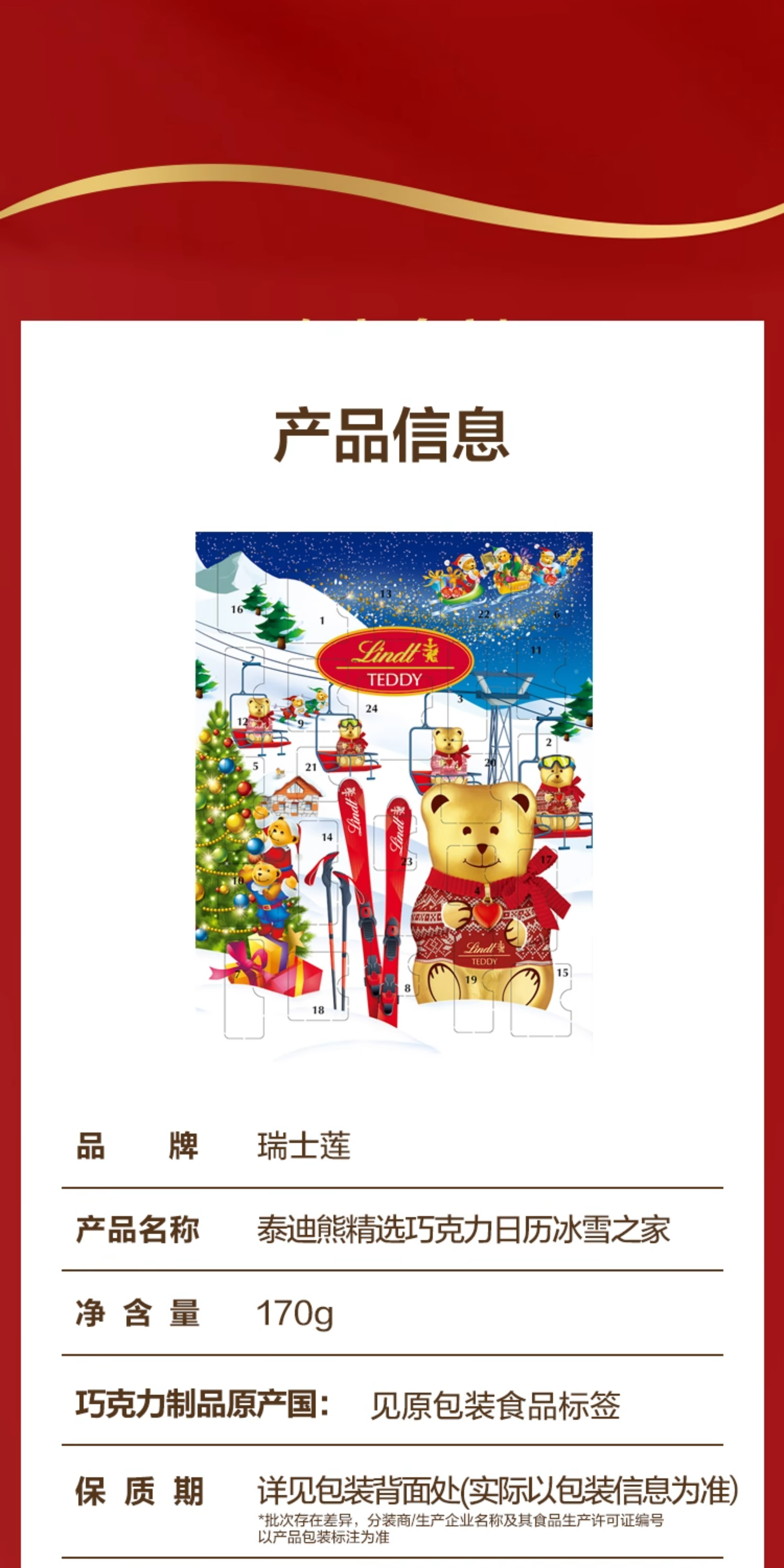 【超模君精选 圣诞惊喜】Lindt/瑞士莲泰迪熊巧克力圣诞倒数日历170g节日送礼【中欧班列精选】