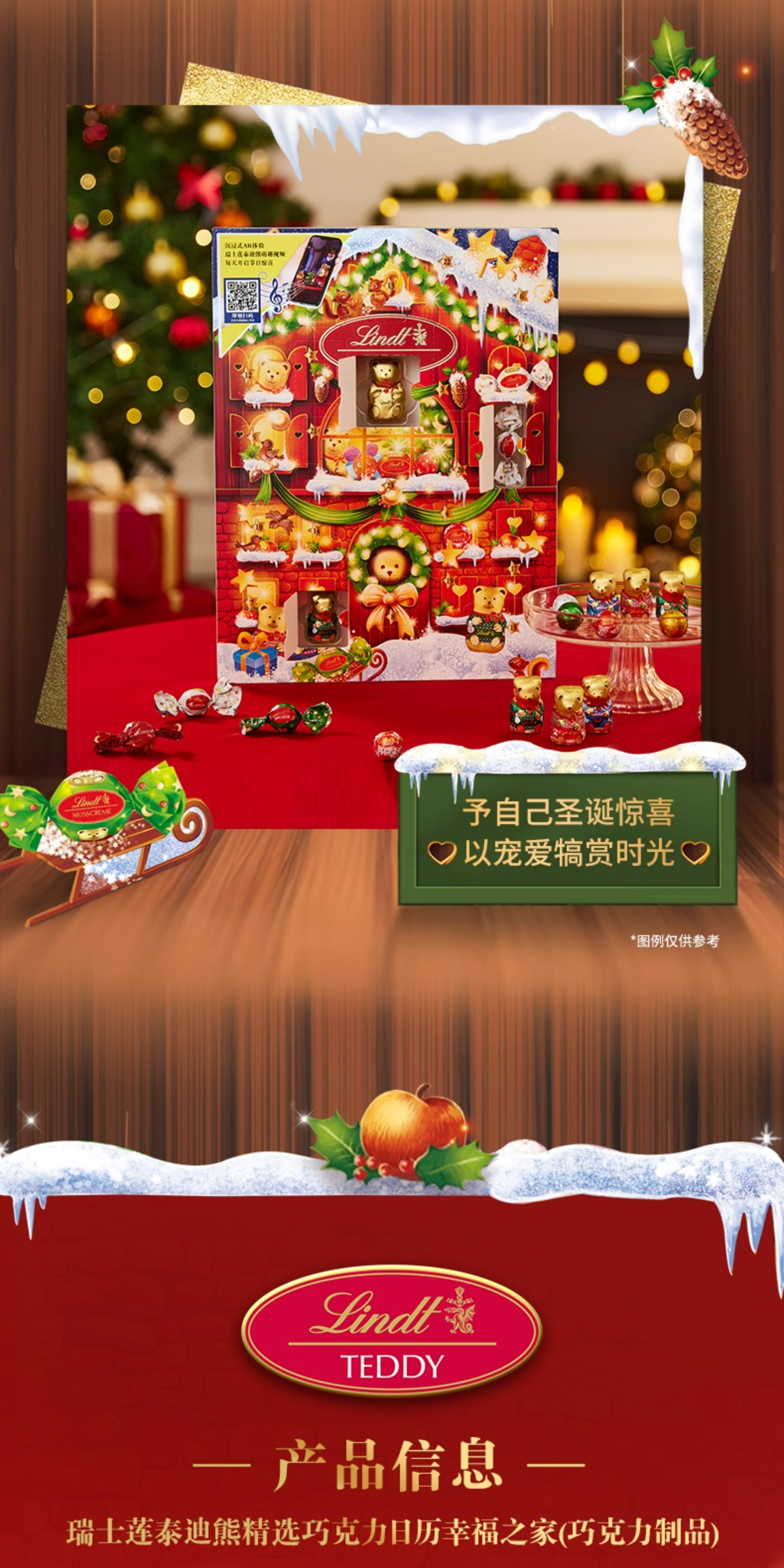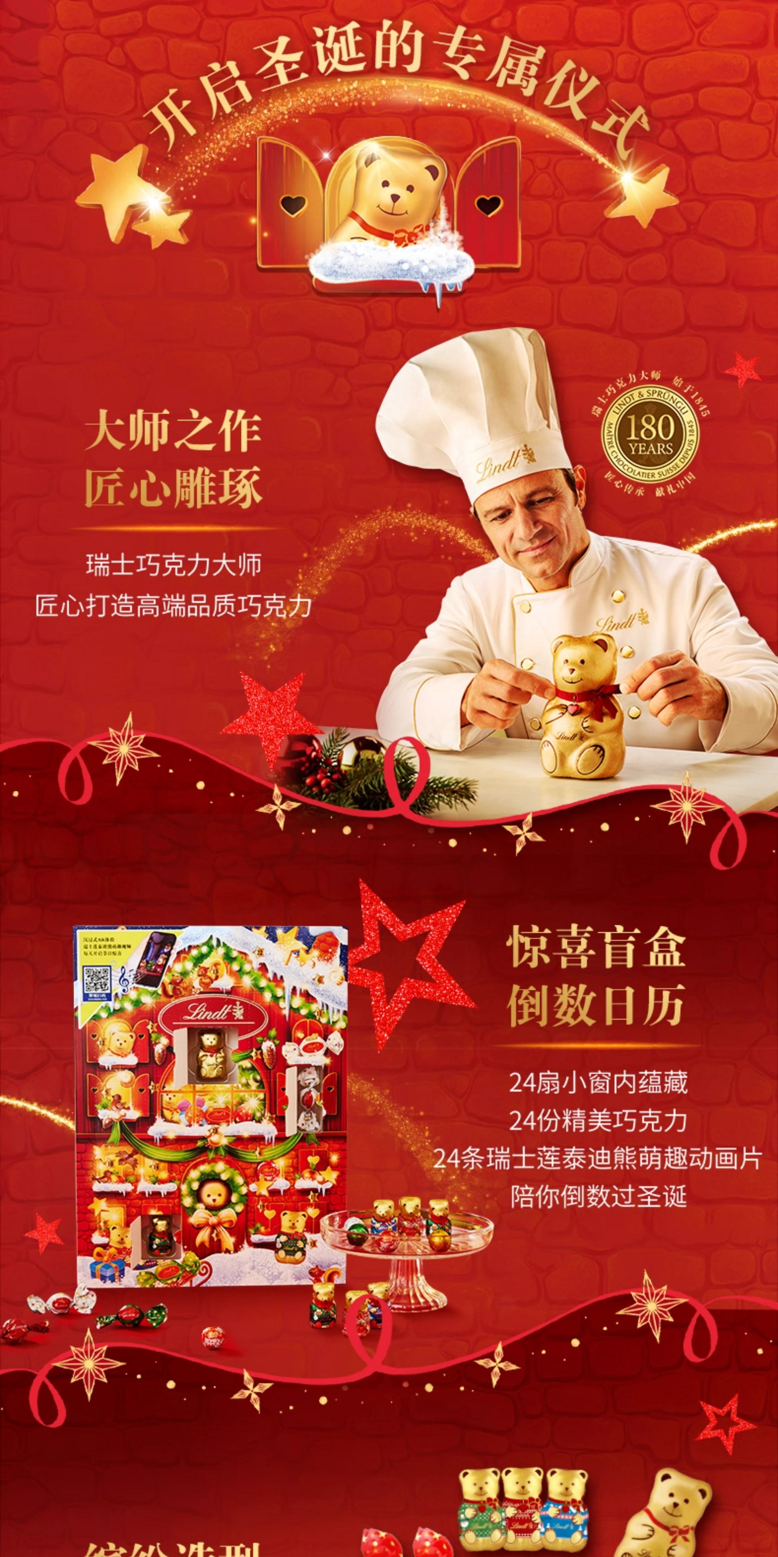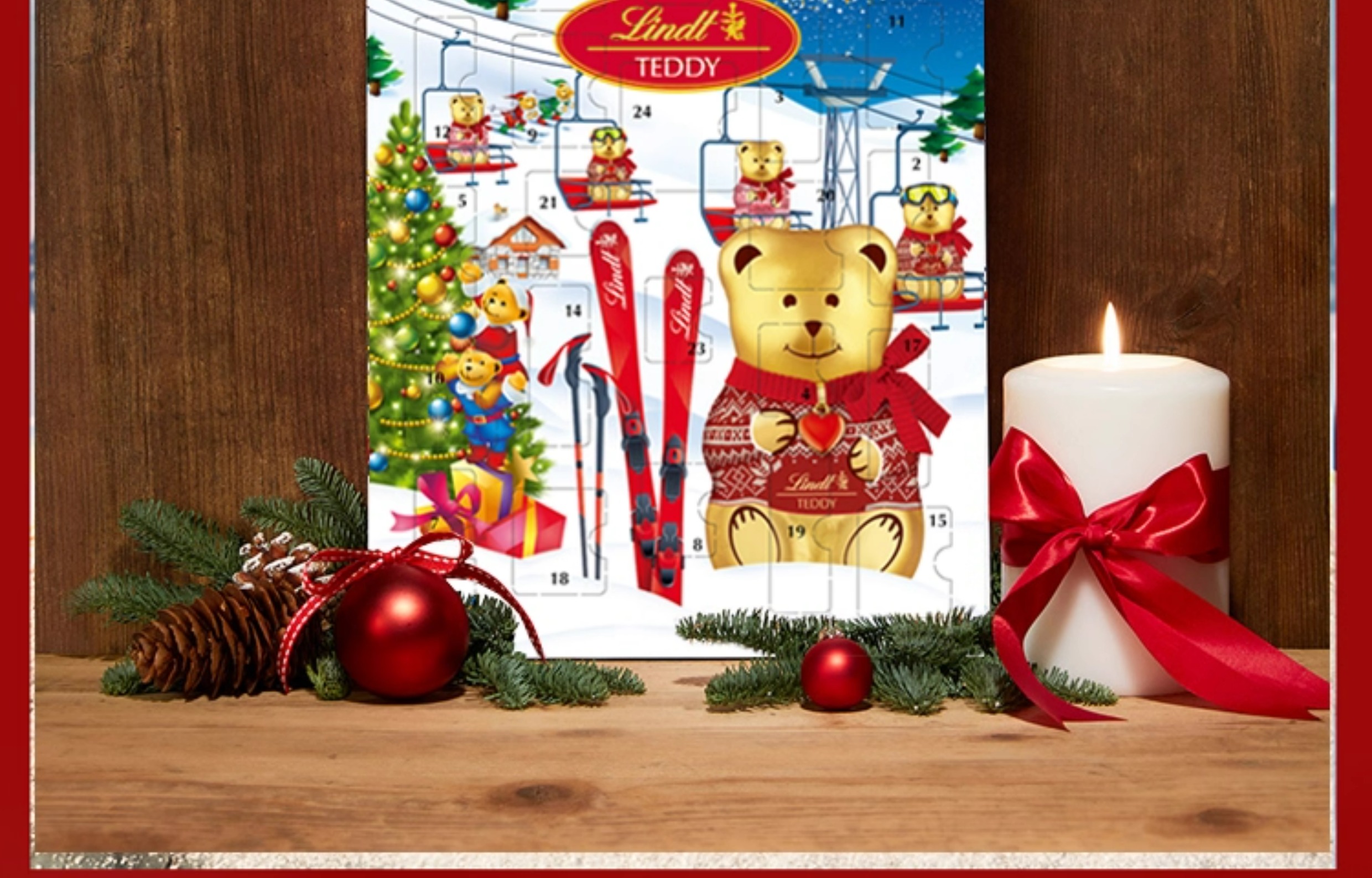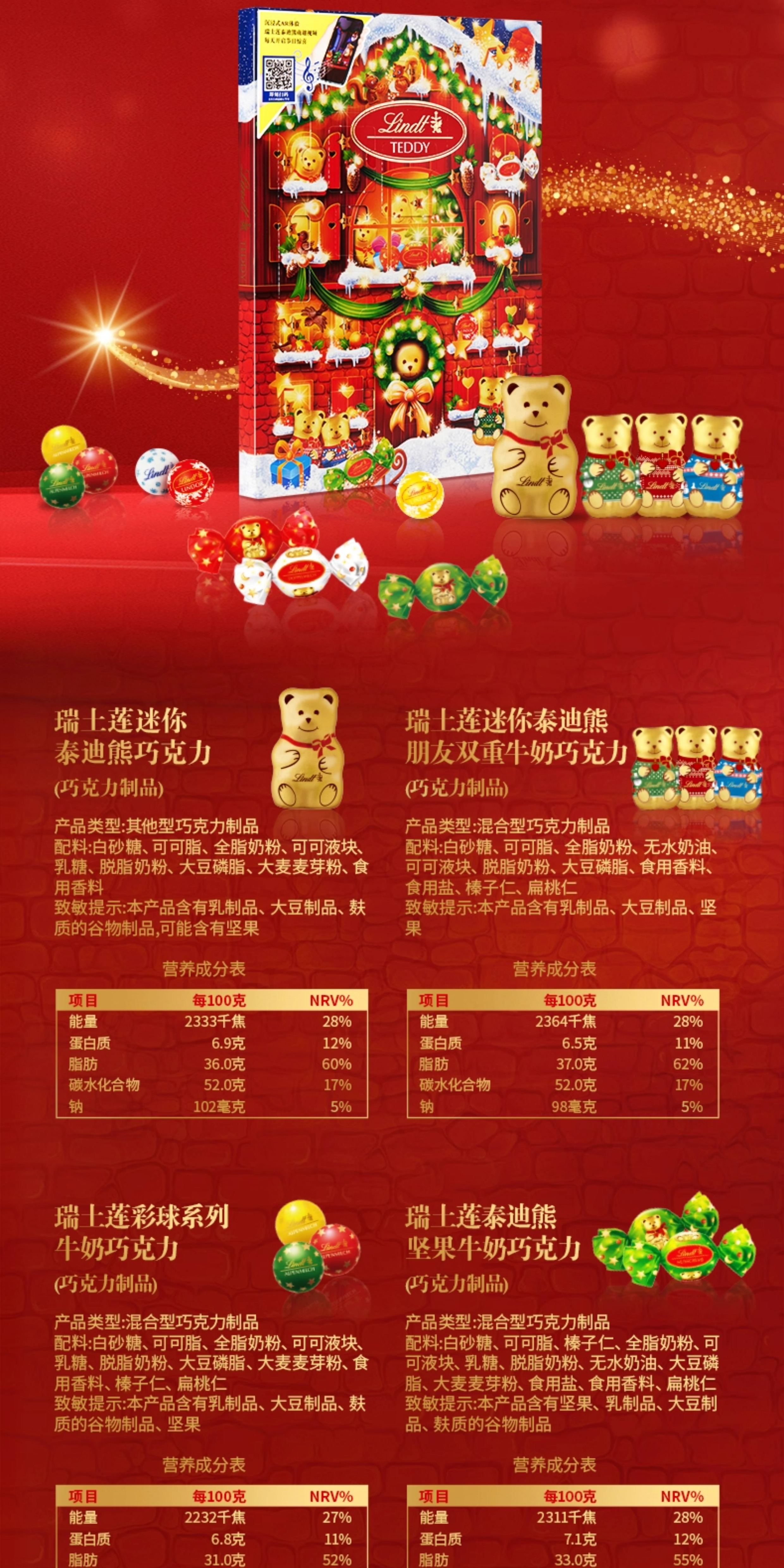 【超模君精选 圣诞惊喜】Lindt/瑞士莲泰迪熊巧克力圣诞倒数日历170g节日送礼【中欧班列精选】