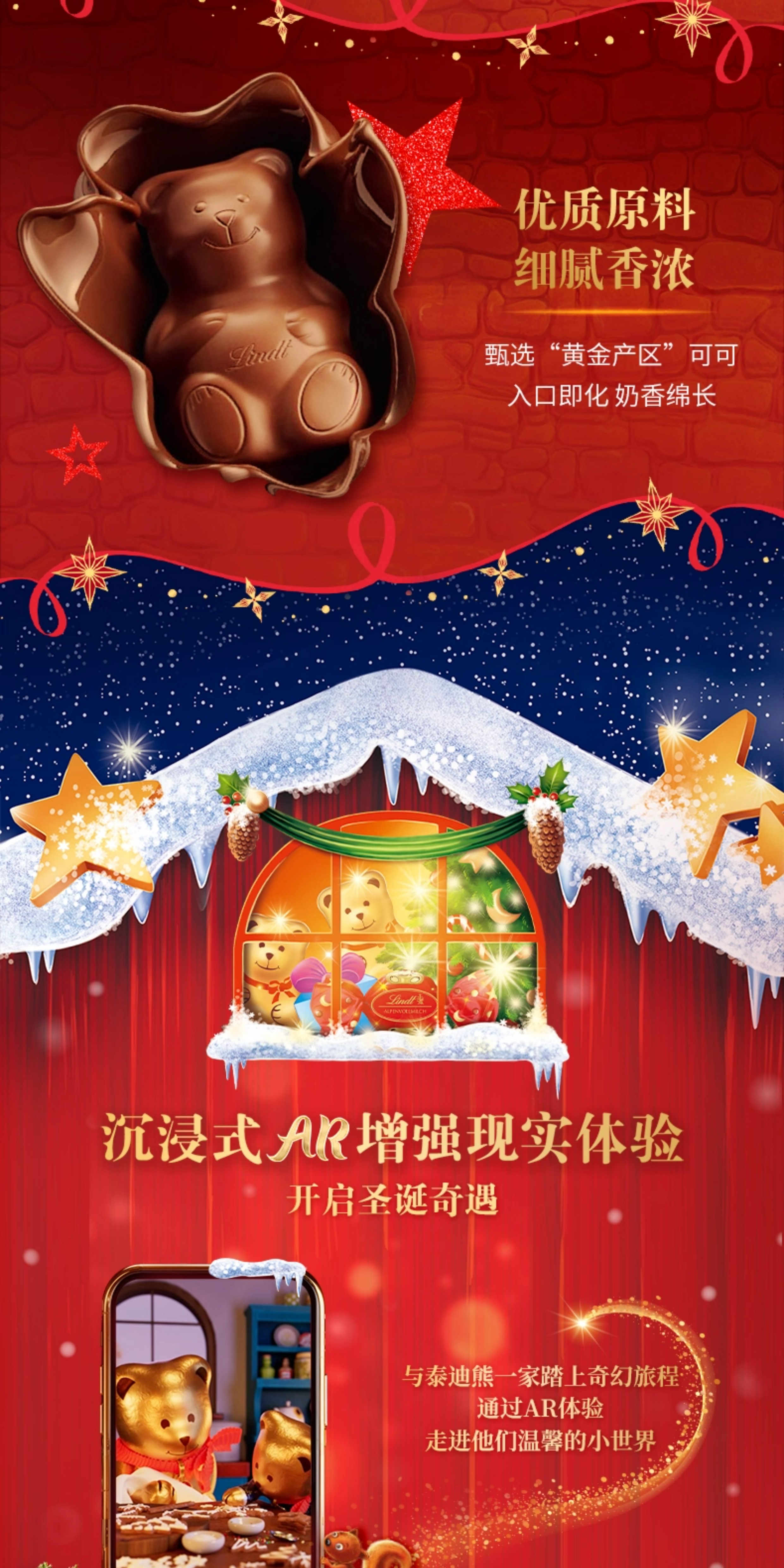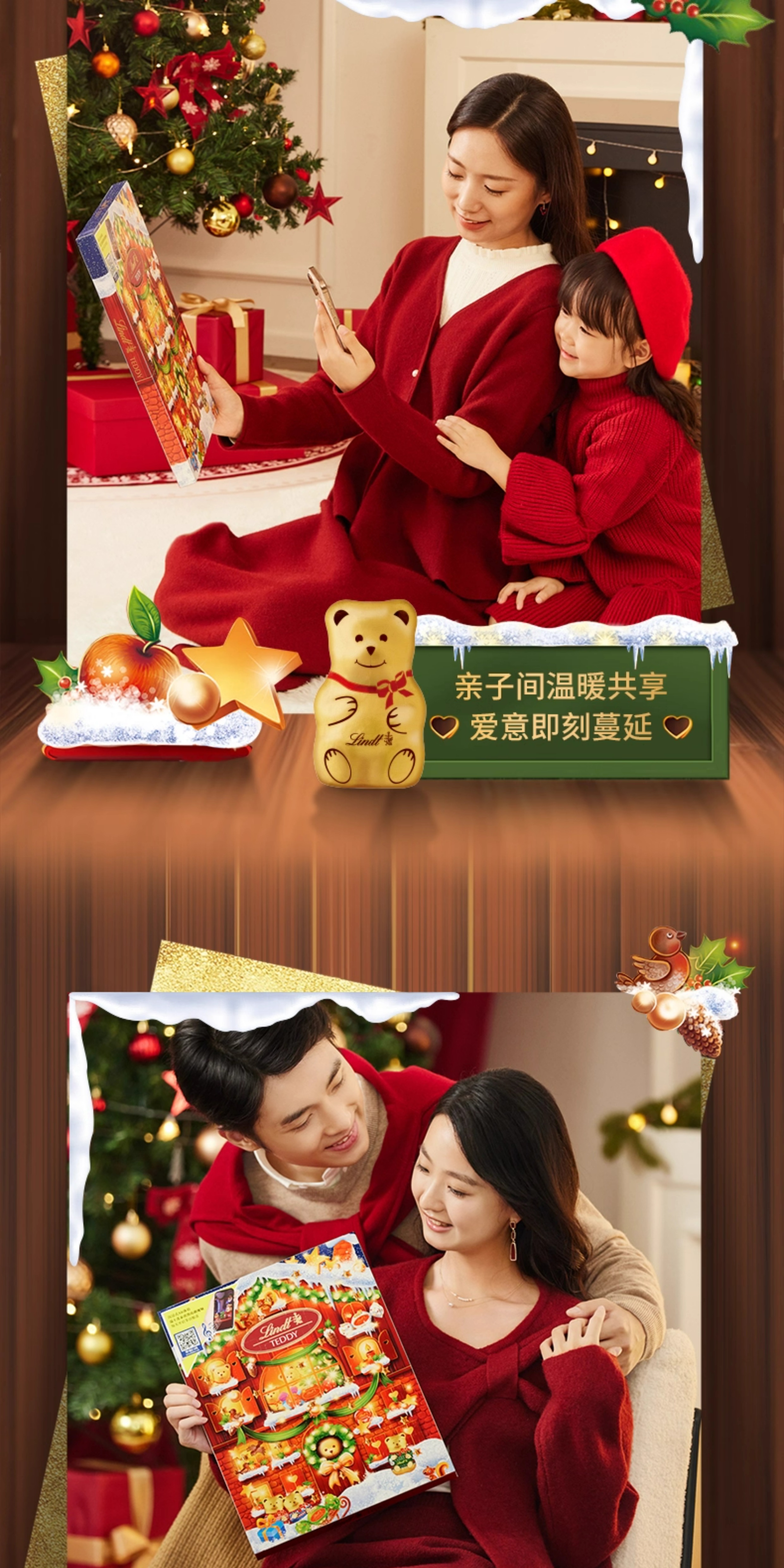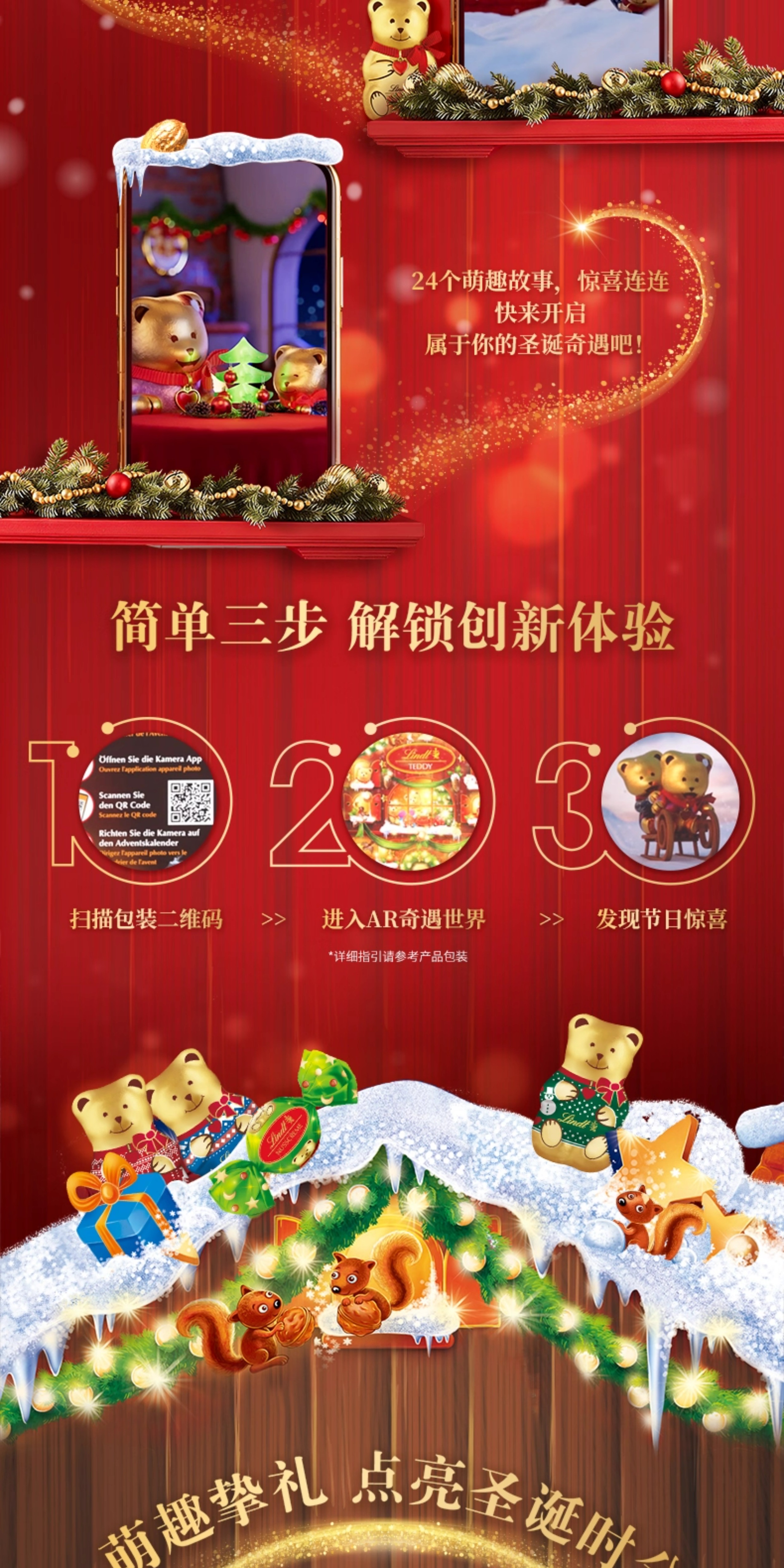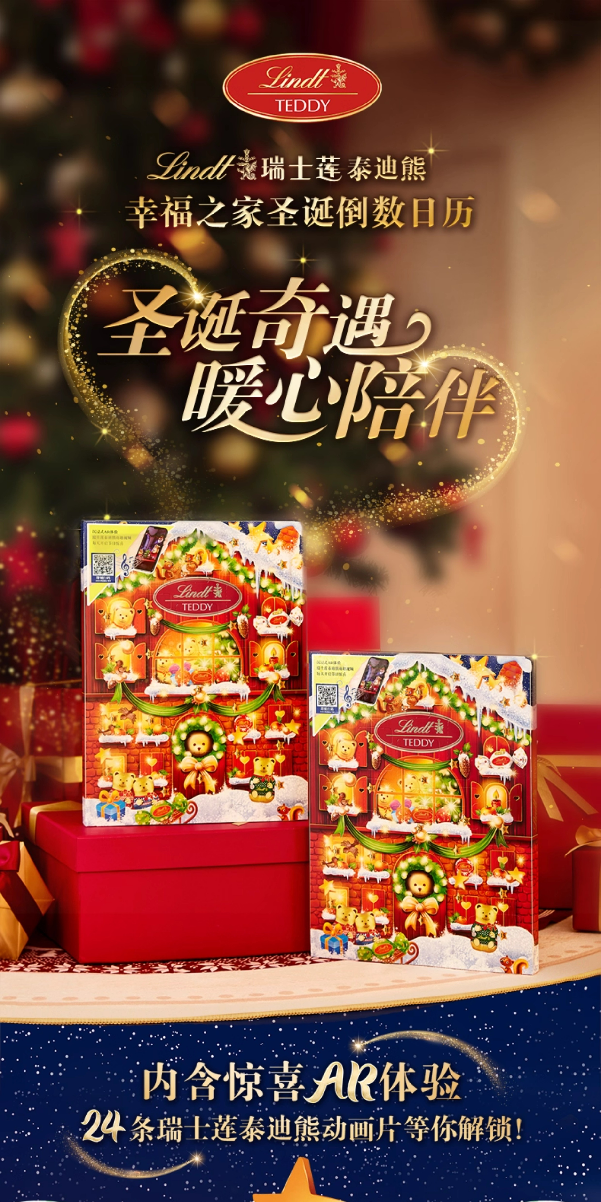 【超模君精选 圣诞惊喜】Lindt/瑞士莲泰迪熊巧克力圣诞倒数日历170g节日送礼【中欧班列精选】