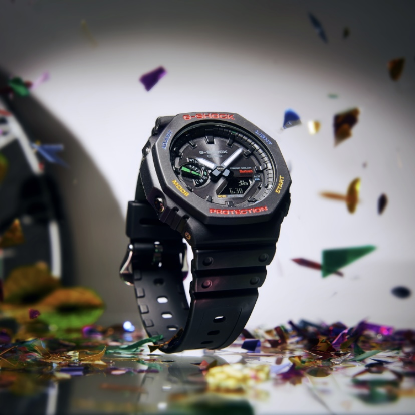 潮流焕新,先锋出型。G-SHOCK 2100系列推出全新款GA-B2100FC-1A。缤纷色彩点缀经典八角表盘设计,酷黑表带增添神秘气场,呈现色彩冲撞的完美融合。
