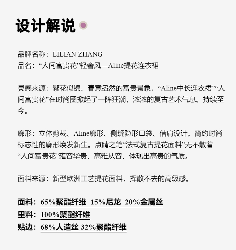 E-定制 ——“人间富贵花”——复古轻奢风——Aline提花连衣裙 2401207