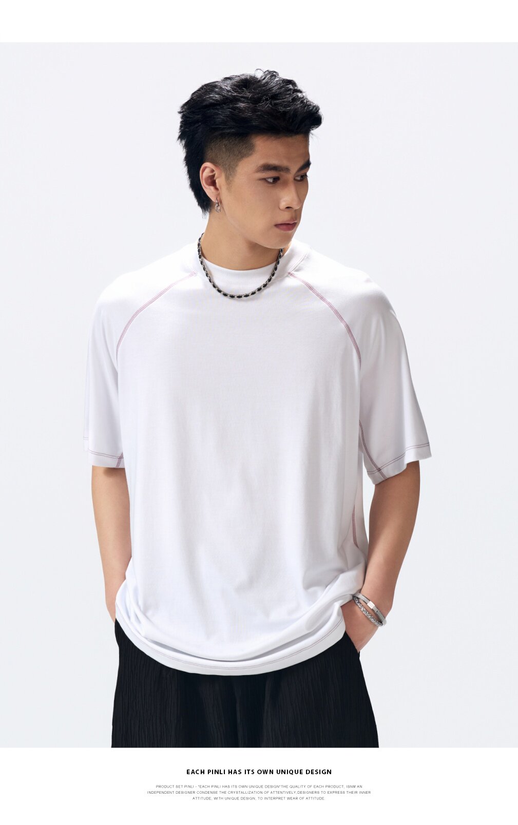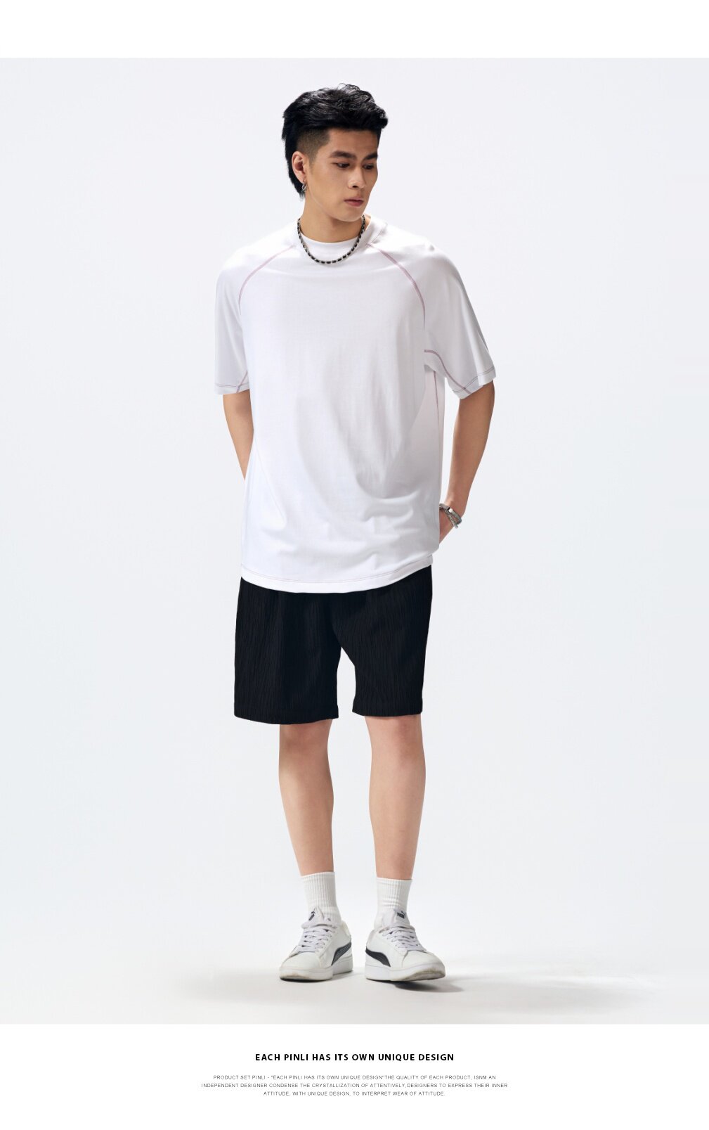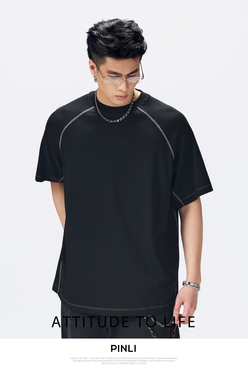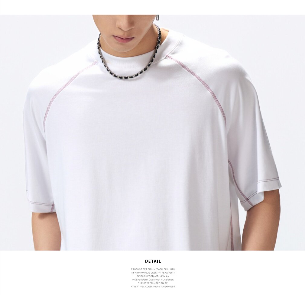 PINLI品立2026夏季新款男线条纯色打底上衣宽松圆领连肩袖短袖T恤GD262111027