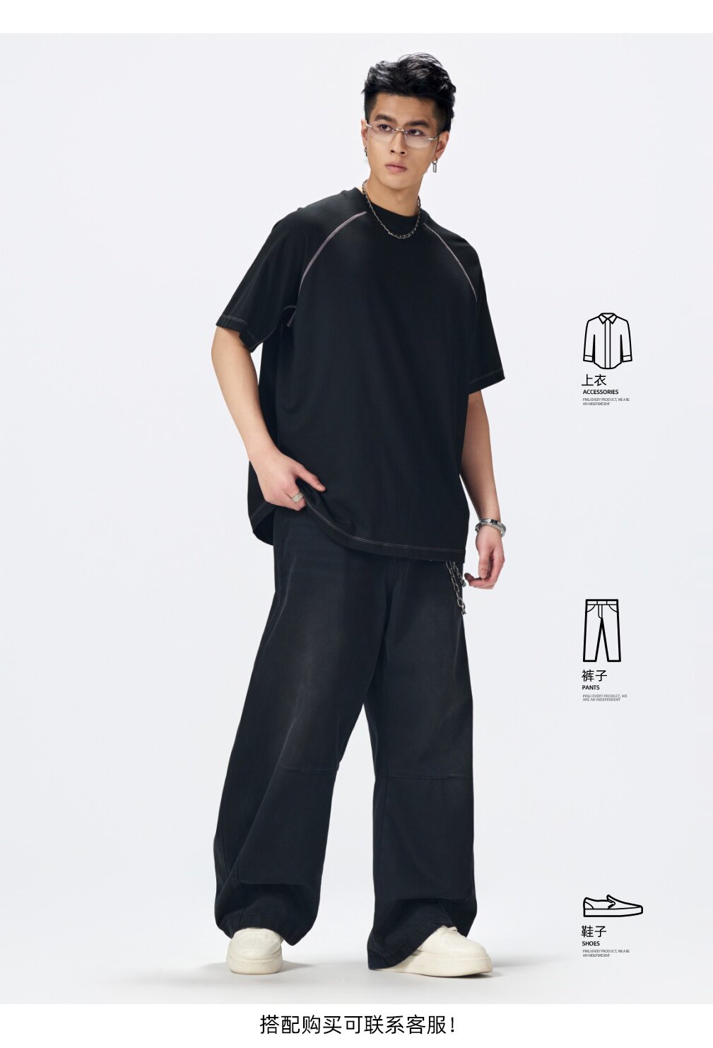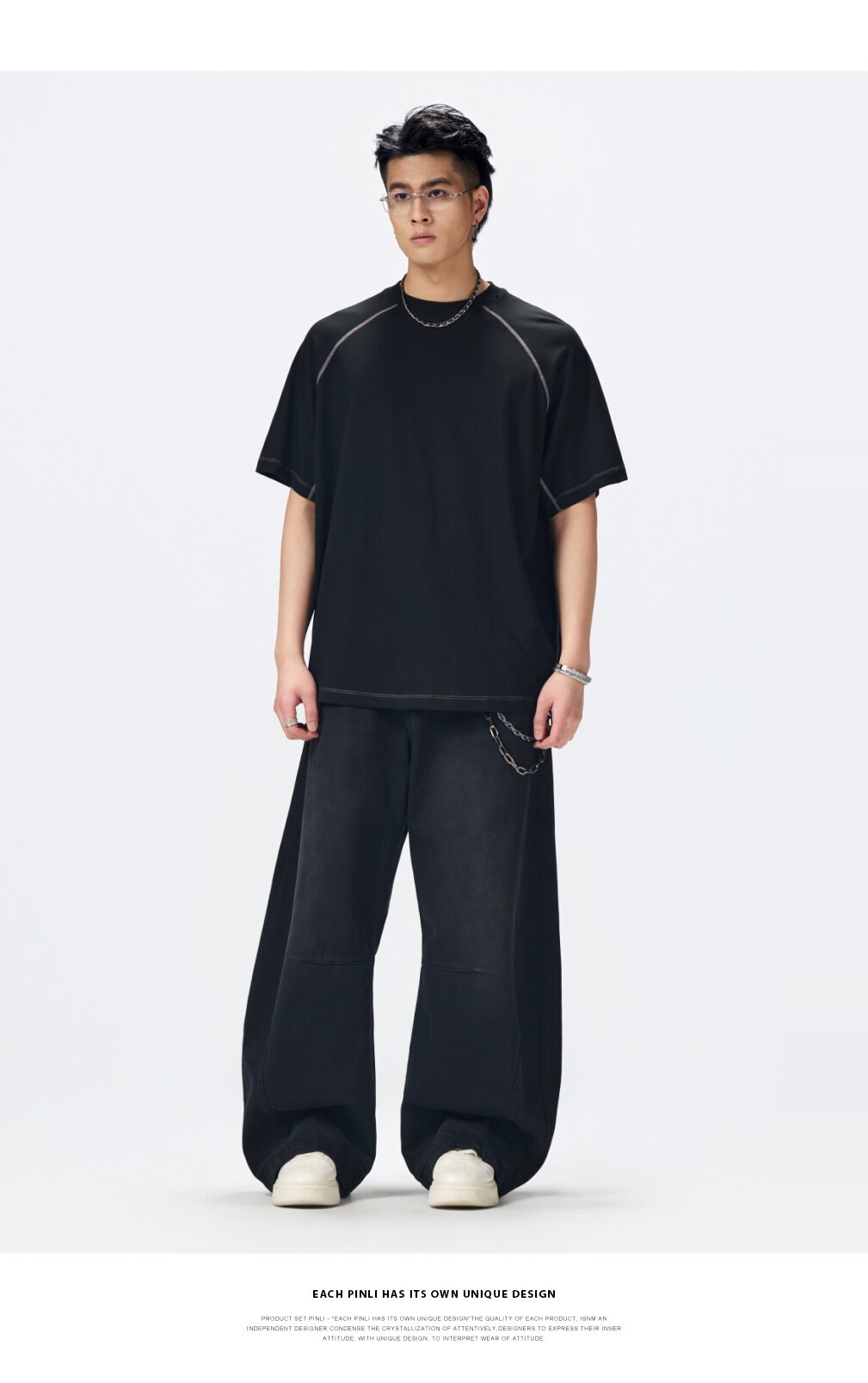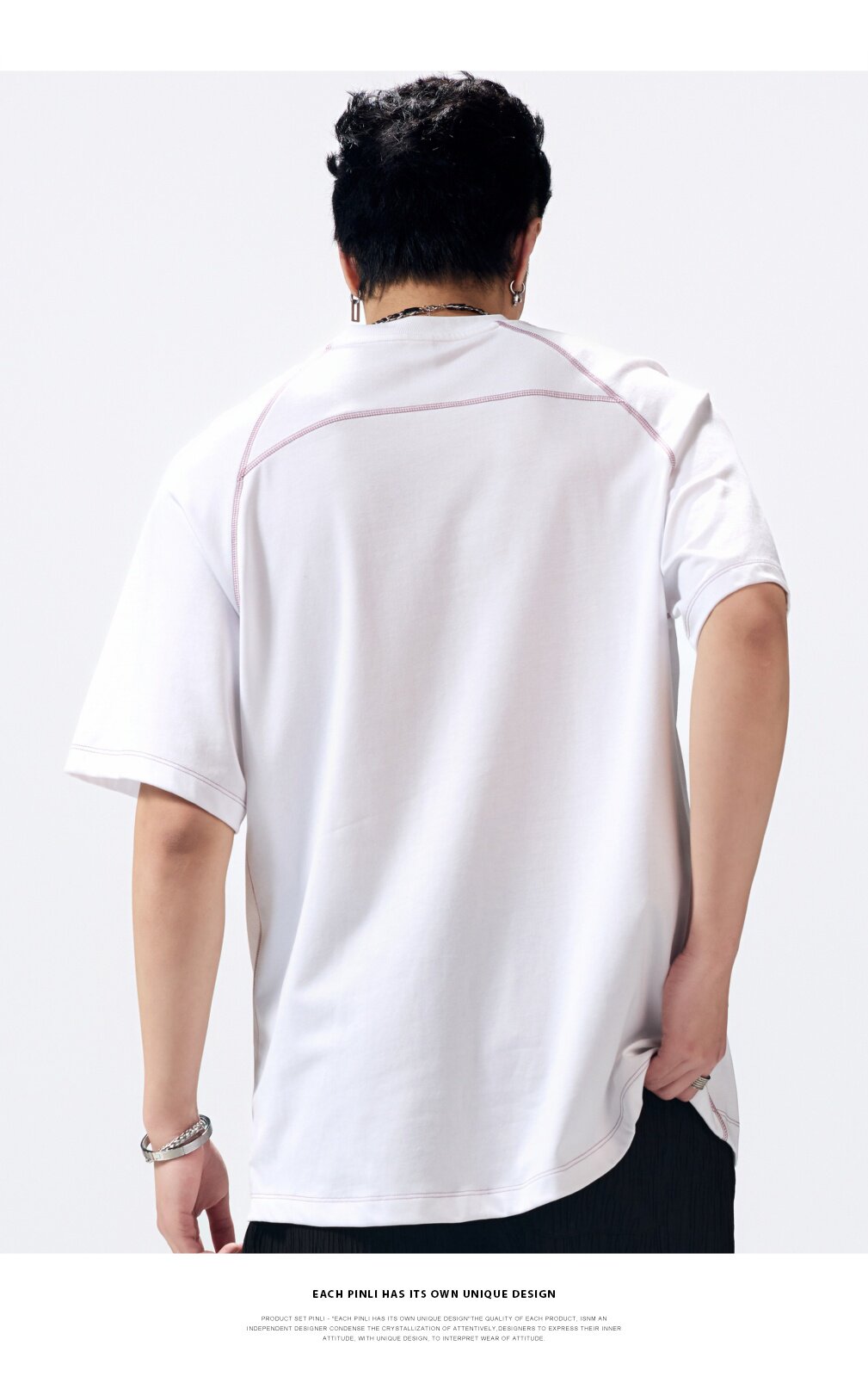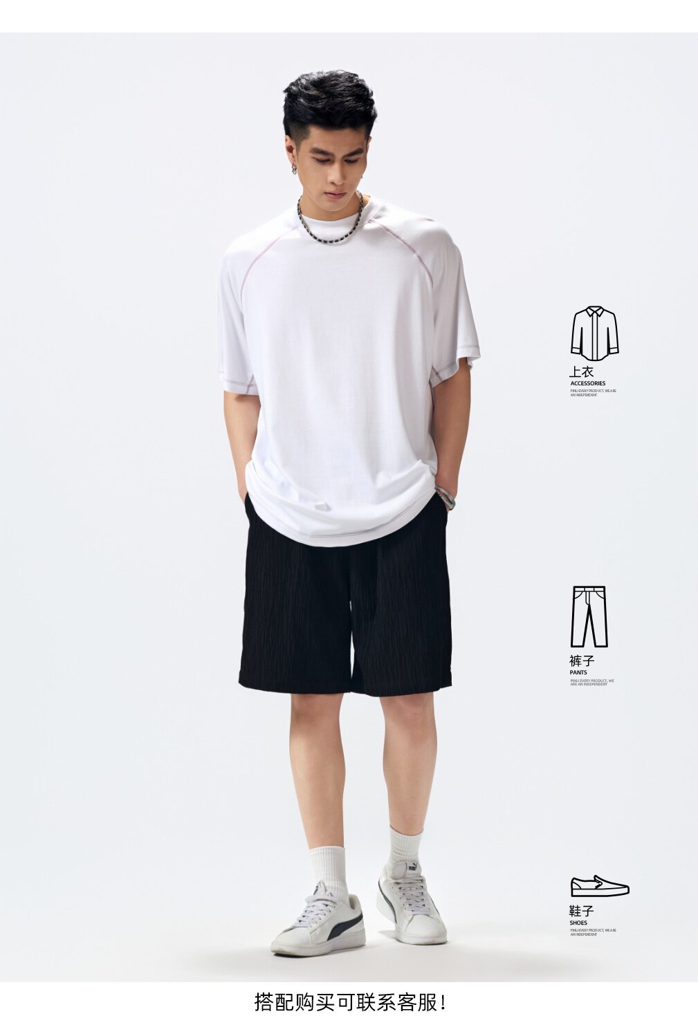PINLI品立2026夏季新款男线条纯色打底上衣宽松圆领连肩袖短袖T恤GD262111027