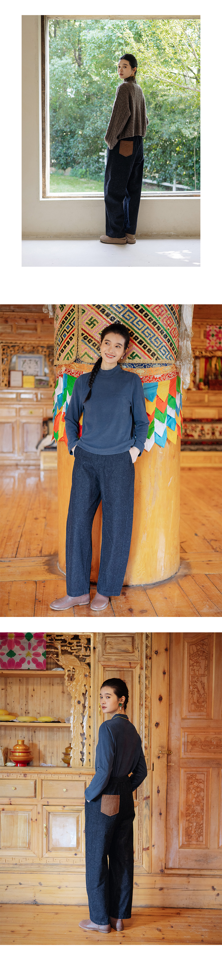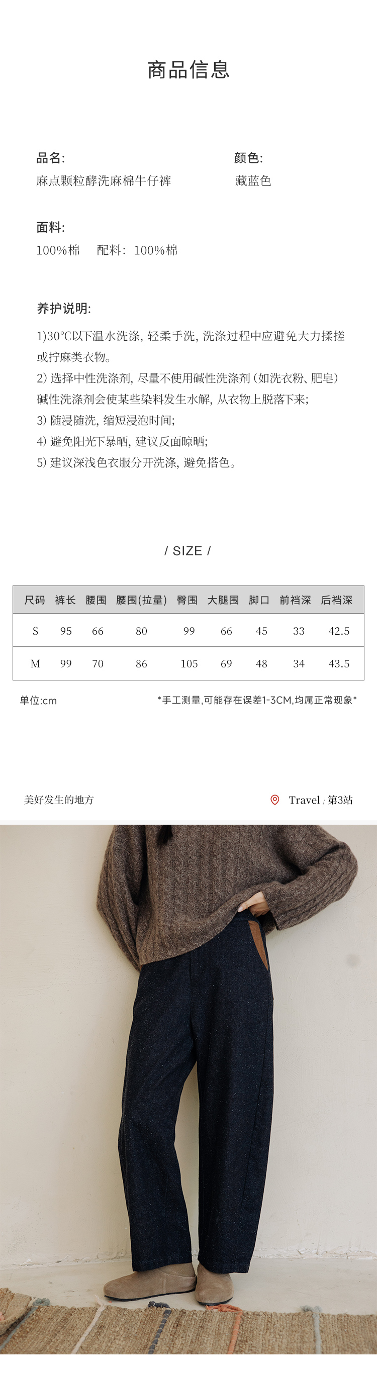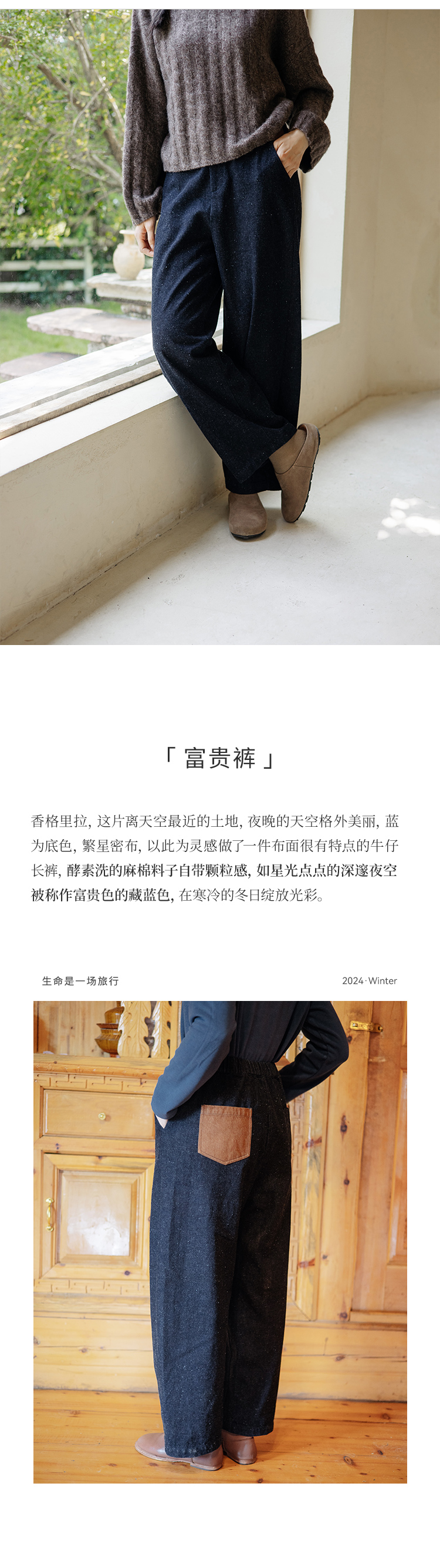 绽放248朵/富贵裤秋冬麻点颗粒酵洗麻棉显瘦休闲保暖百搭牛仔长裤