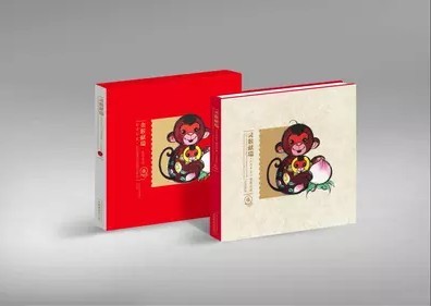册子外观点评:封套为中国红色,体现新春喜庆吉祥之意,上面画有一大一小两只猴子,活泼可爱的灵气跃然纸上,并配以烫金字。