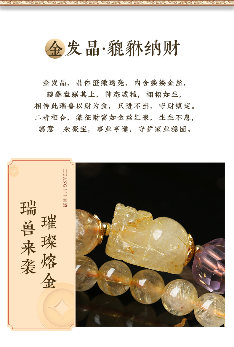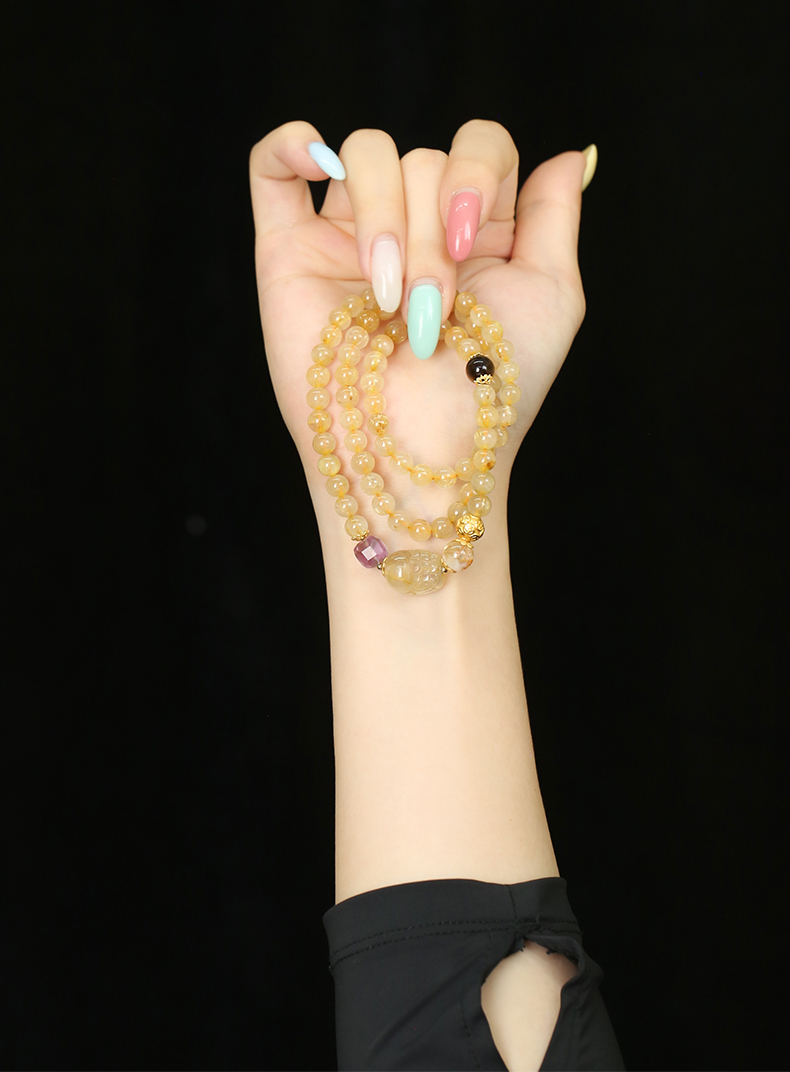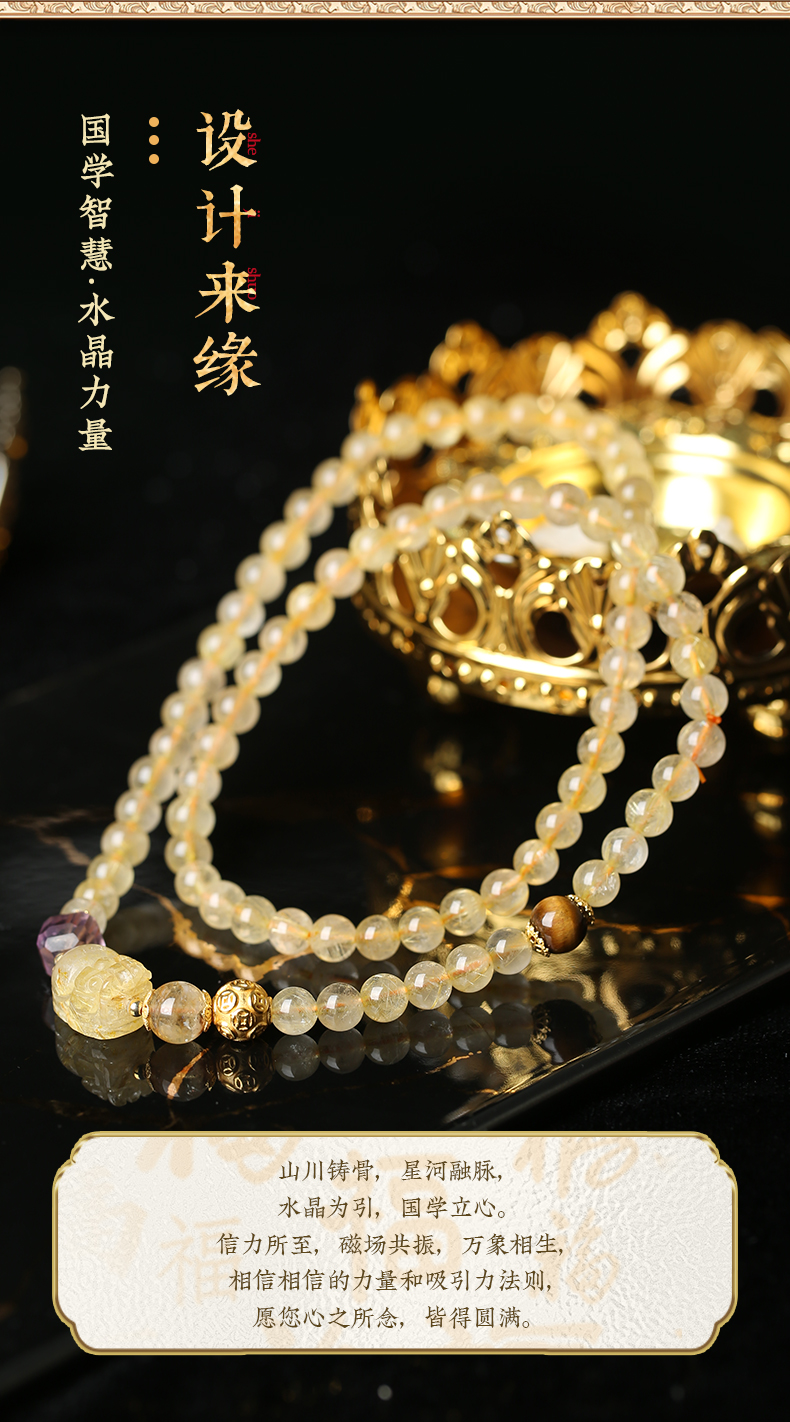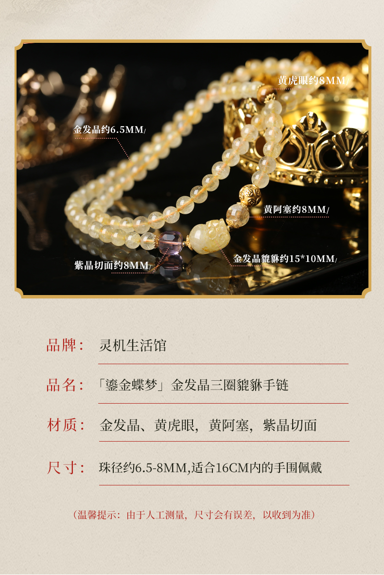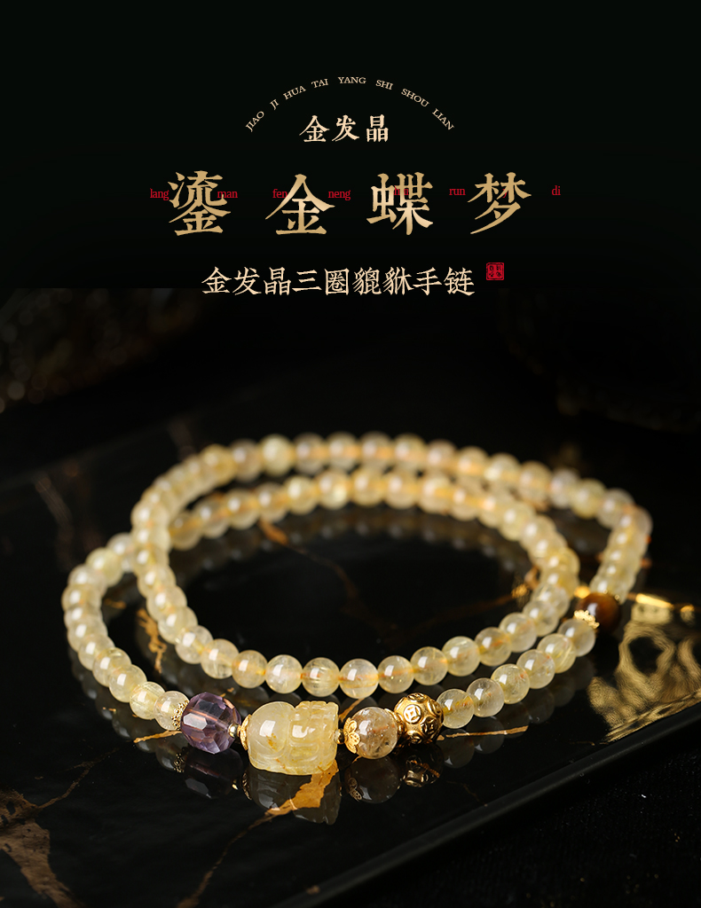 【新品】灵机生活馆「鎏金蝶梦」金发晶三圈貔貅手链轻奢同款水晶