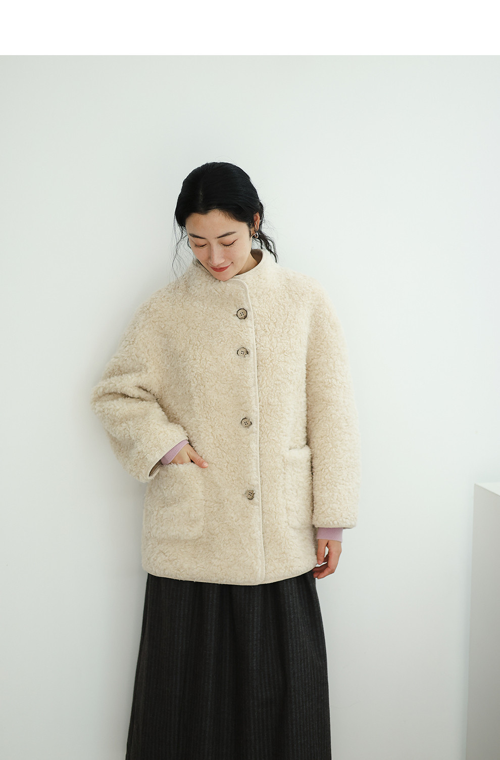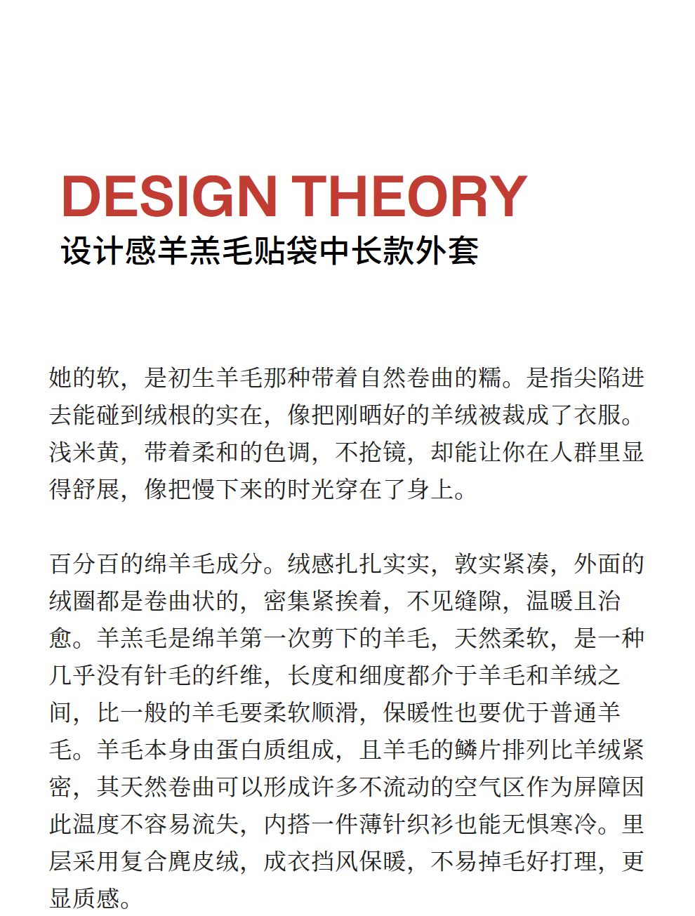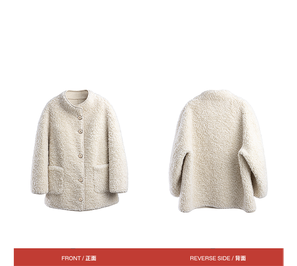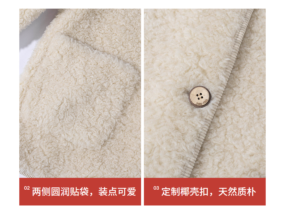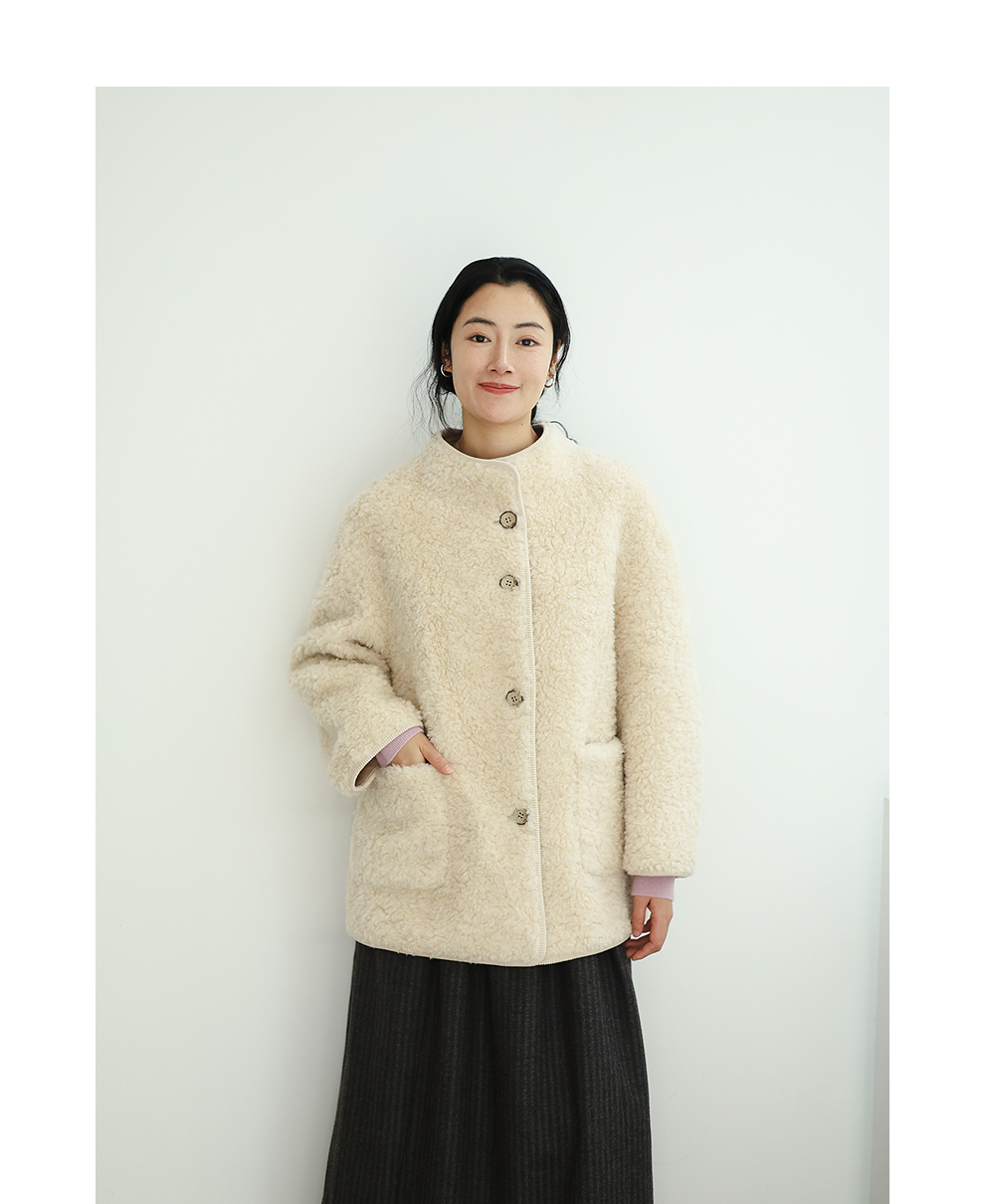 绽放881朵/纯羊毛绒感设计羊羔毛贴袋中长款外套女毛呢大衣冬新款