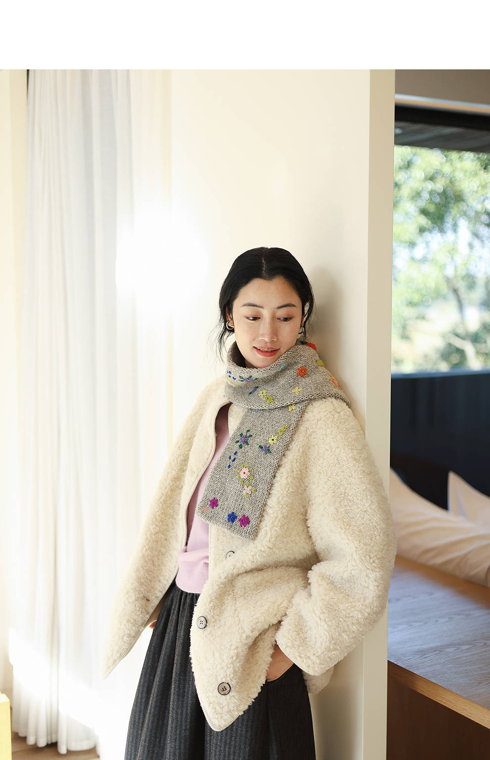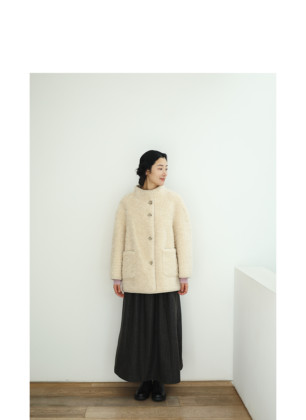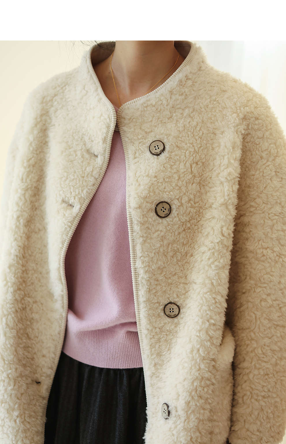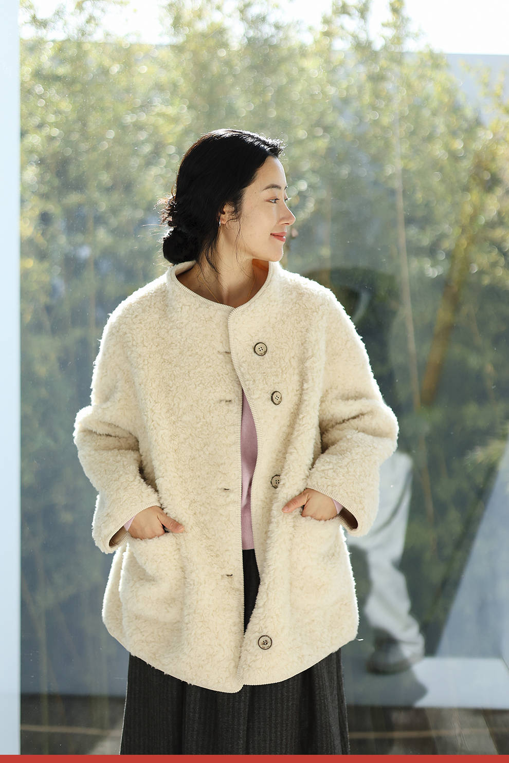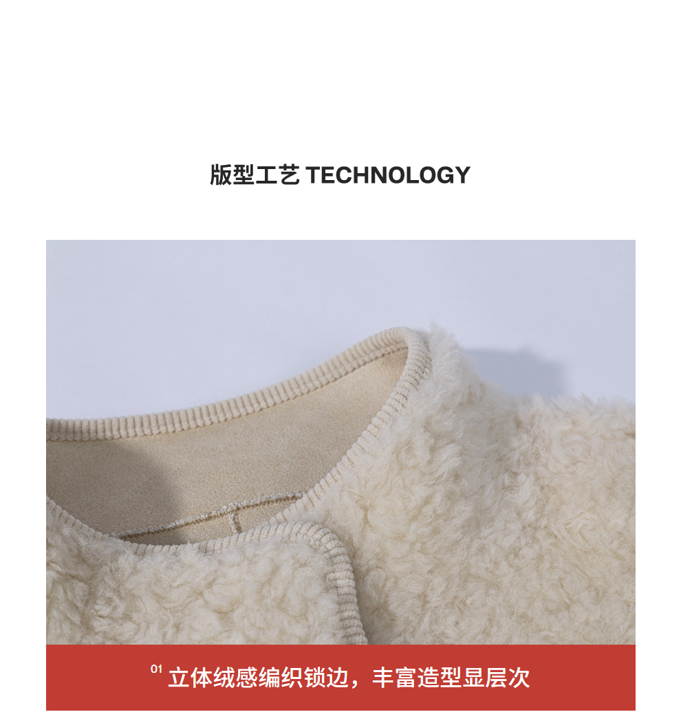 绽放881朵/纯羊毛绒感设计羊羔毛贴袋中长款外套女毛呢大衣冬新款