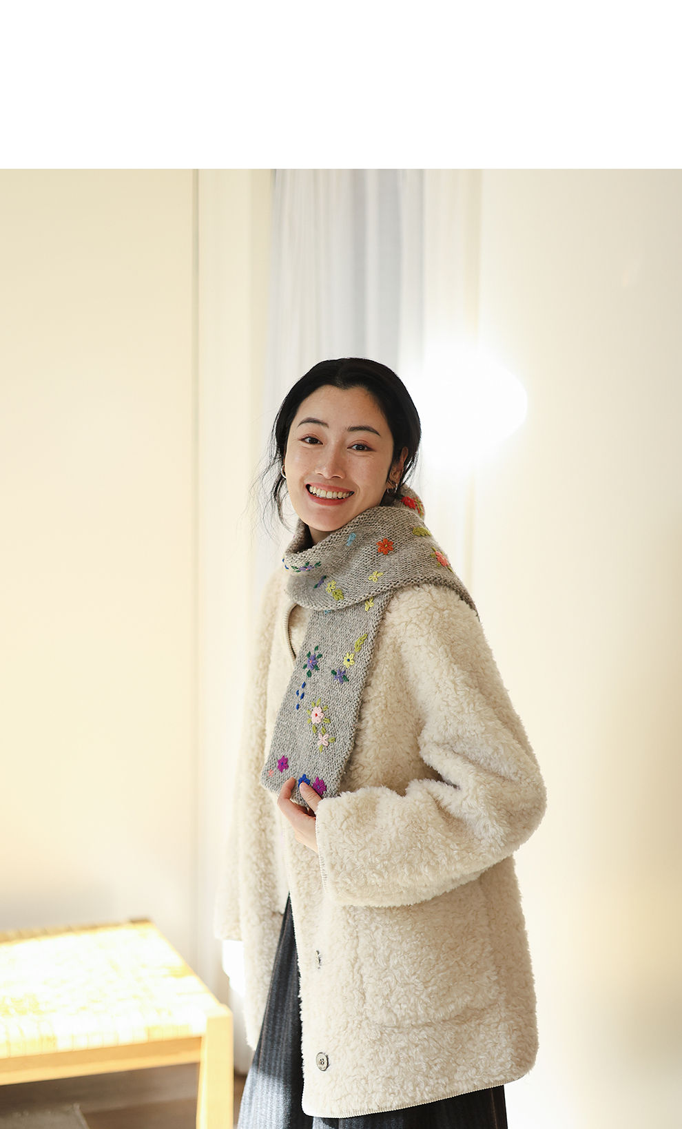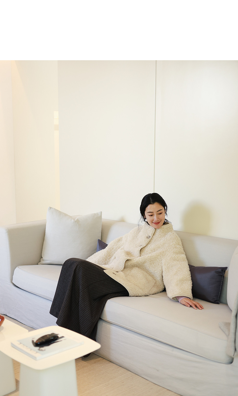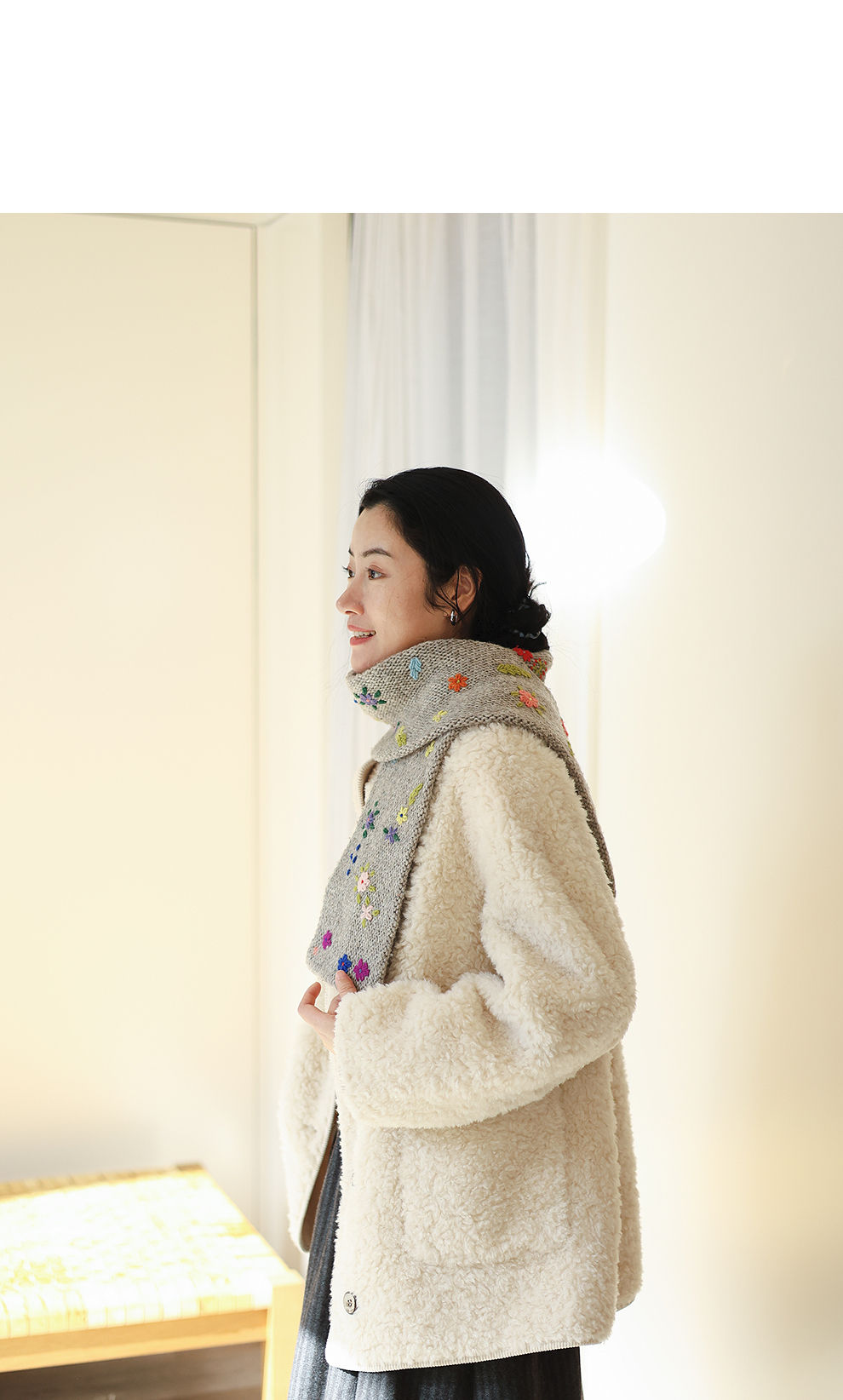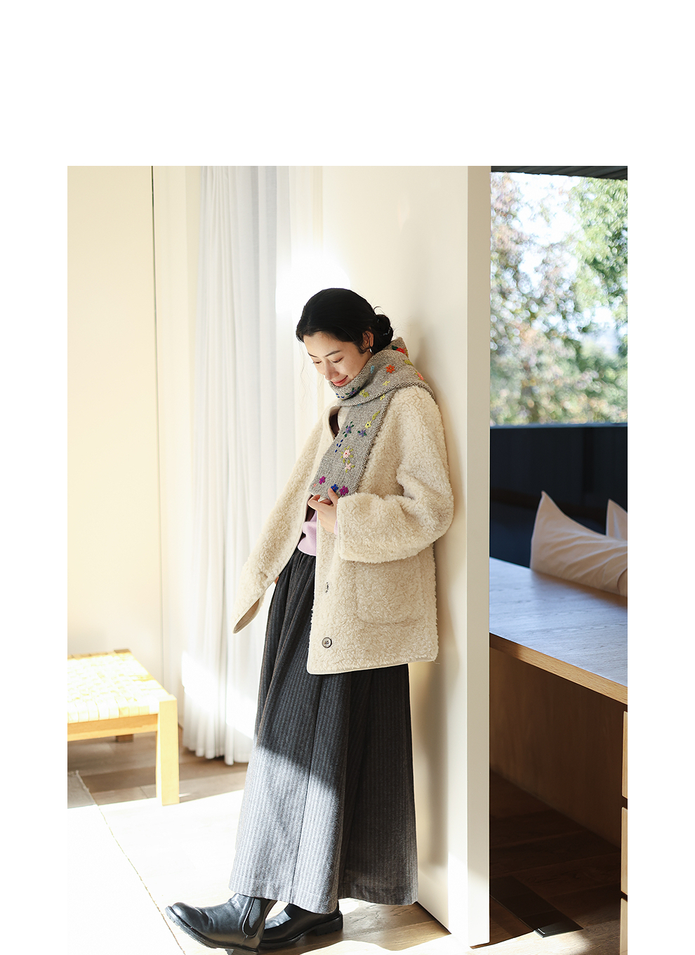 绽放881朵/纯羊毛绒感设计羊羔毛贴袋中长款外套女毛呢大衣冬新款