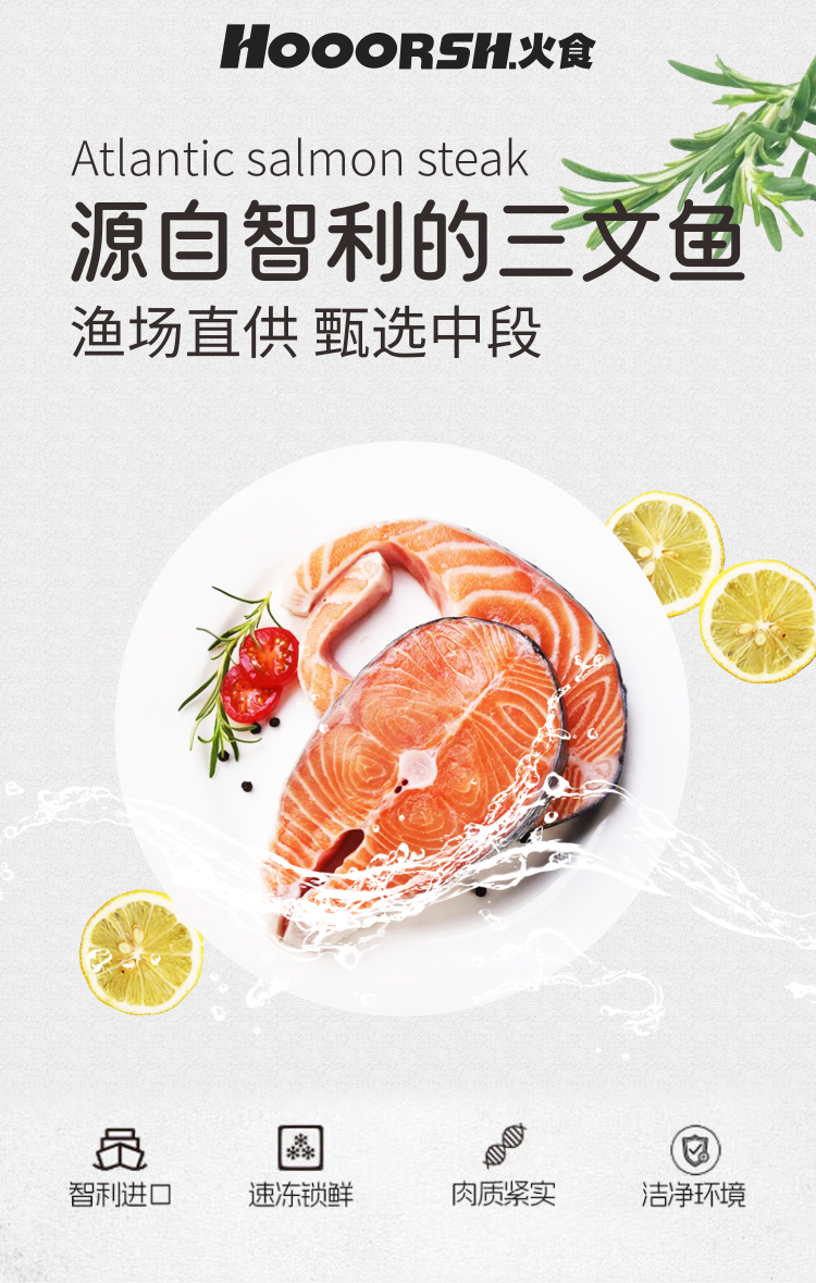 智利厚切三文鱼排 1kg/袋 甄选三文鱼中段 洁净海域捕捞 急速冷冻锁鲜