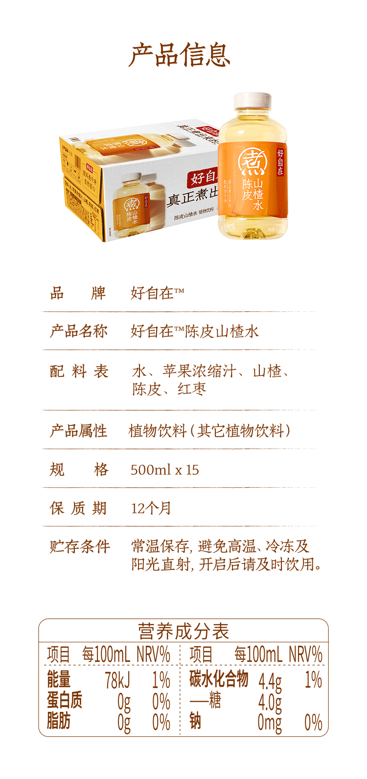【直供】元气森林好自在陈皮山楂水植物饮料500mL*15瓶装整箱
