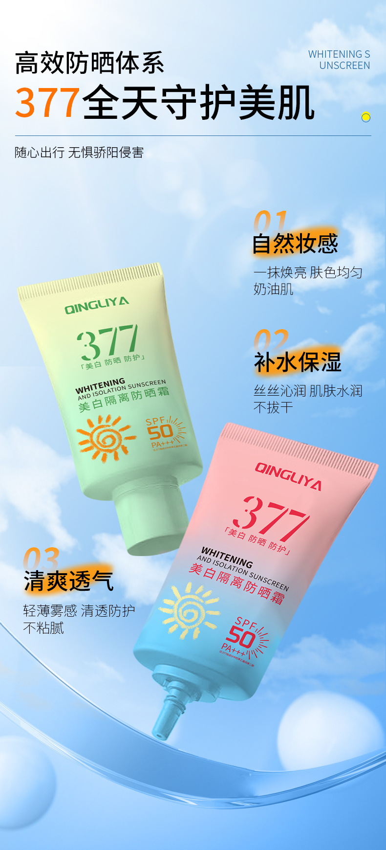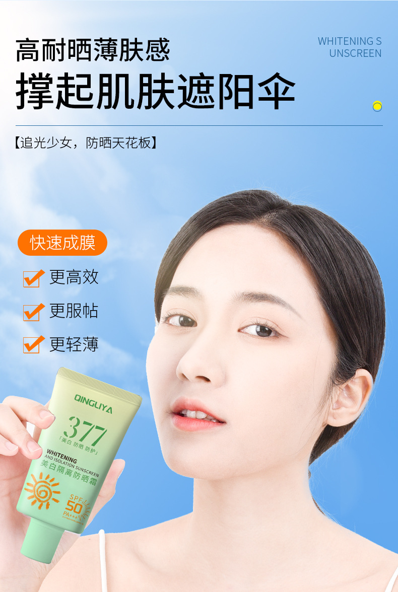 【秒杀❗️9.9到手🔥377美白防晒霜】无“惧”烈阳「肌肤遮阳伞」一抹焕亮肤色均匀奶油肌,高倍隔离防紫外线清爽不油腻防水防晒乳L