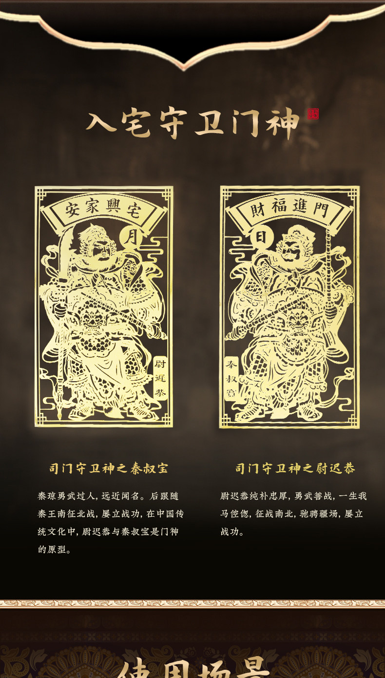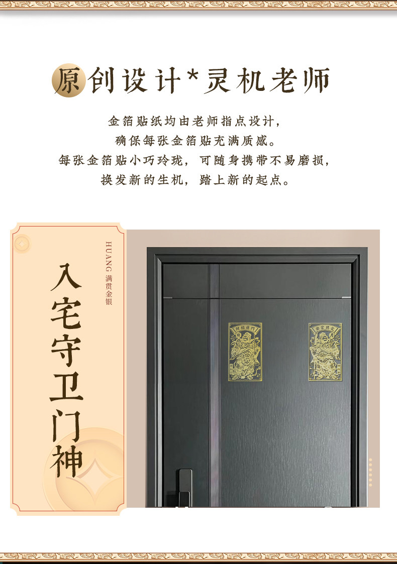 缘满【祈愿吉品】门神贴大门2026金属贴纸福字入户门对邻居门挂画