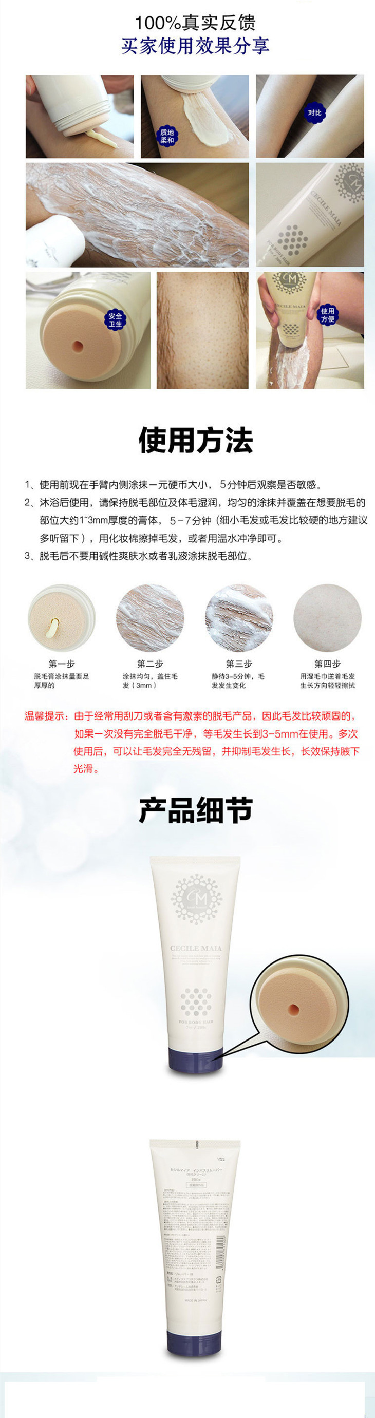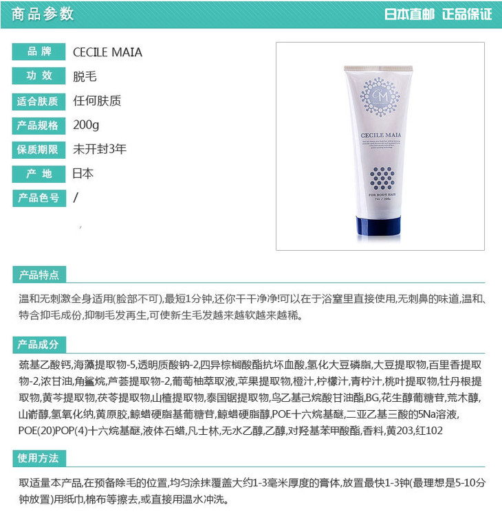 【国产版,领券到手价58元】日本 CECILE MAIA 脱毛膏 男女可用 温和除毛 200g 包装随机 到27年1-3月