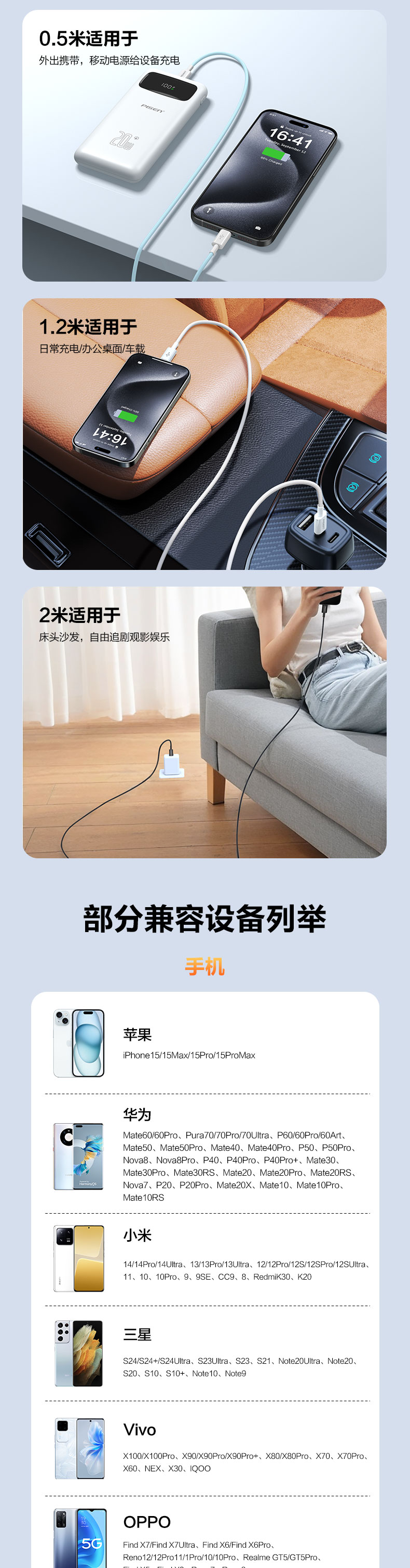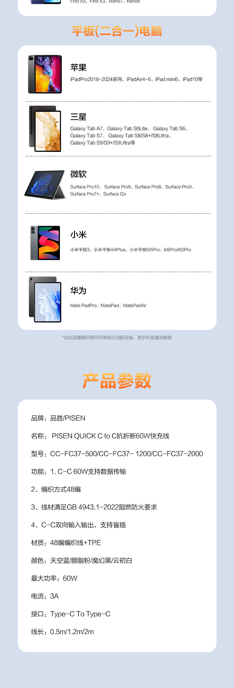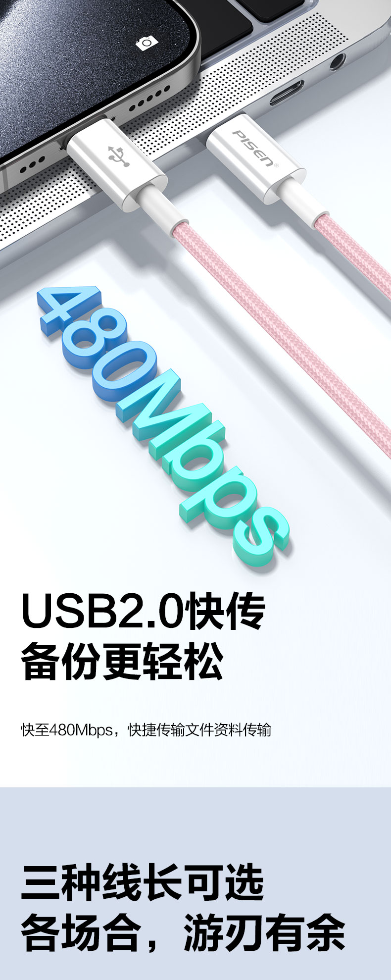 品胜 C to C抗折断60W快充线1.2米/2米 Type-C数据线双头PD60W快充适用iPhone15