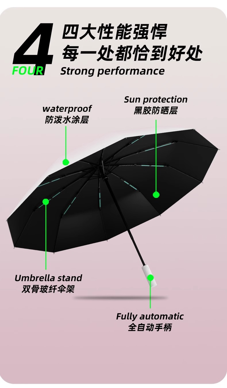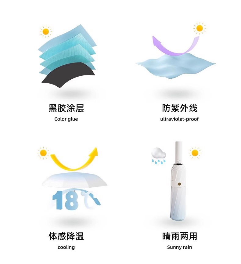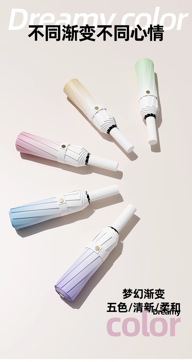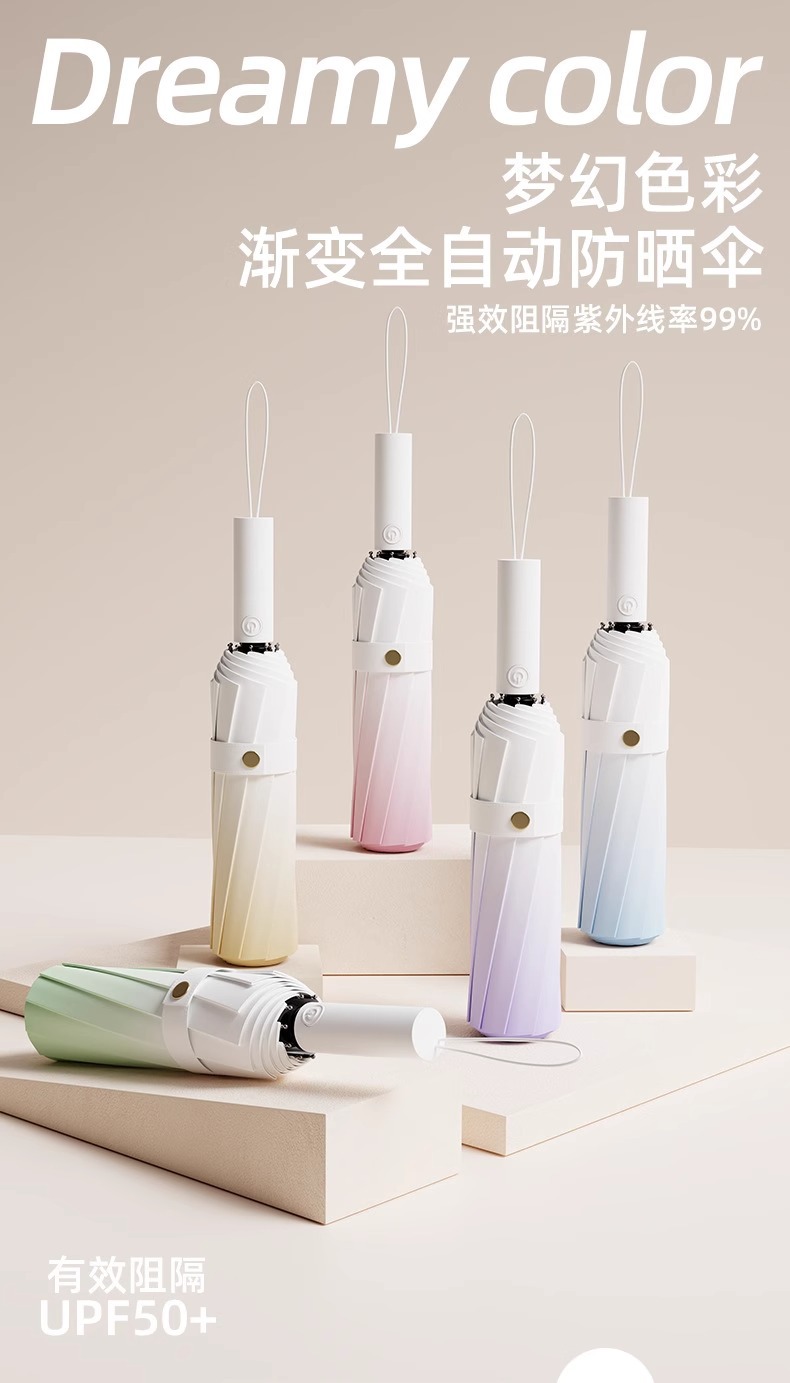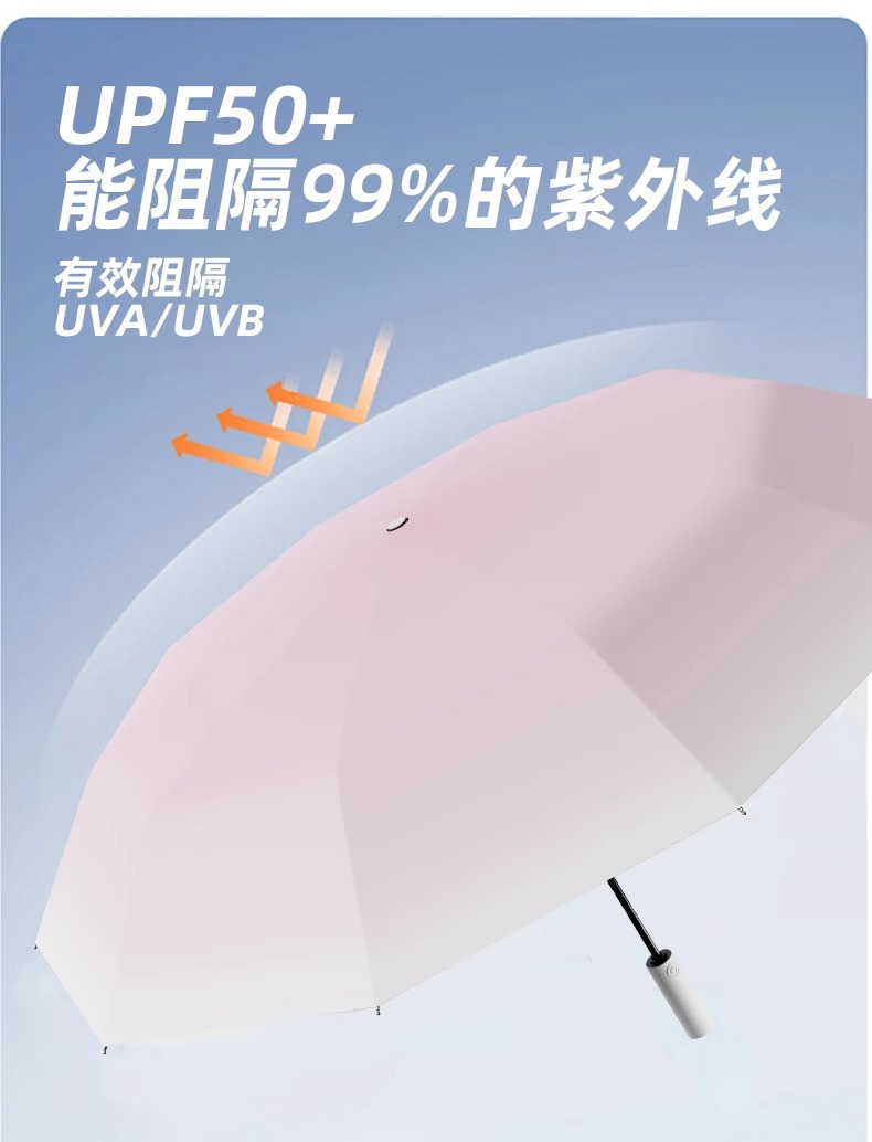 FXQ 【加倍防晒❗️梦幻渐变全自动雨伞】防水黑科技伞布,20骨双龙骨女晴雨两用折叠抗风黑胶遮阳防紫外线太阳伞,伞下堪称自带风扇的凉感小空调!